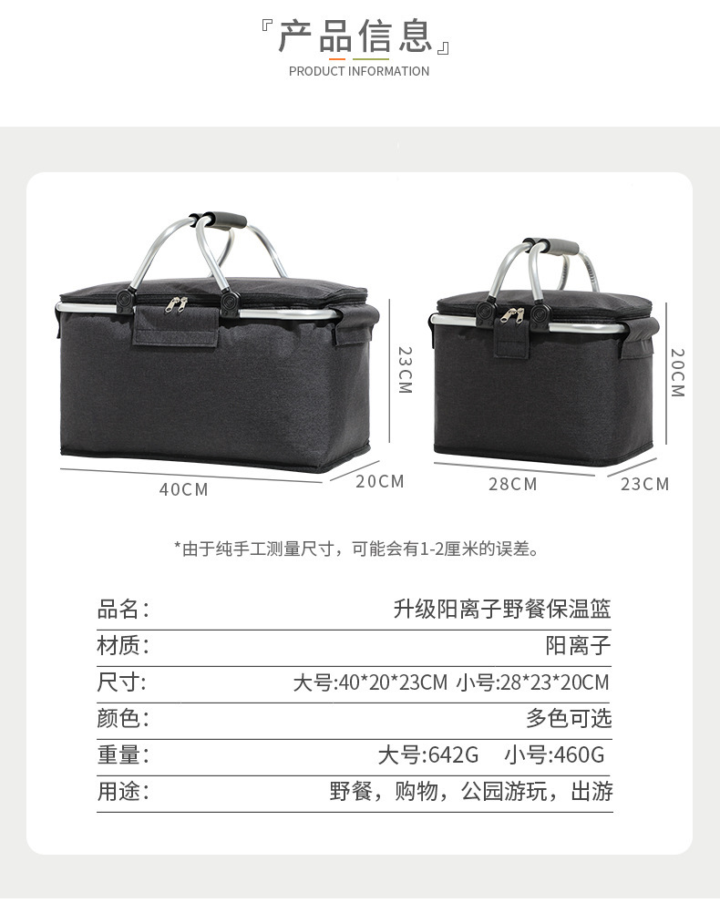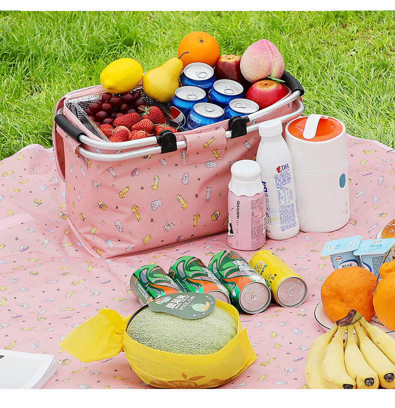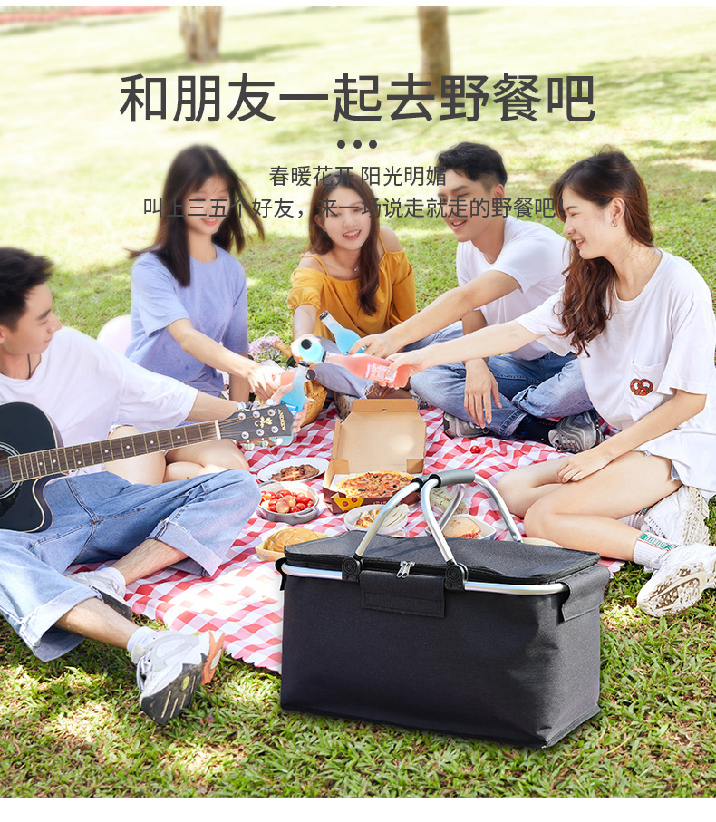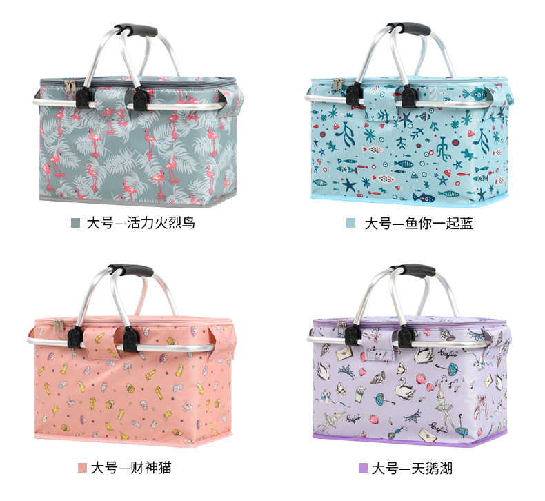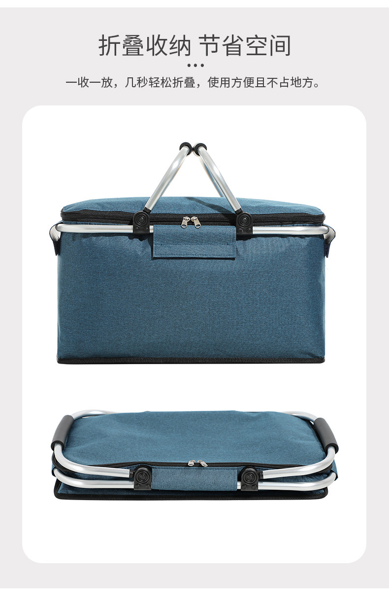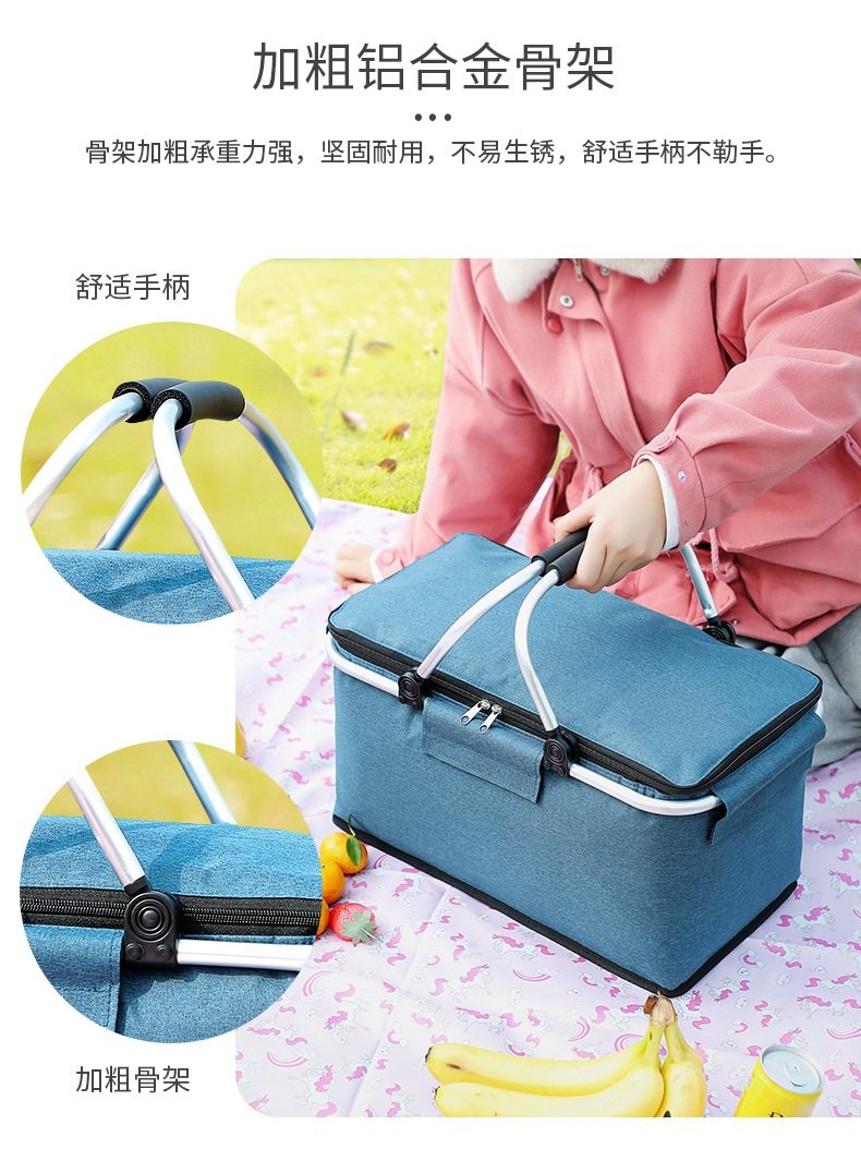 국경을 넘는 아마존 피크닉 바구니 야외 피크닉 과일 바구니 대용량 알루미늄 호일 휴대용 알루미늄 프레임 보온 바구니 피크닉 가방스토어 가기