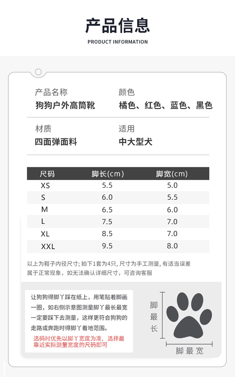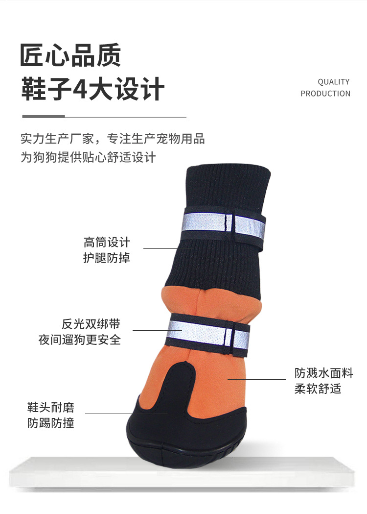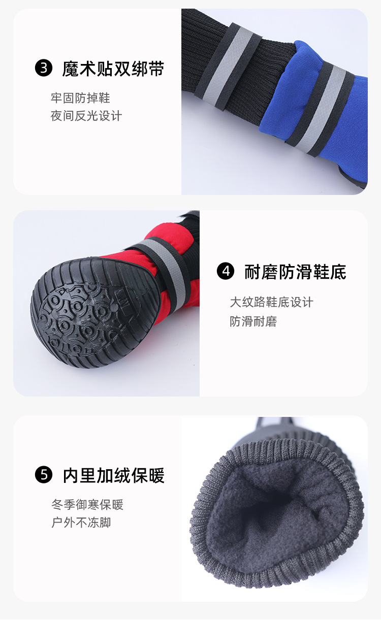 강아지 신발, 겨울용 높은 부츠, 미끄럼 방지, 내마모성 고무 밑창, 중대형견 공용, 애완견용스토어 가기