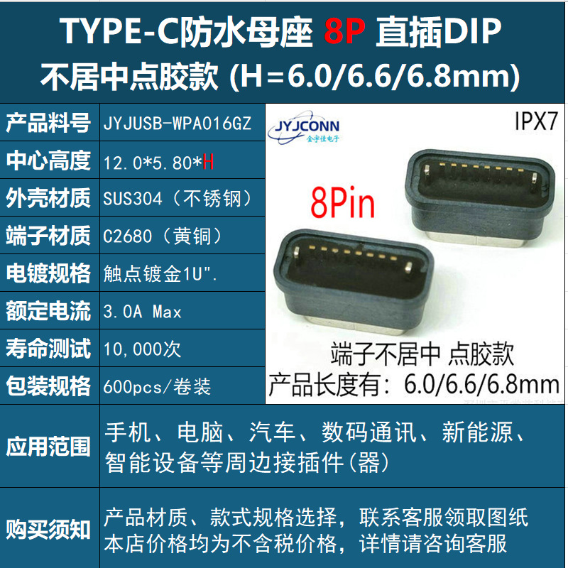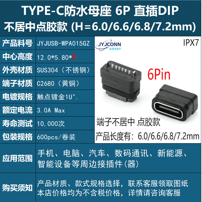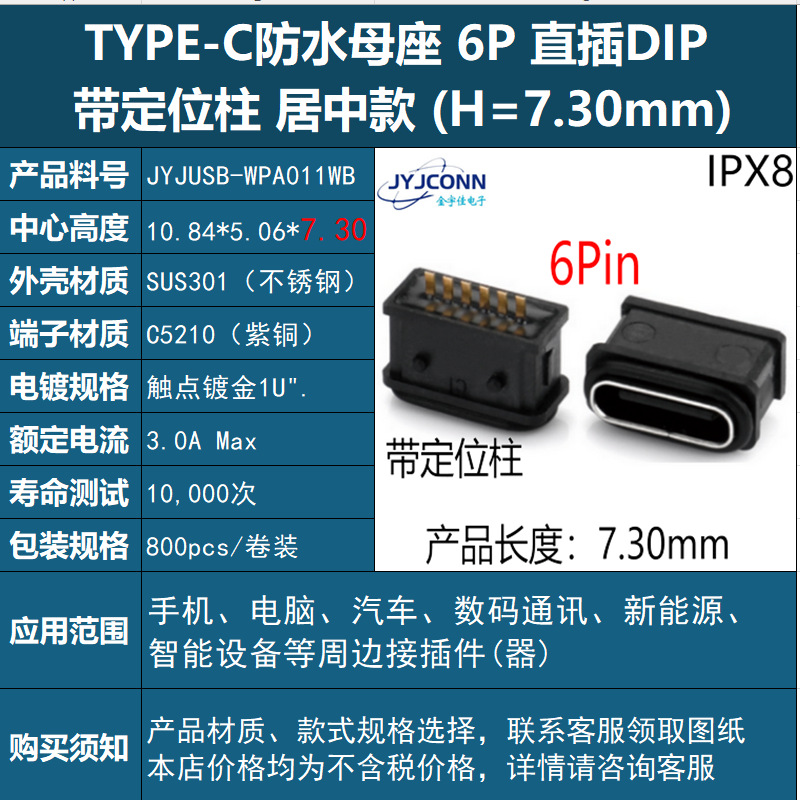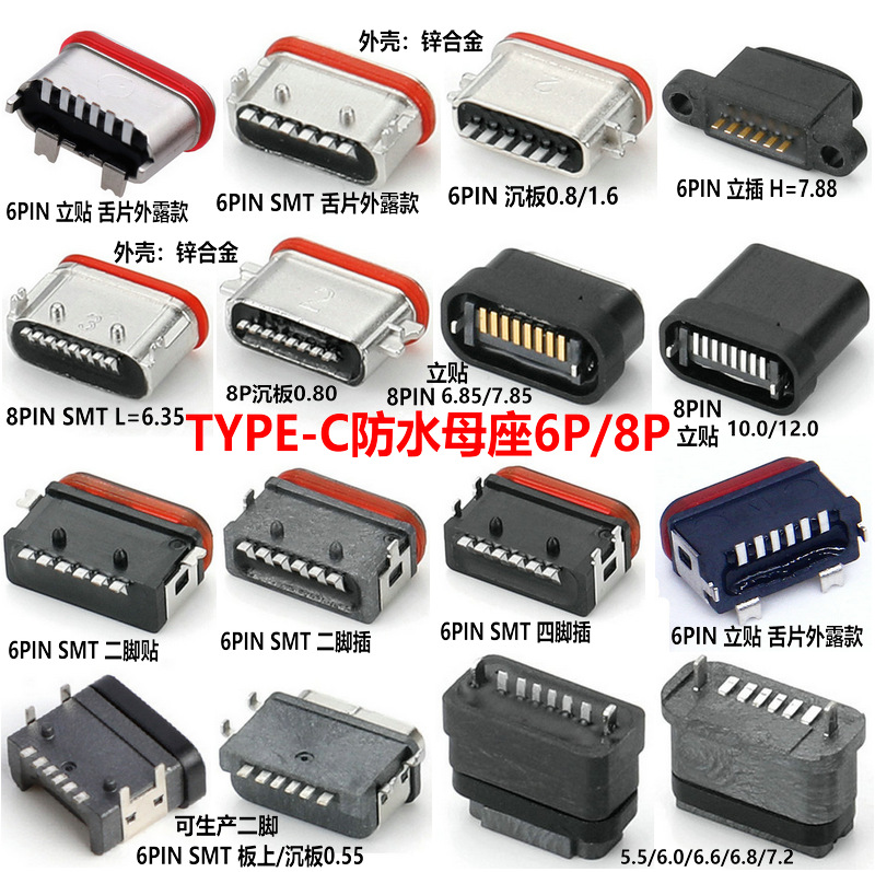 USB 수직 방수 typec 암 소켓 6p 커넥터 type-c 암 수직 스티커 8p 완벽한 사양을 공장에서 직접 공급