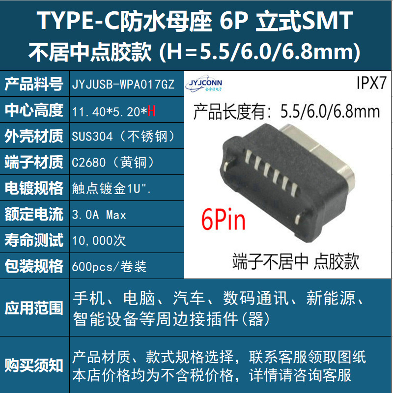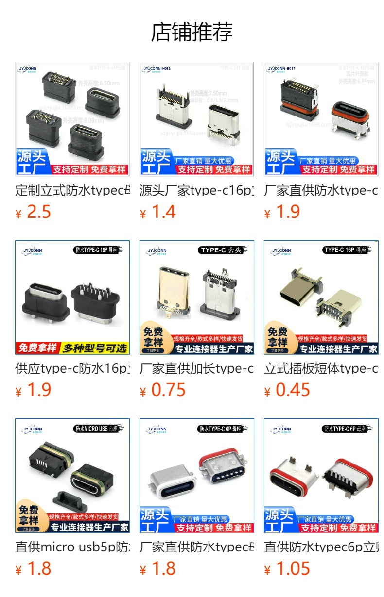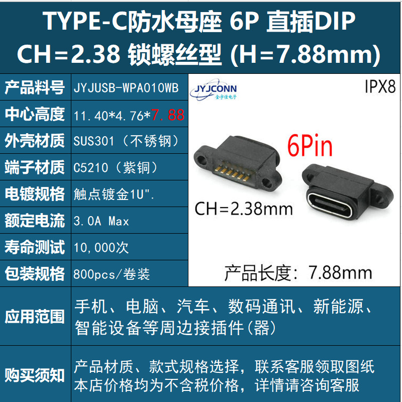 USB 수직 방수 typec 암 소켓 6p 커넥터 type-c 암 수직 스티커 8p 완벽한 사양을 공장에서 직접 공급스토어 가기
