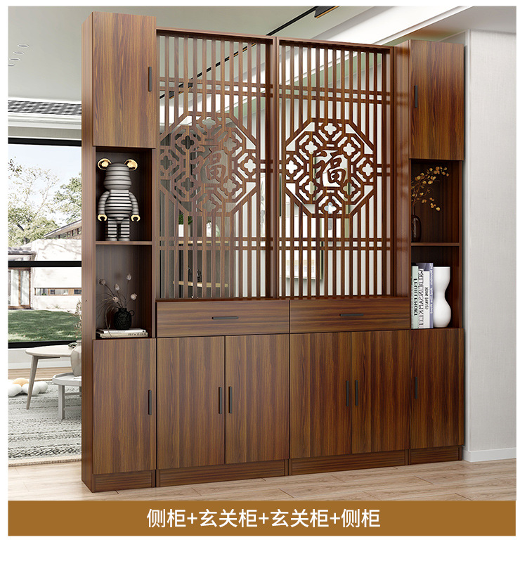 새로운 중국식 현관 캐비닛, 스크린 파티션, 거실 입구, 도어 차단, 축복 문자, 와인 캐비닛 및 신발 캐비닛이 통합되어 있습니다.