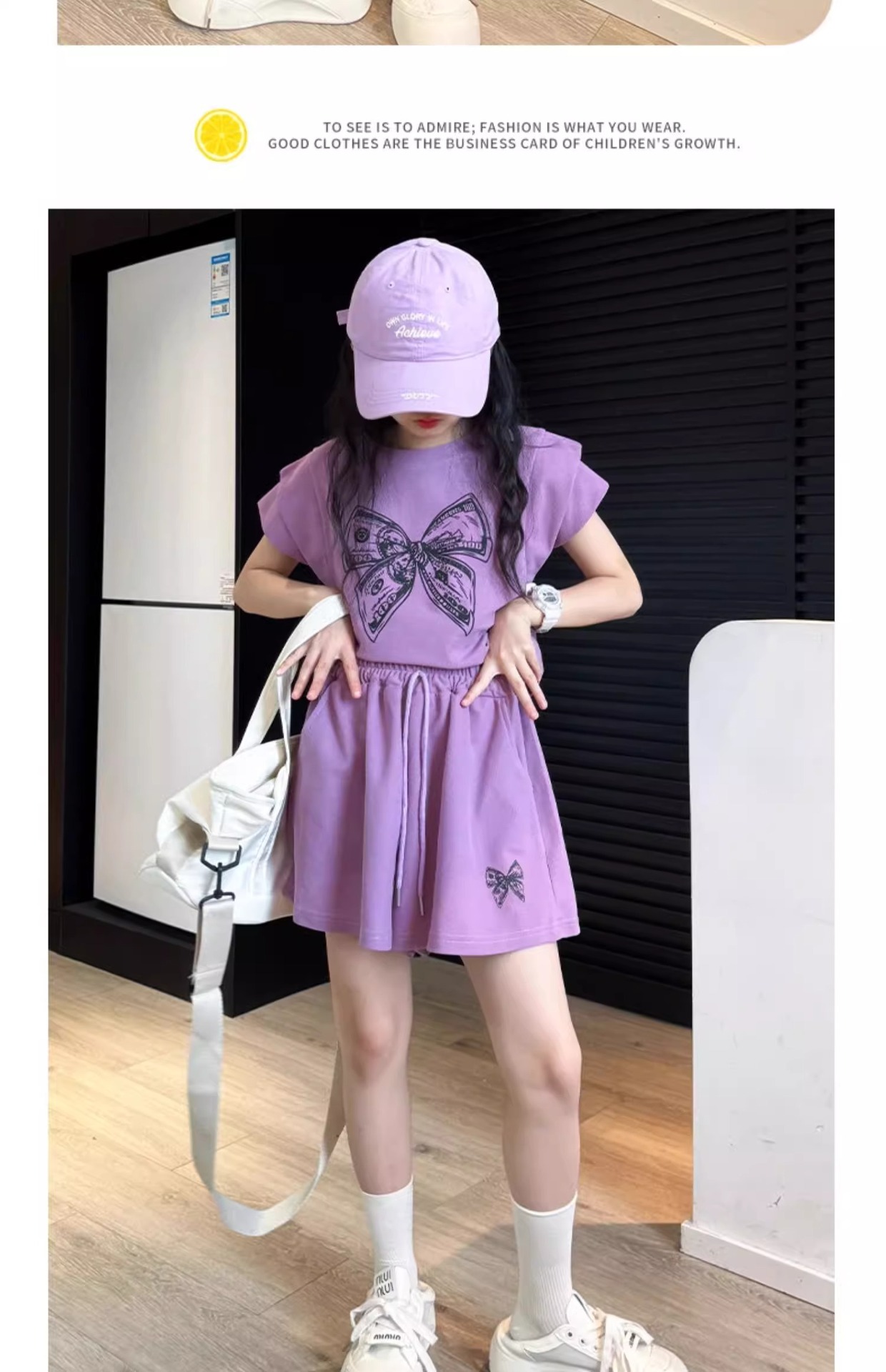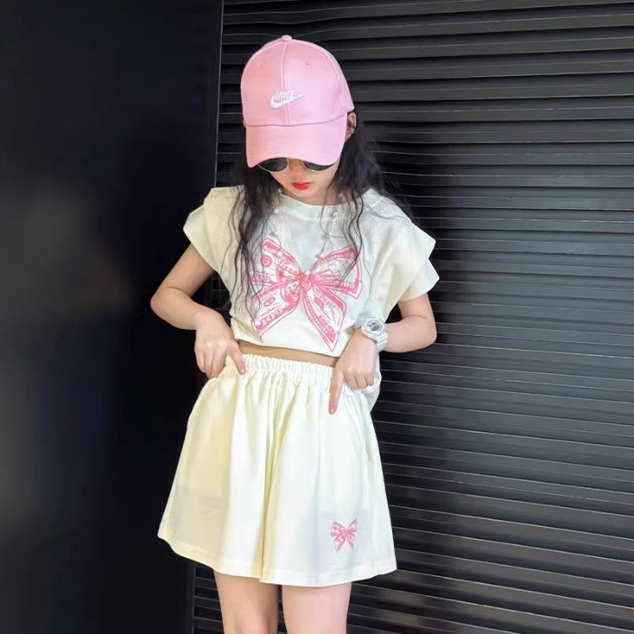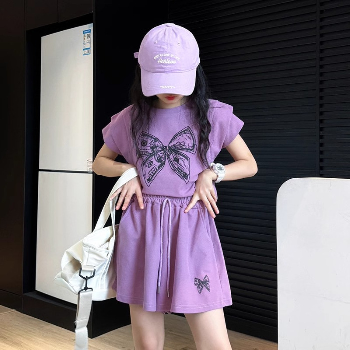 여자 스포츠 세트 2025 년 여름 새로운 여자 큰 어린이 서양식 유행 반바지 어린이 여름 착용 한국 스타일 착용