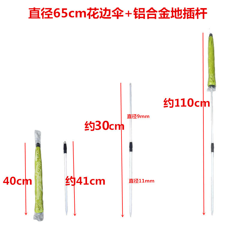 • 알루미늄 합금 텔레스코픽 바닥 플러그 + 65cm 레이스 과일 녹색 우산