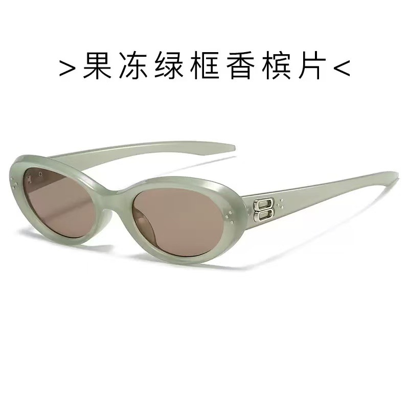 새로운 트렌디 한 레트로 타원형 프레임 하이 센스 안티 UV 슬림 선글라스 패션 올 매치 인터넷 연예인 동일 스타일 배치