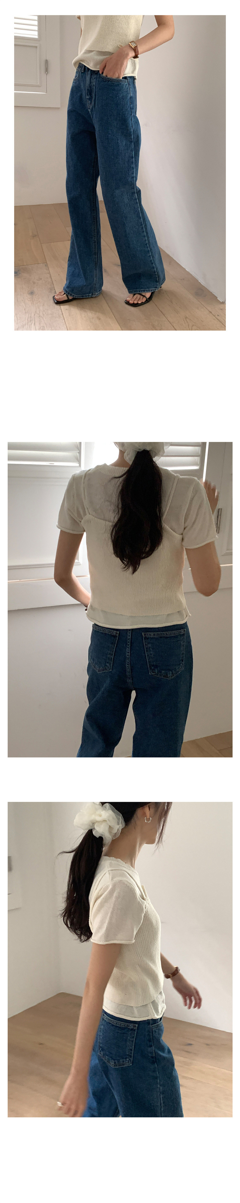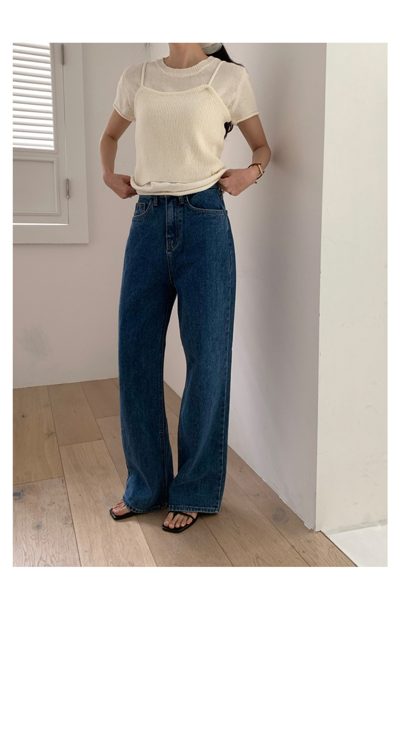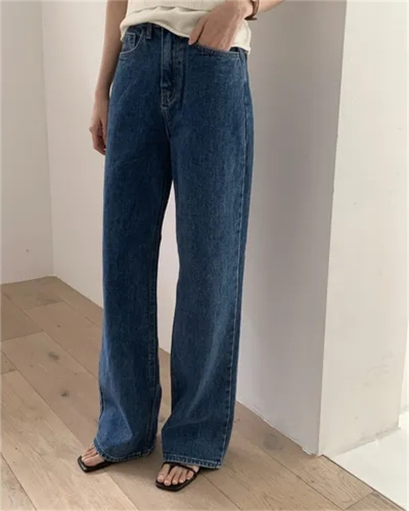 한국 세련된 봄, 가을 복고풍 워시 진한 파란색 느슨한 하이 웨이스트 슬림 와이드 레그 바지 여성용 스트레이트 청바지스토어 가기