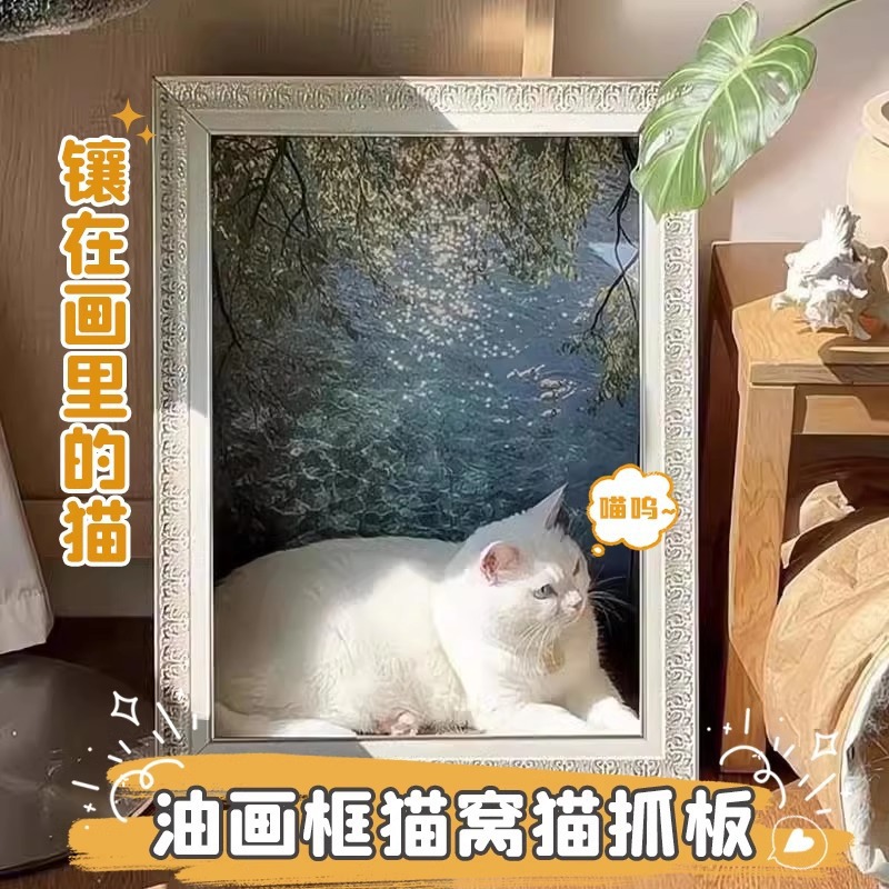 인터넷 레드 모나리자 유화 고양이 스크래치 보드 재생 한 조각 고양이 둥지 사진 프레임 골판지 종이 스크래치 내마모성 고양이 장난감스토어 가기