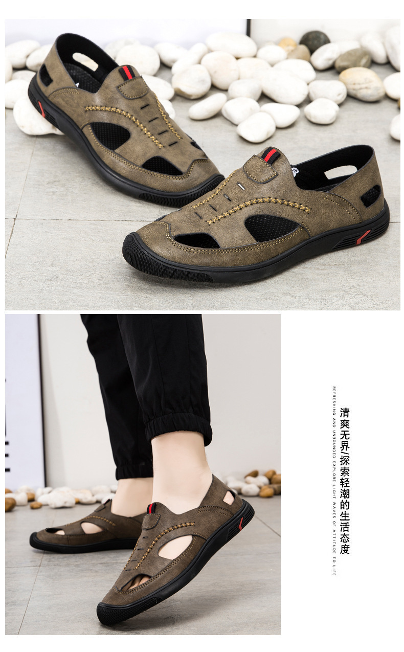 남성 샌들 여름 새로운 속이 빈 통기성 해변 신발 대외 무역 패션 편안한 부드러운 바닥 캐주얼 샌들스토어 가기