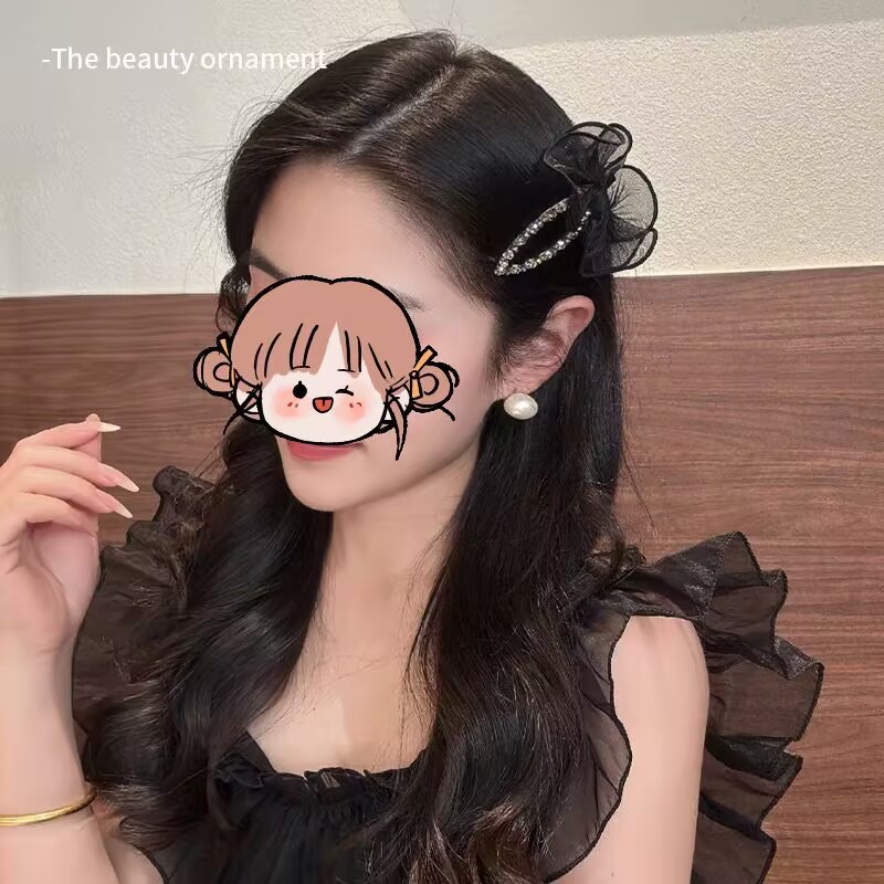 气质感羽毛黑色蝴蝶结抓夹女泡泡云朵发夹后脑勺大号鲨鱼夹