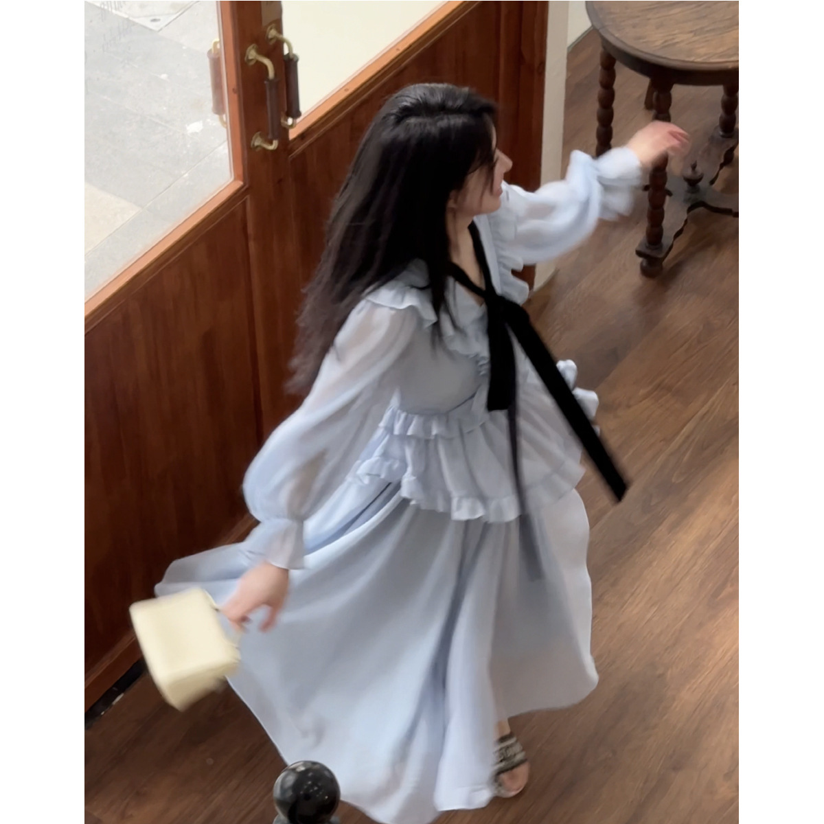봄 2025 새로운 프랑스 스타일 공주 원피스 긴팔 원피스 하이 엔드 원피스 여성 롱 원피스스토어 가기