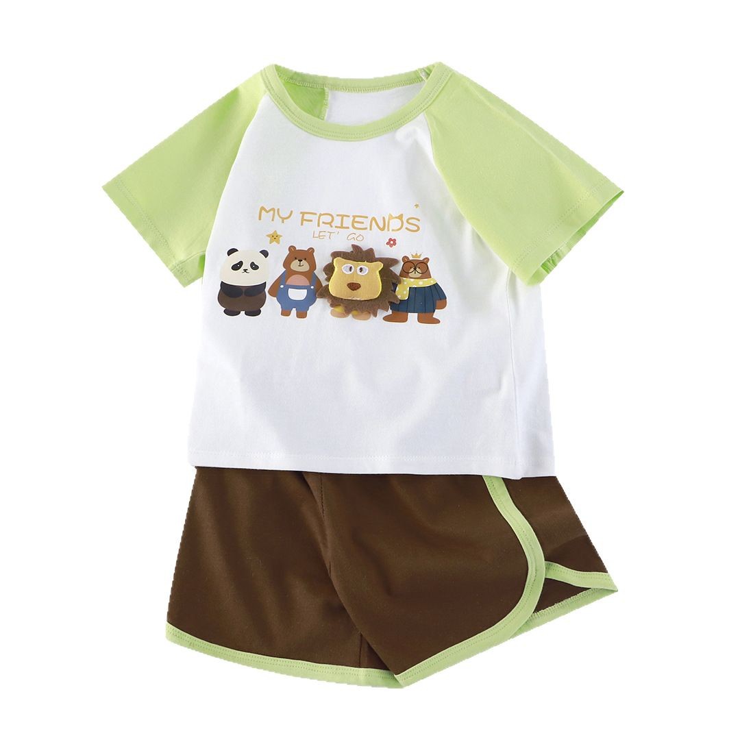 새 어린이 반팔 세트 코튼 보이 인형 여름 투피스 아기 반바지 여자를위한 아기 옷스토어 가기