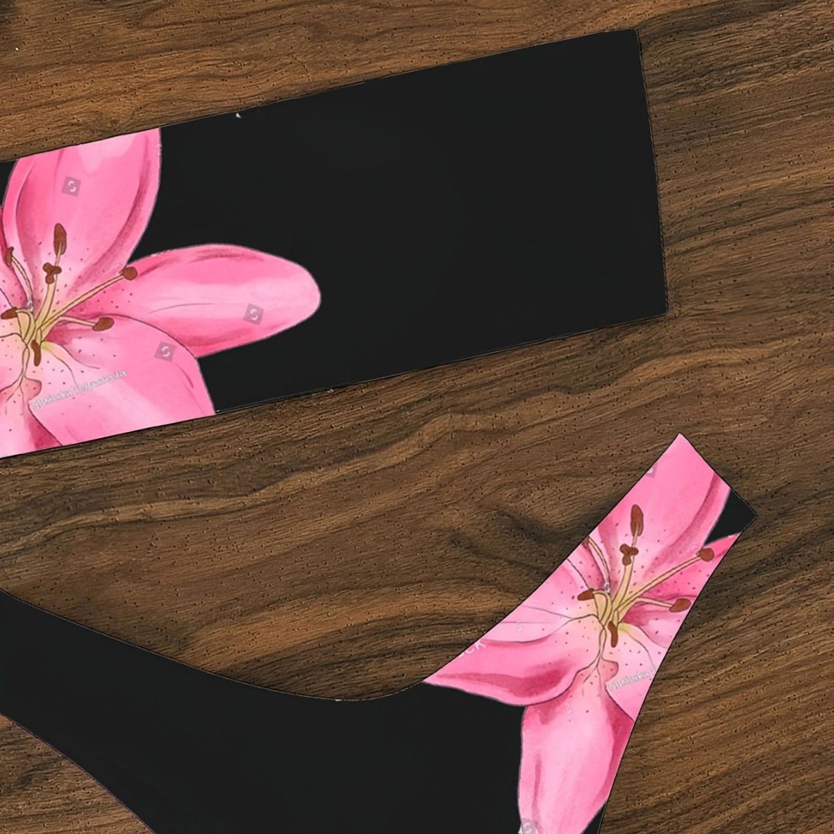 2025 대외 무역 비키니 블랙 핑크 꽃 입체 새로운 유럽과 미국의 낮은 허리 인쇄 색상 클래식 AliExpress