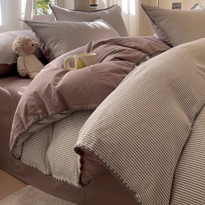 순면 침대 4종 세트 2025 신형 순면 심플 침대 시트 3종 세트 이불 커버 침대 시트 기숙사 침구스토어 가기