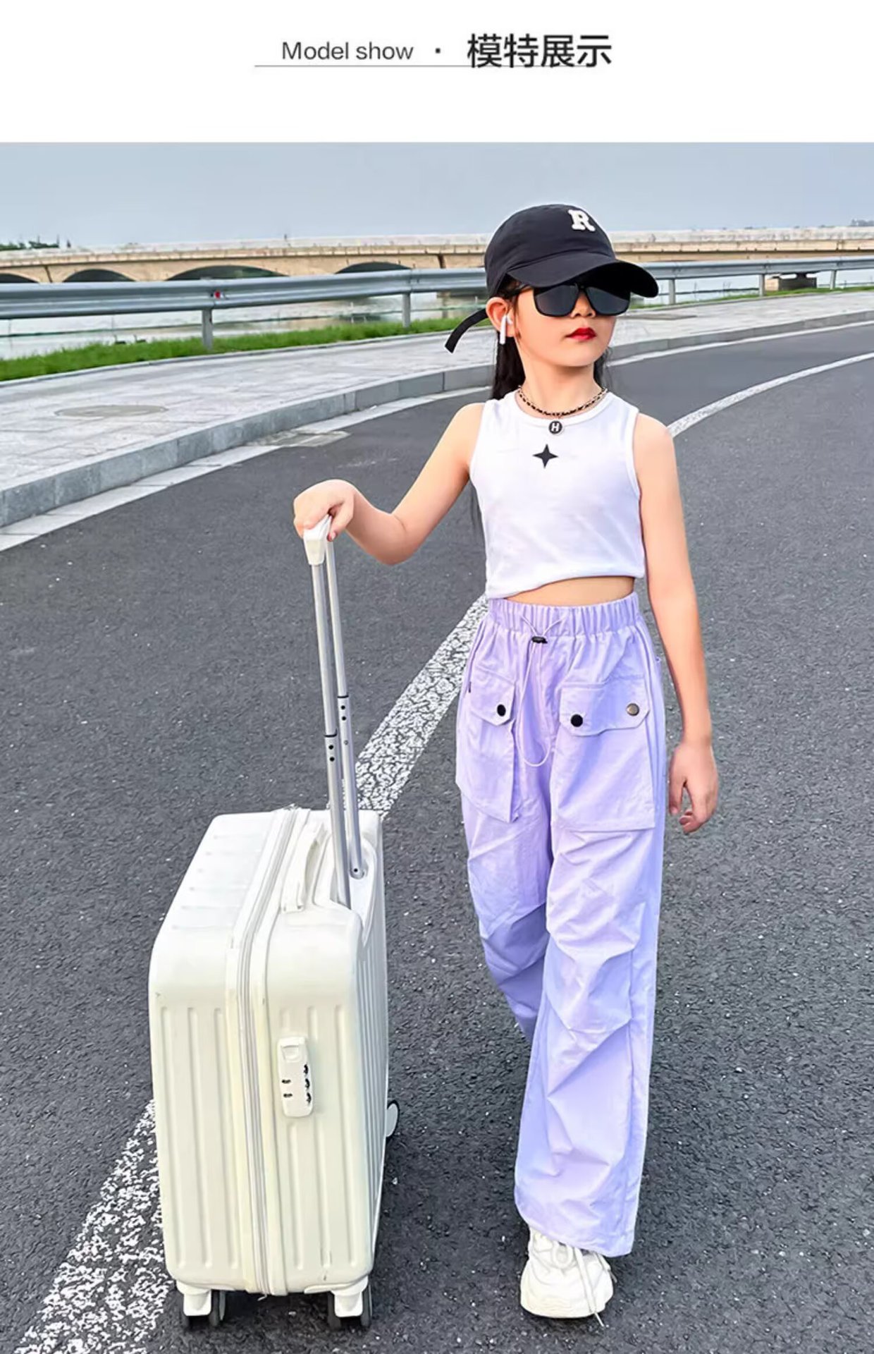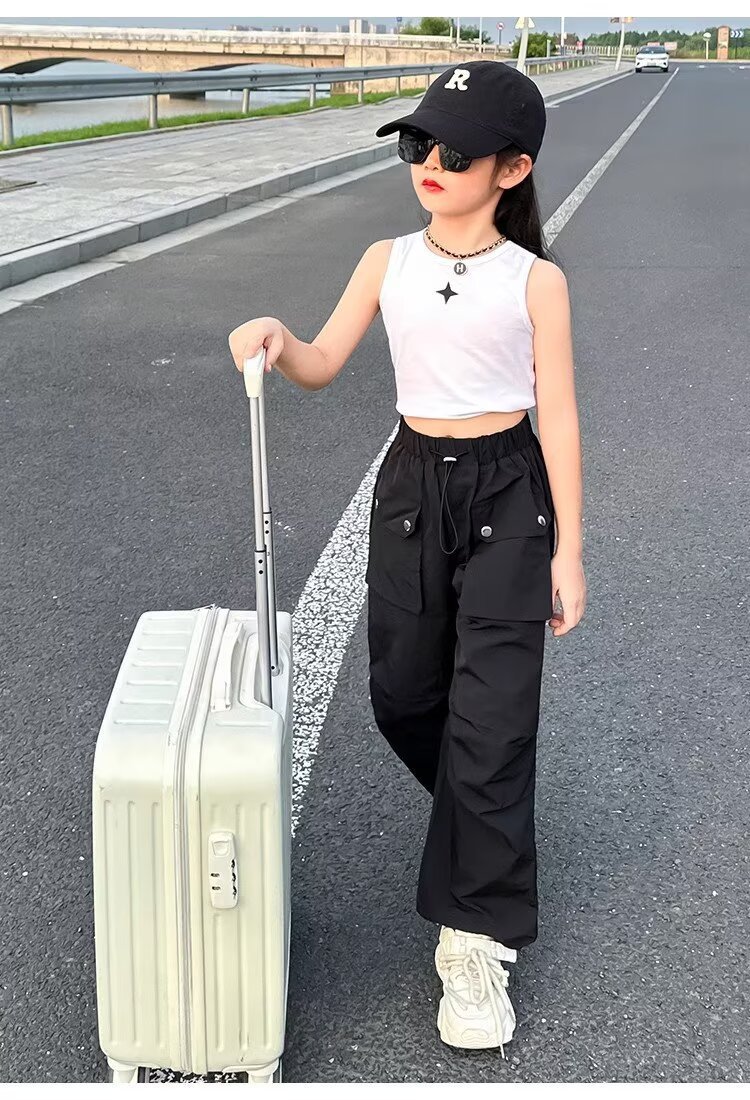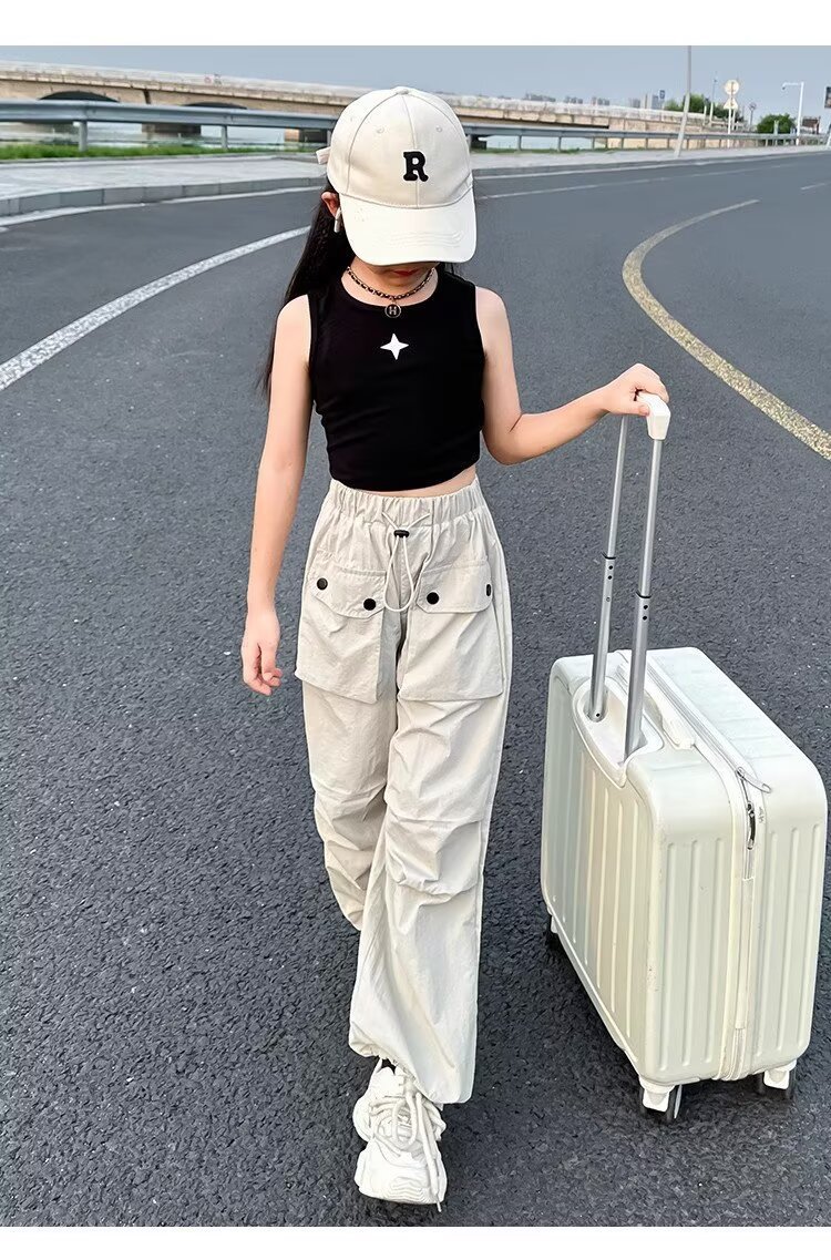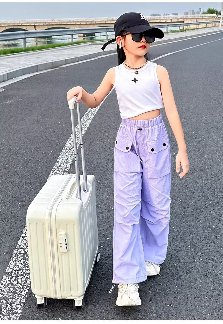 여아 여름 작업복 2025 새로운 여름 스타일 중대형 아동 패션 스트레이트 와이드 팬츠 얇은 긴 바지스토어 가기