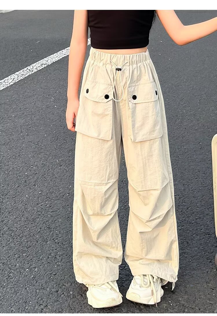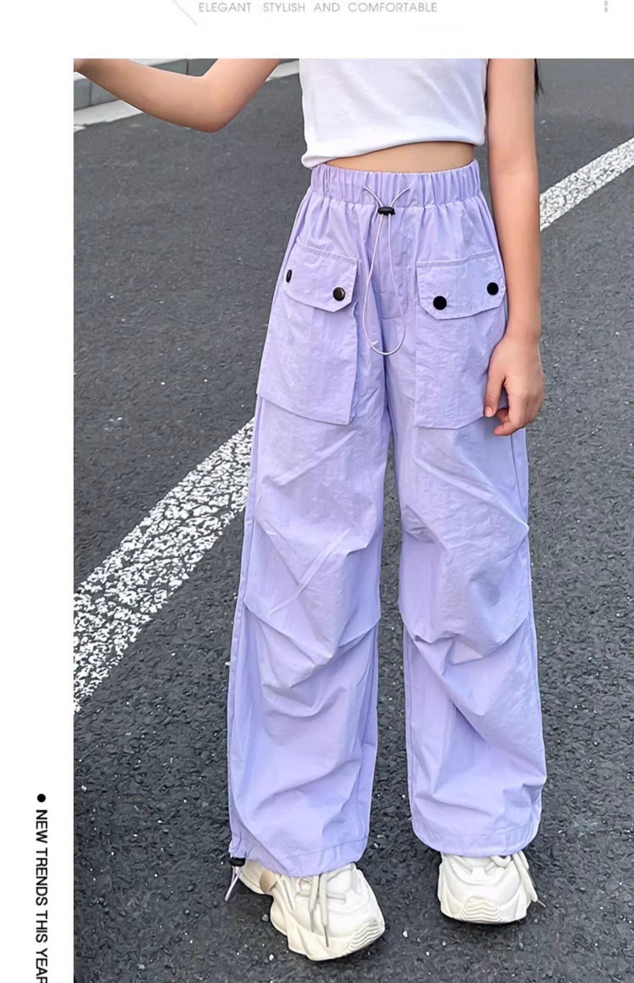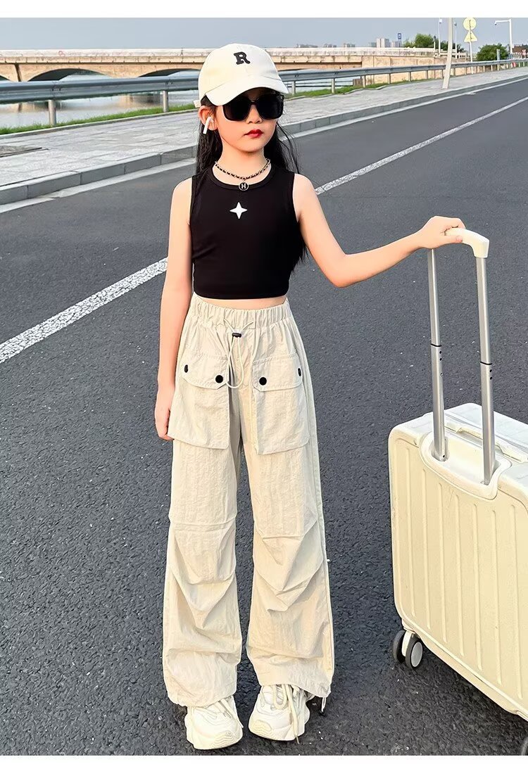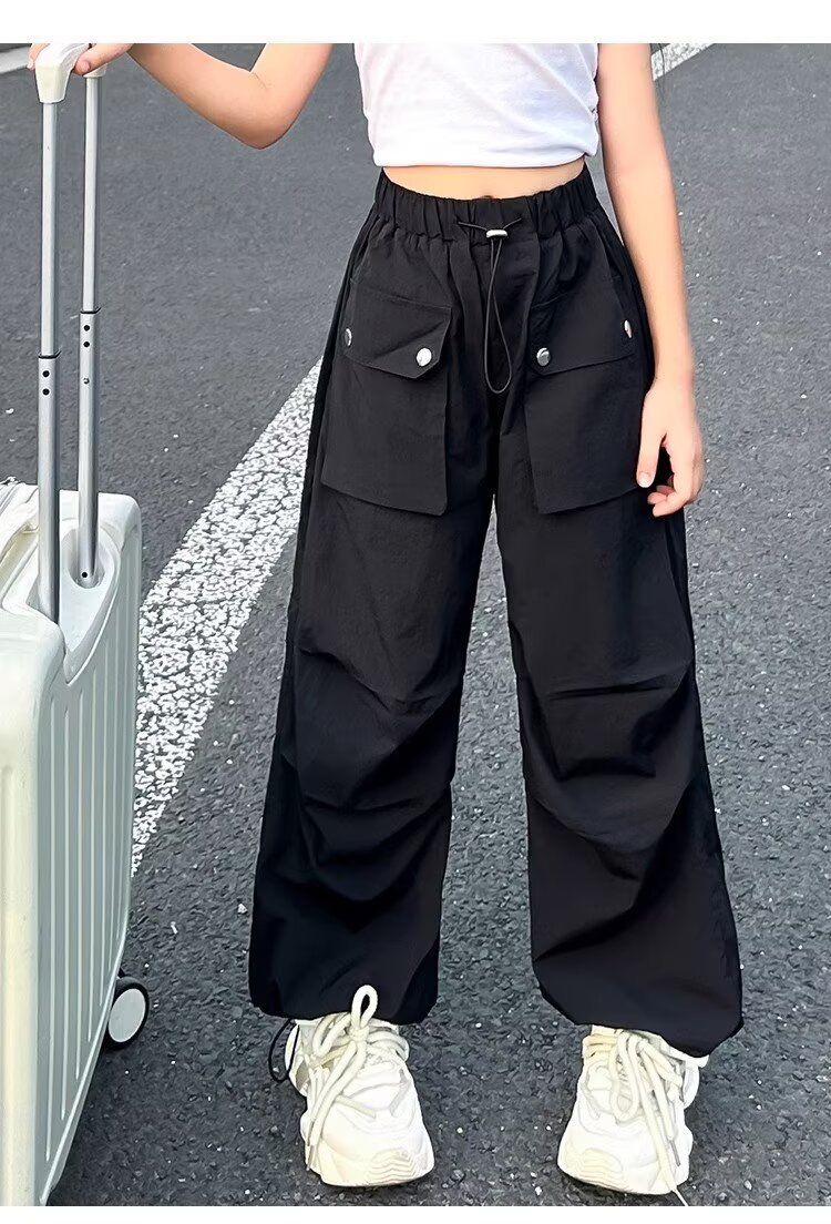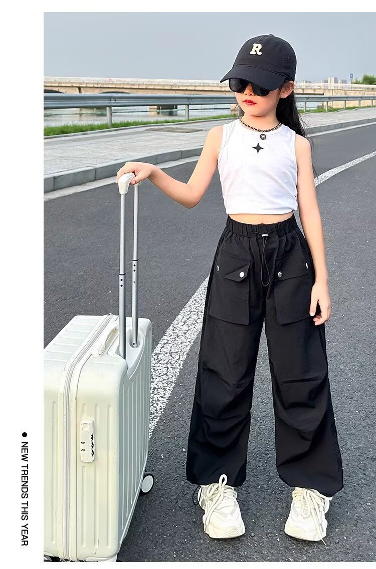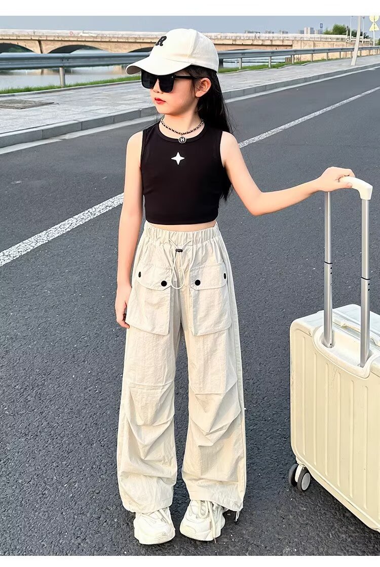 여아 여름 작업복 2025 새로운 여름 스타일 중대형 아동 패션 스트레이트 와이드 팬츠 얇은 긴 바지