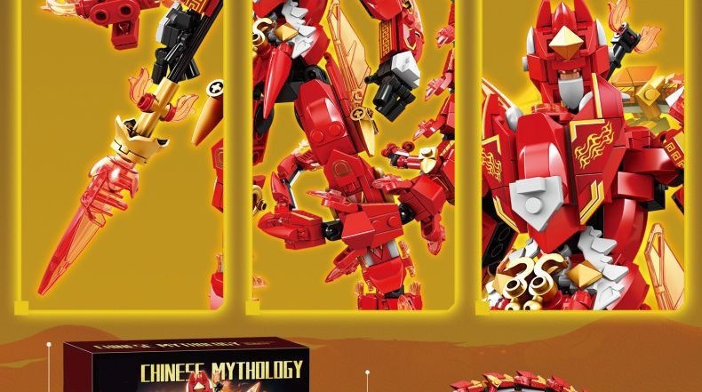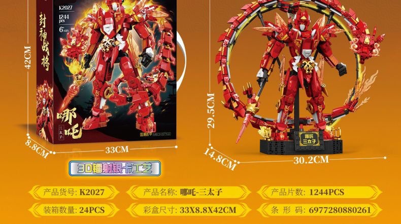 중국 신형 블록 조립식 기계인형 '봉신록' 오빙 나자 삼왕자 조립 장난감 소년 선물
