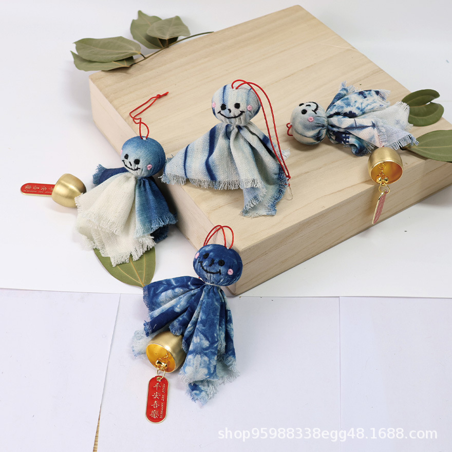 식물 푸른 염료 화창한 날 인형 펜던트 수제 넥타이 염색 일본 귀여운 화창한 날 인형 바람 벨 펜던트스토어 가기