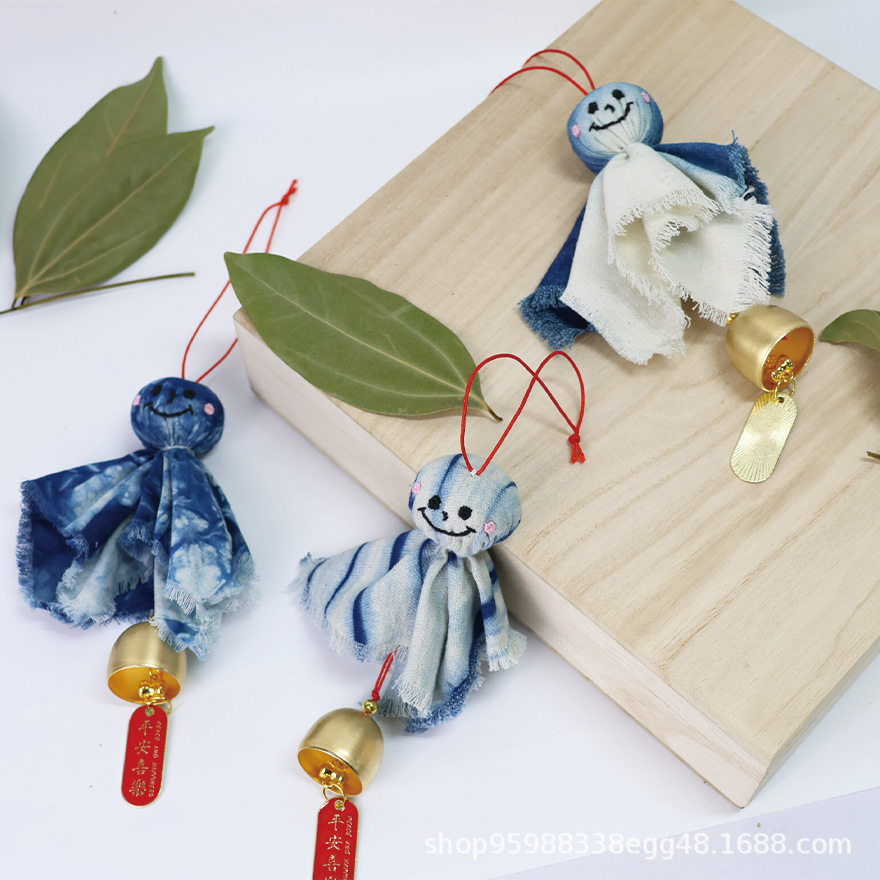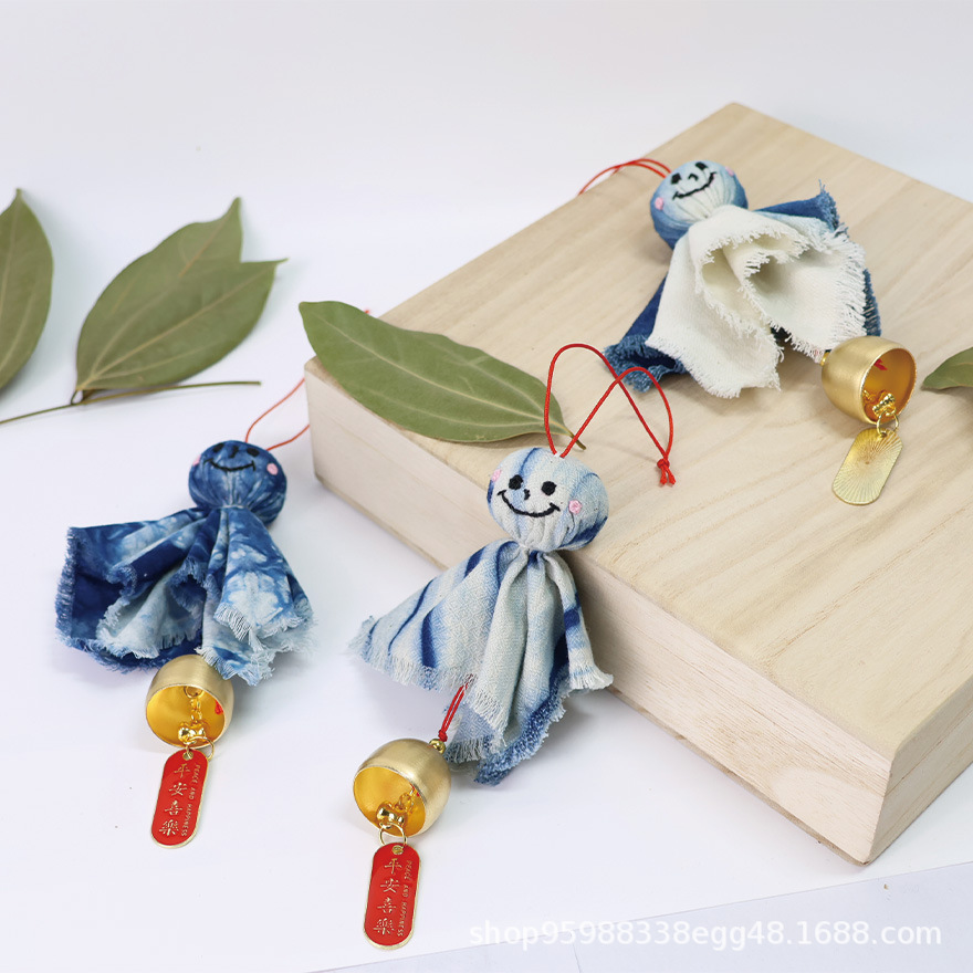 식물 푸른 염료 화창한 날 인형 펜던트 수제 넥타이 염색 일본 귀여운 화창한 날 인형 바람 벨 펜던트