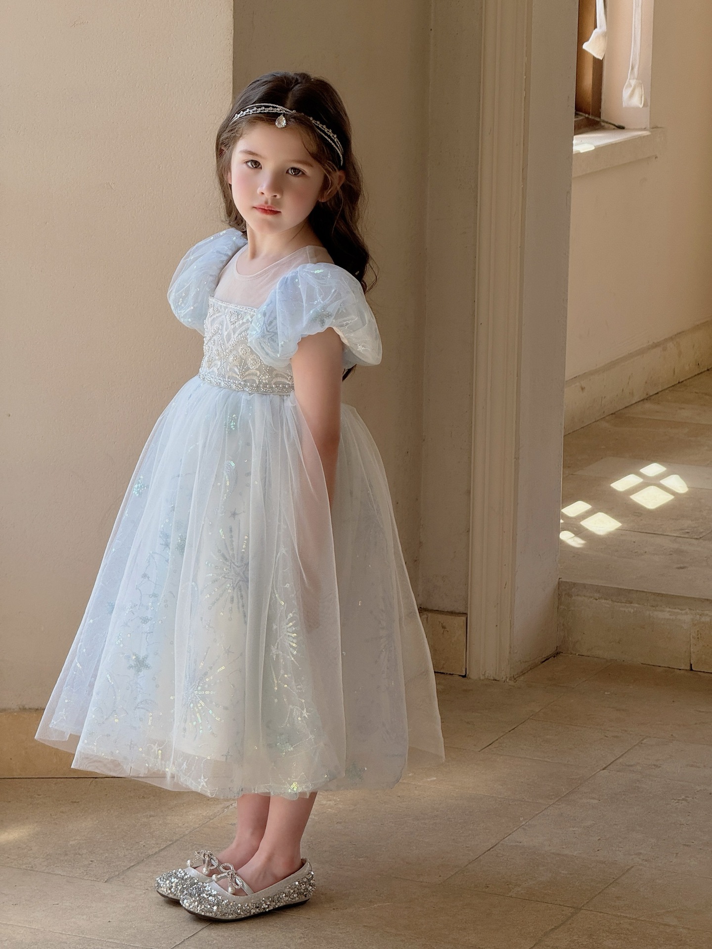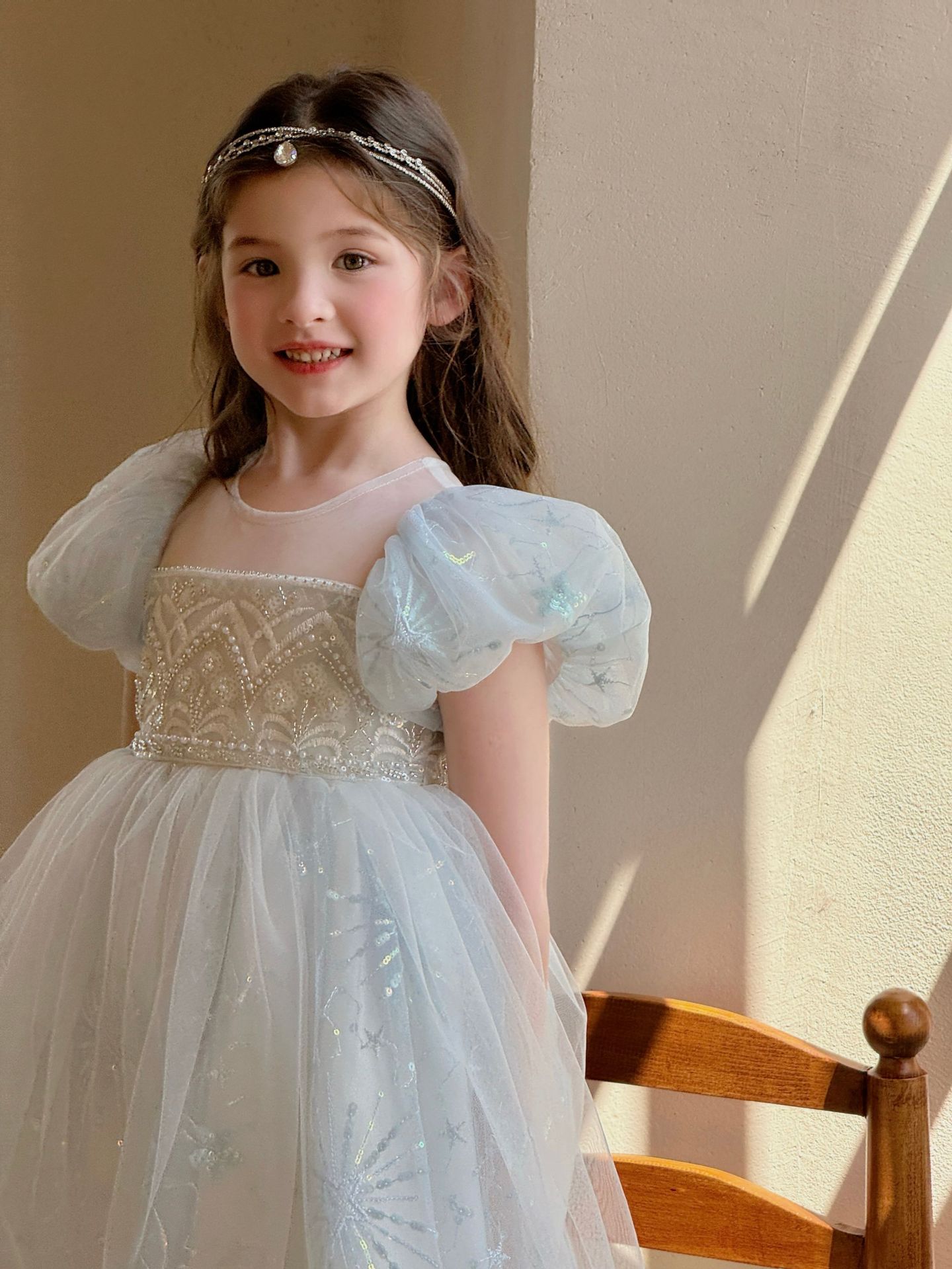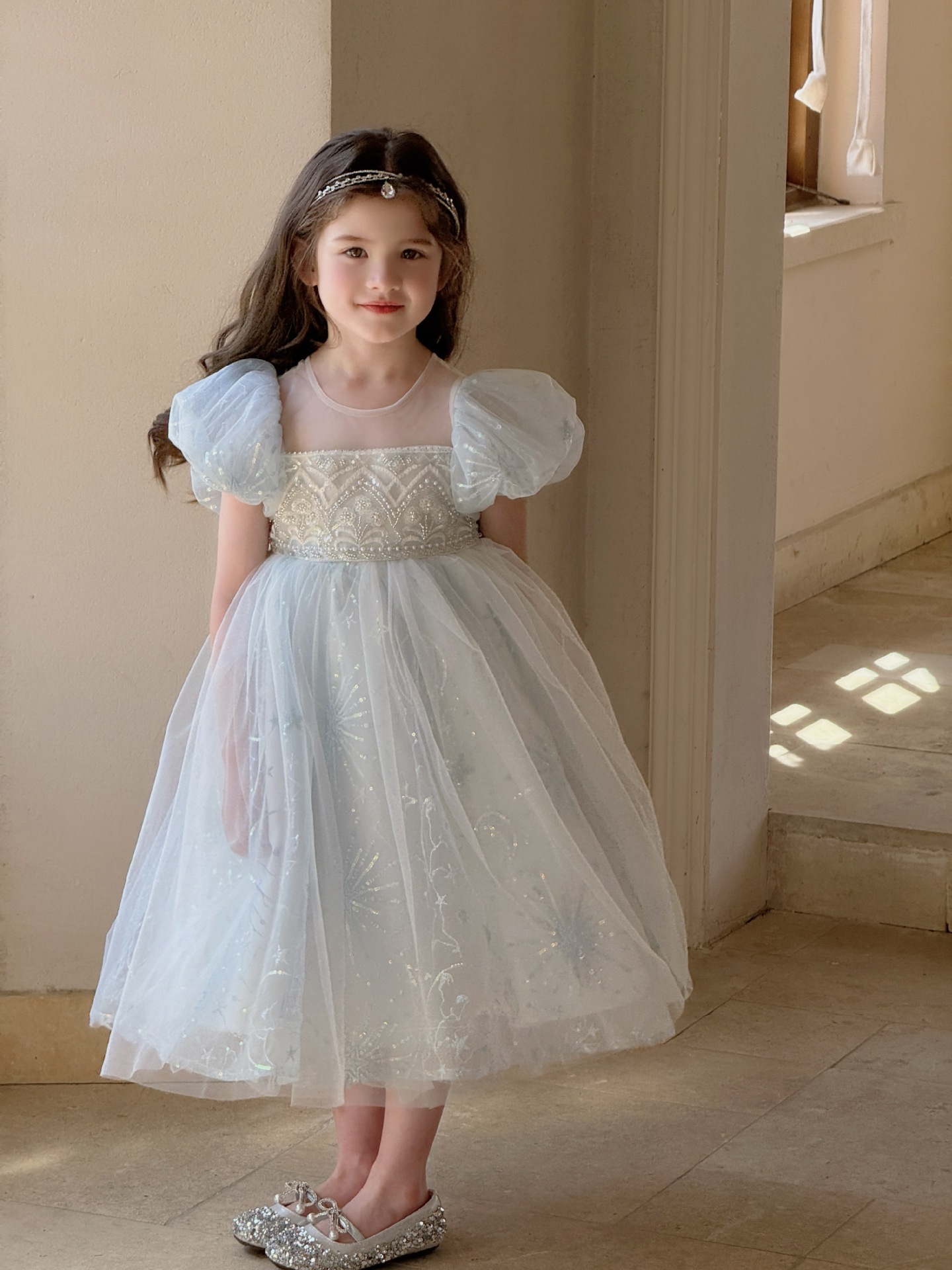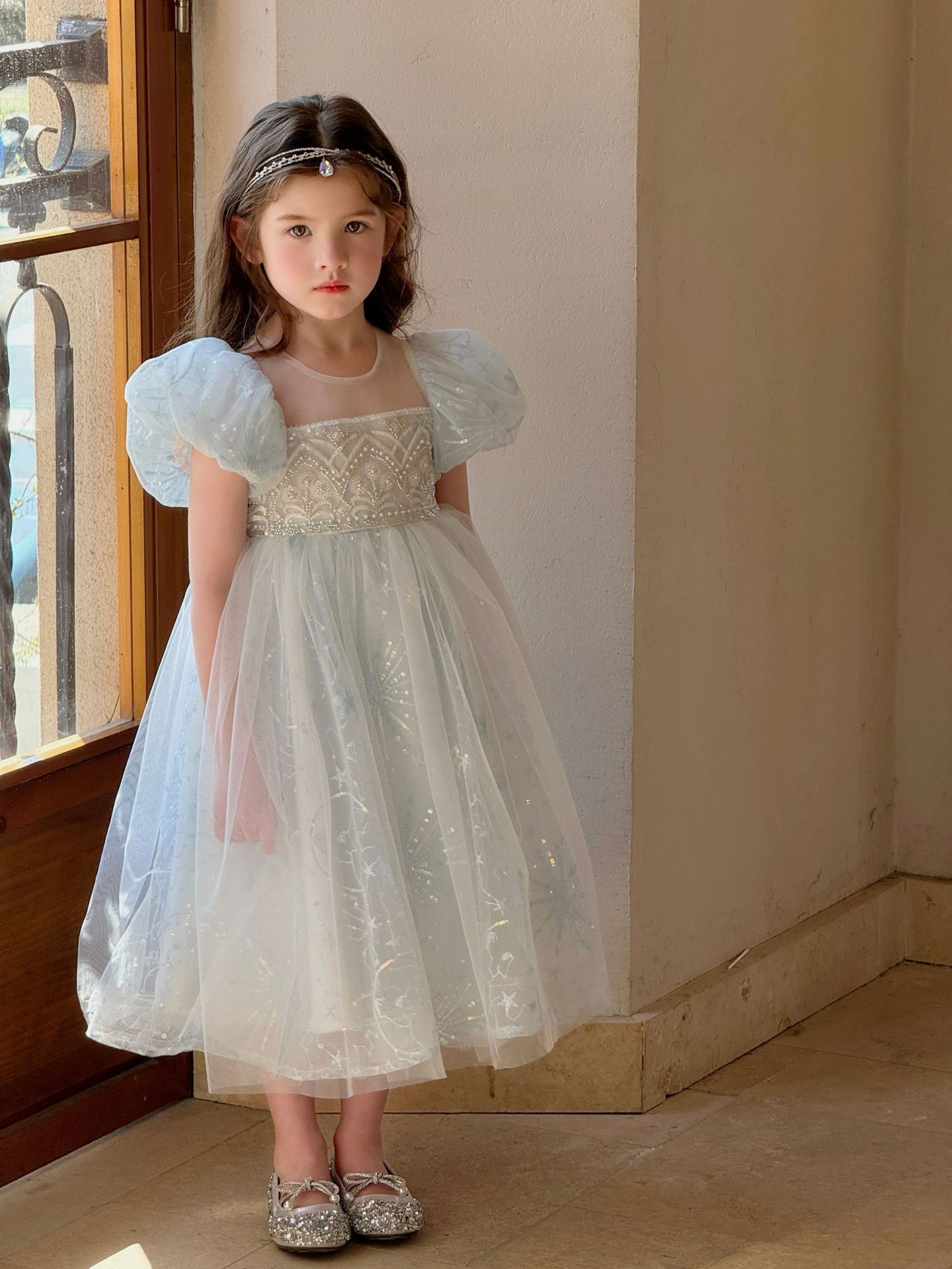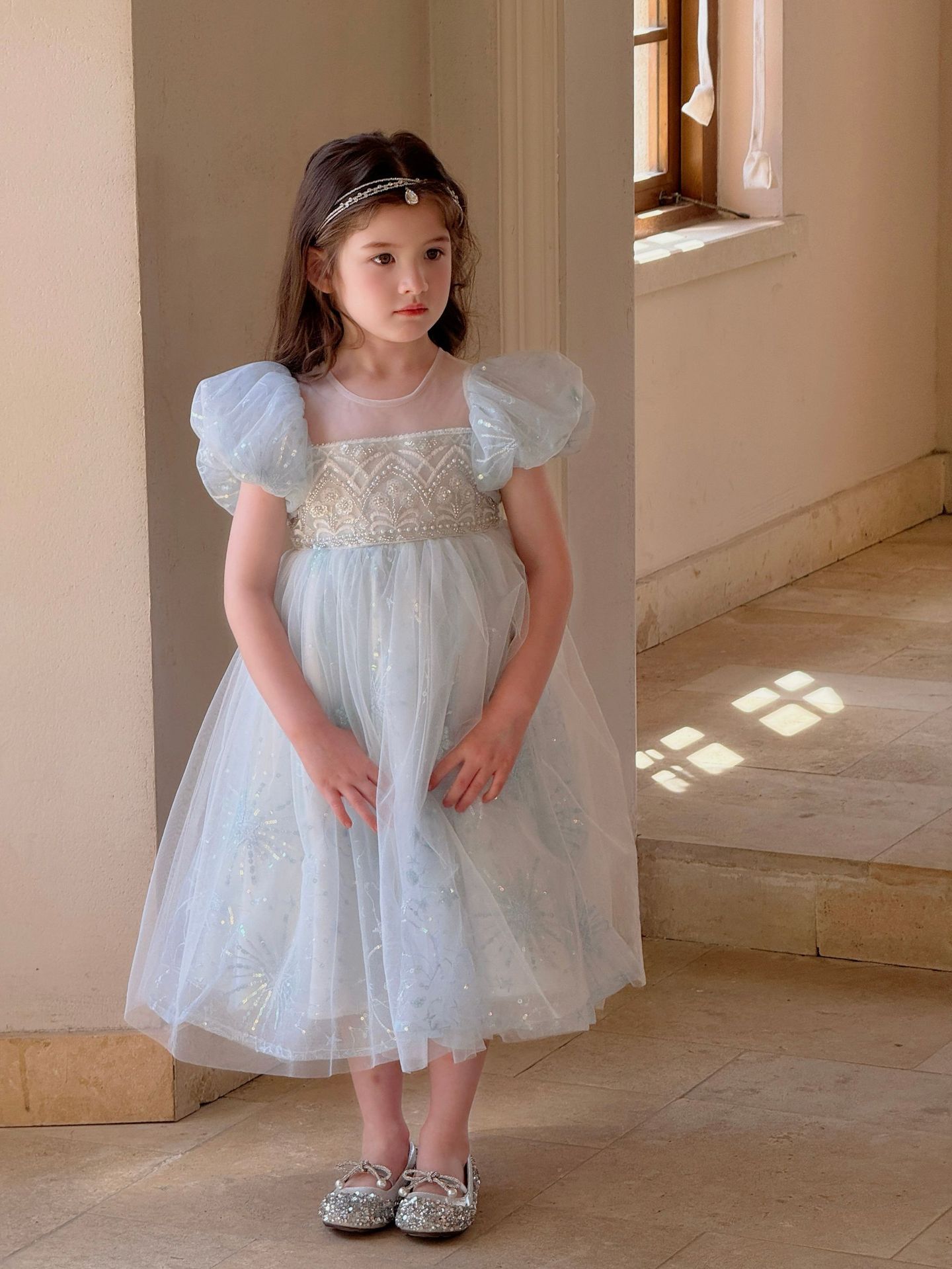 냉동 아이샤 소녀 공주 원피스 2025 봄과 여름 새로운 어린이 원피스 생일 원피스 공연 원피스스토어 가기