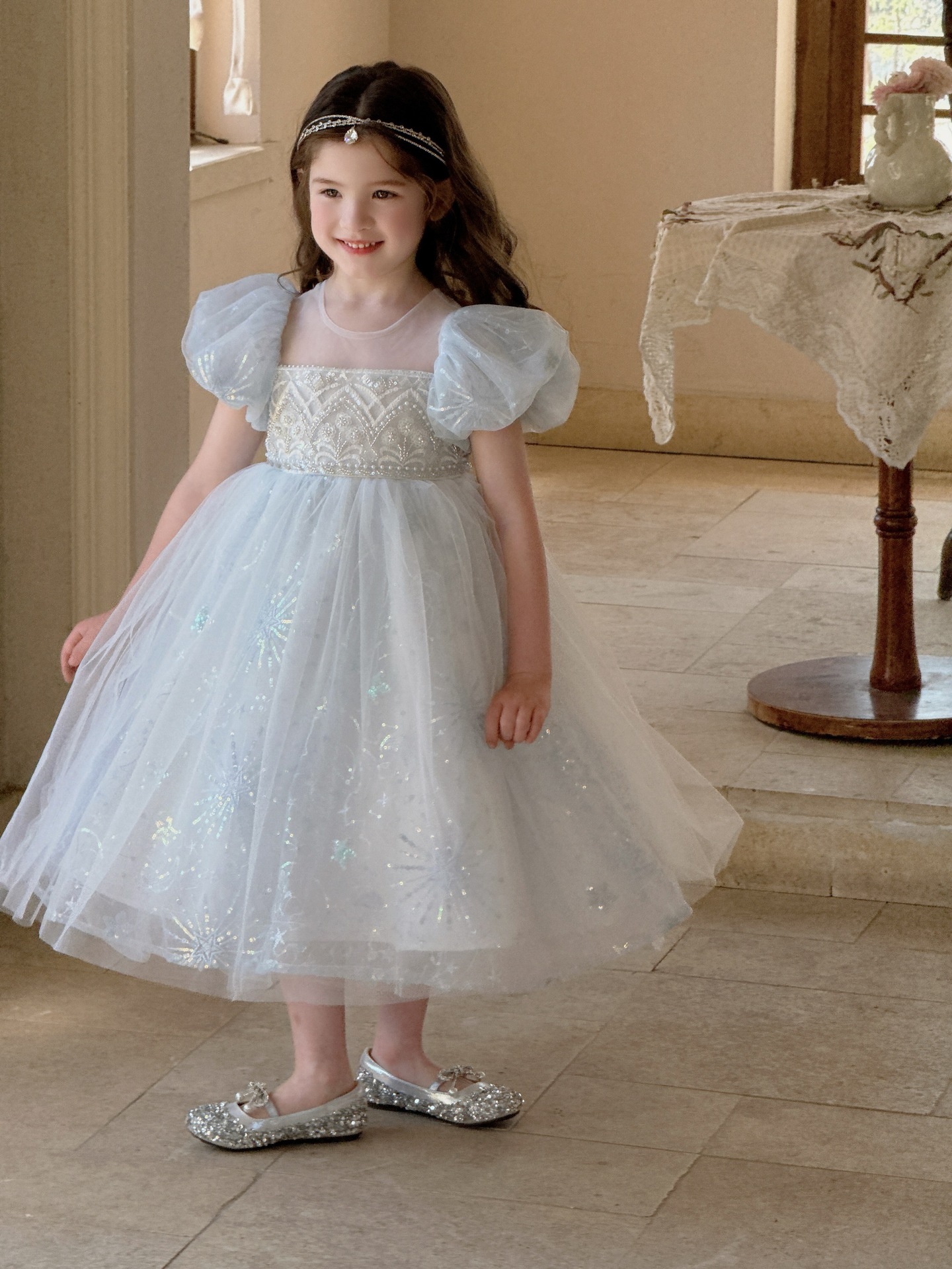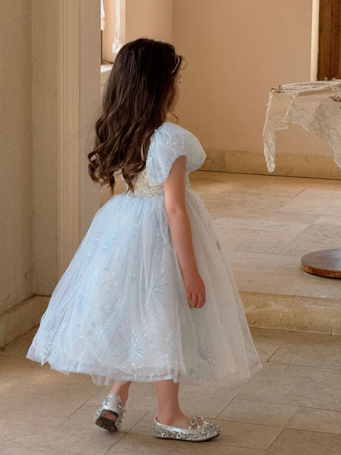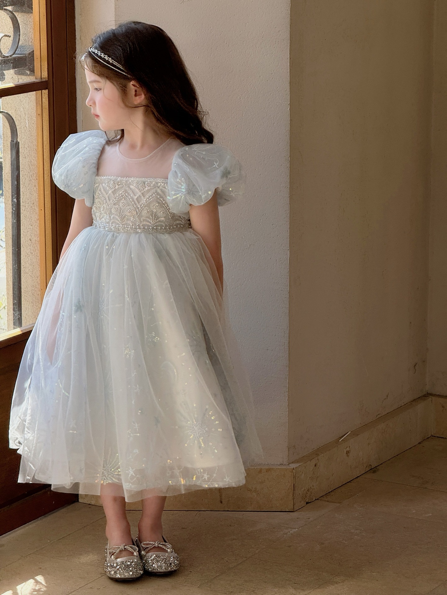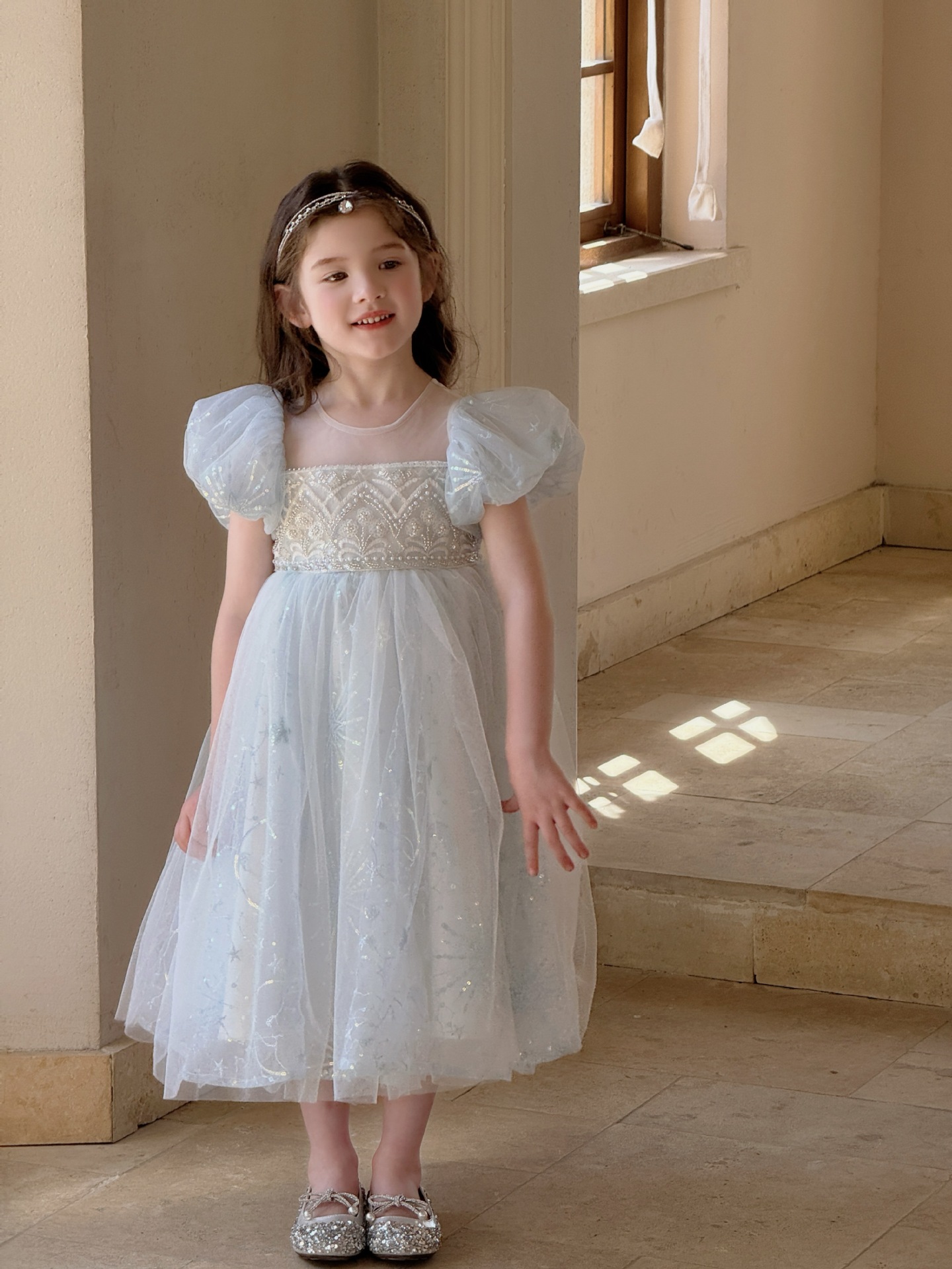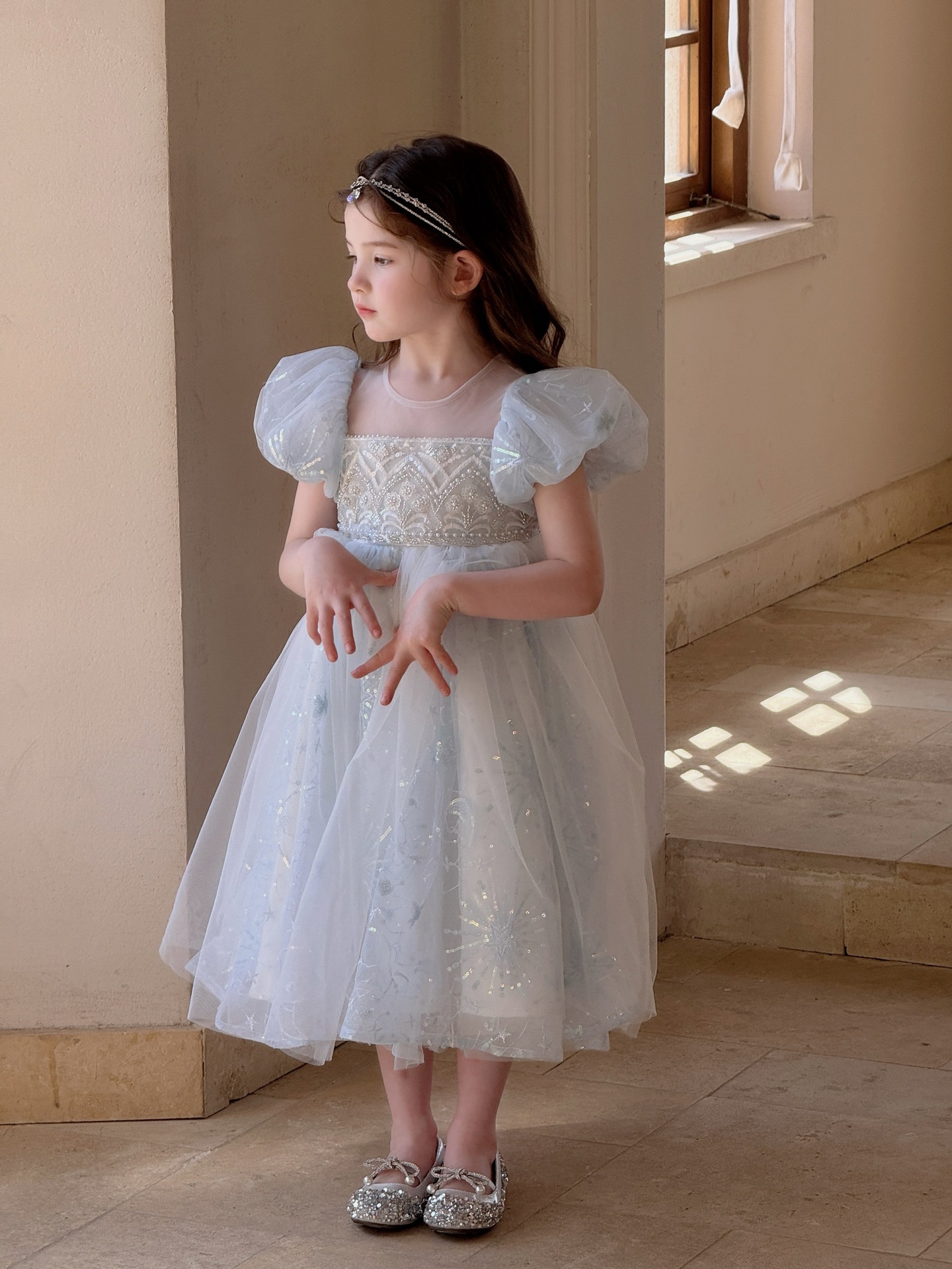 냉동 아이샤 소녀 공주 원피스 2025 봄과 여름 새로운 어린이 원피스 생일 원피스 공연 원피스스토어 가기