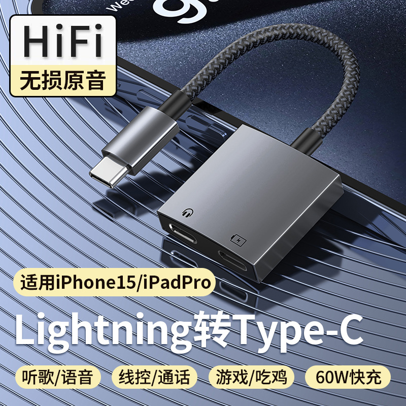 Typec 어댑터 무손실 음질 2-in-1은 Apple 16 시리즈 헤드폰 어댑터에 적합한 60w 고속 충전을 지원합니다.