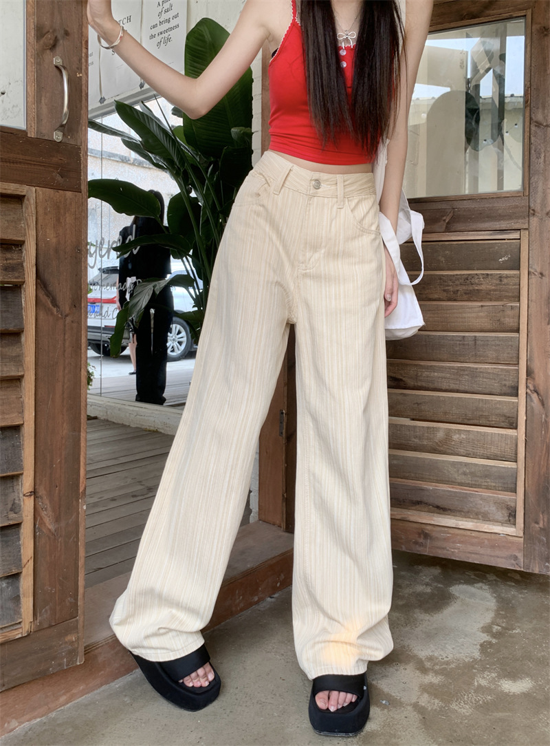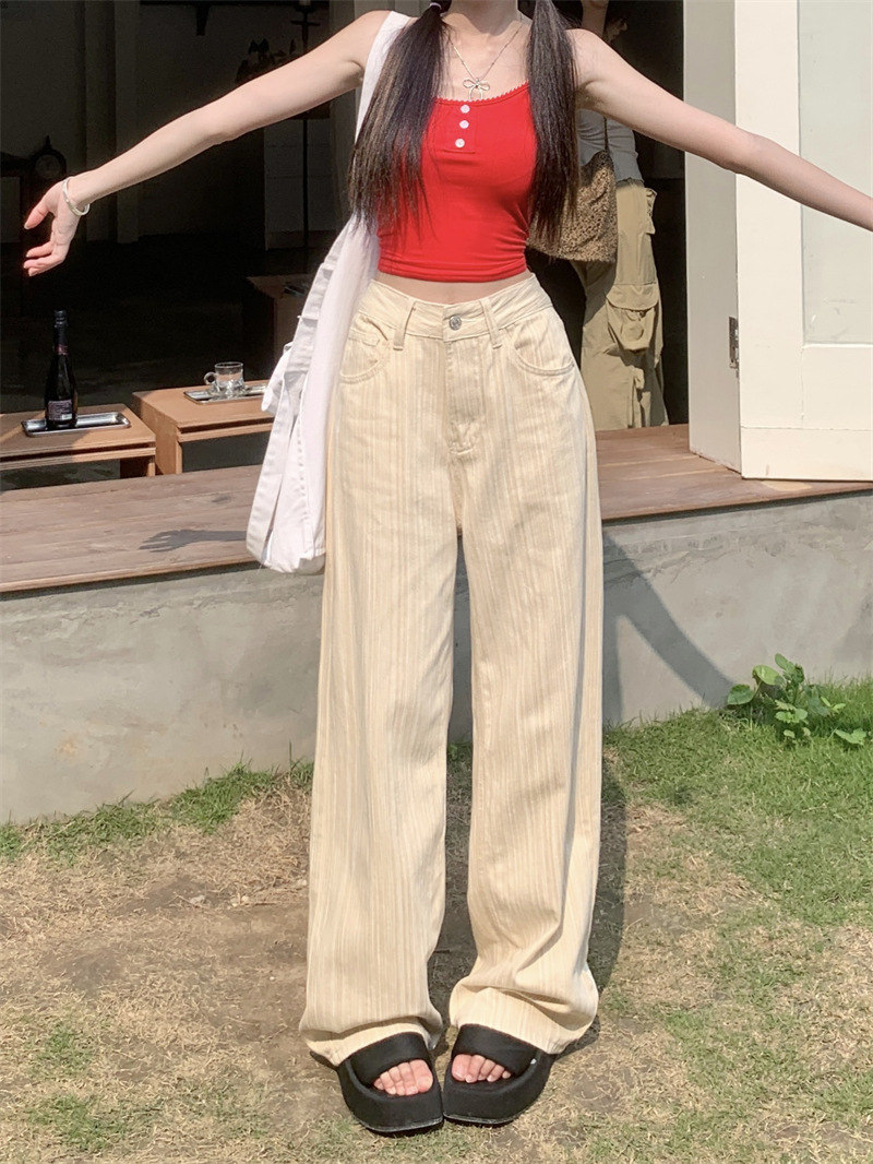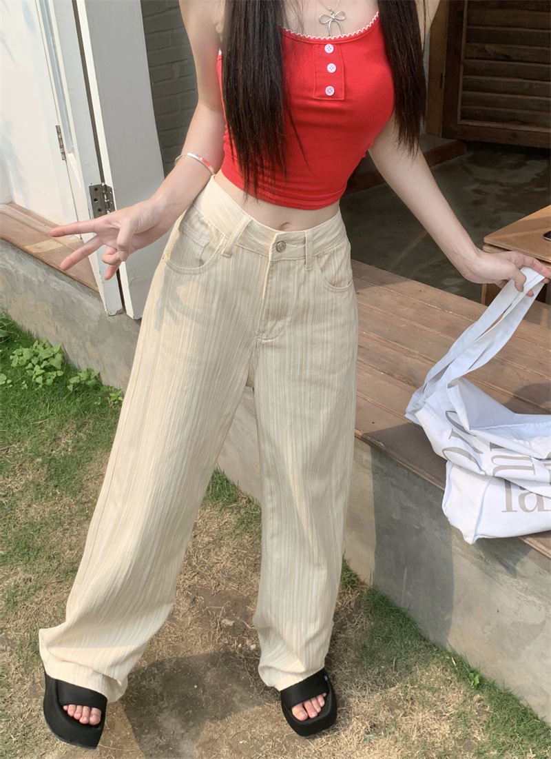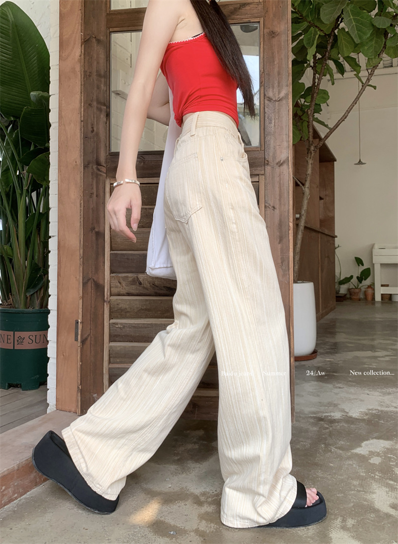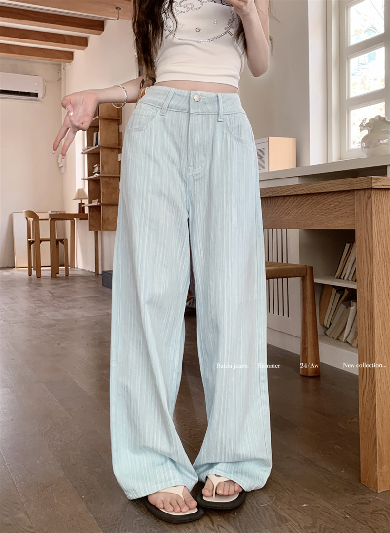 도파민 핑크 질감 높은 허리 청바지 여자 여름 2024 새로운 느슨한 올 매치 스트레이트 다리 와이드 레그 팬츠스토어 가기