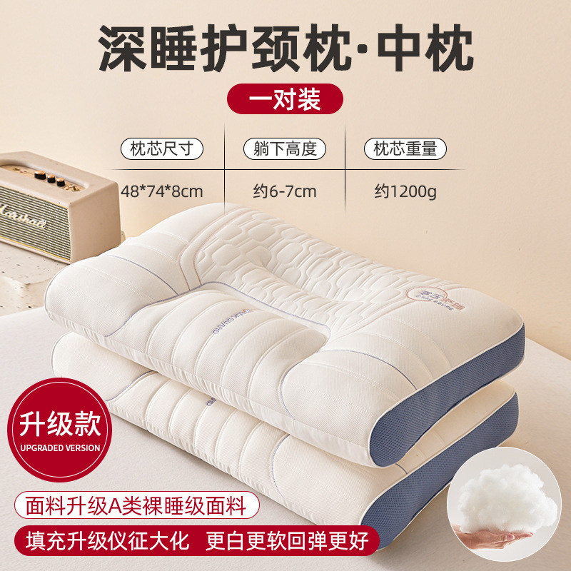 • 무압력 깊은 수면 목 보호대 - 중간 베개 한 쌍 [업그레이드된 클래스 A 직물 Yizheng 화학 섬유는 더 하얗고 부드러우며 리바운드가 더 좋습니다]