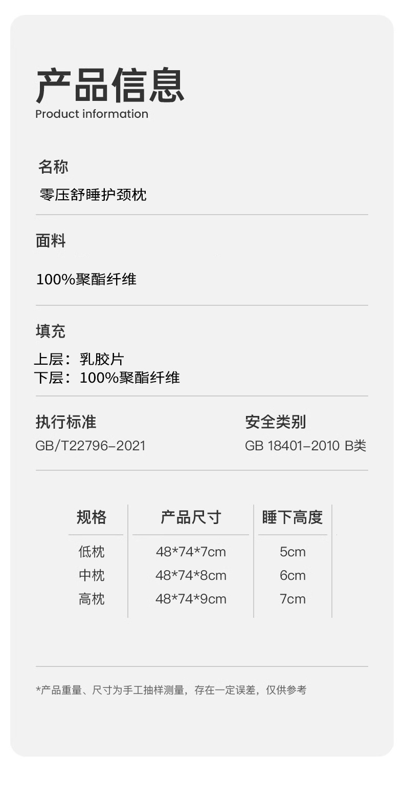 • 무압력깊은수면목보호대 [48*74cm 싱글팩] 낮은베개