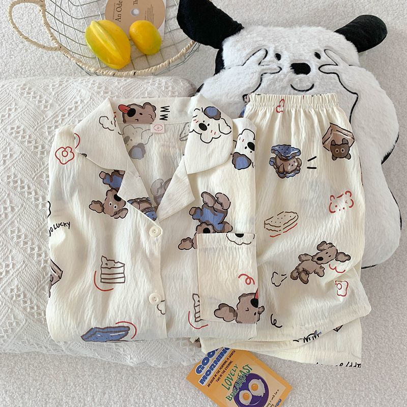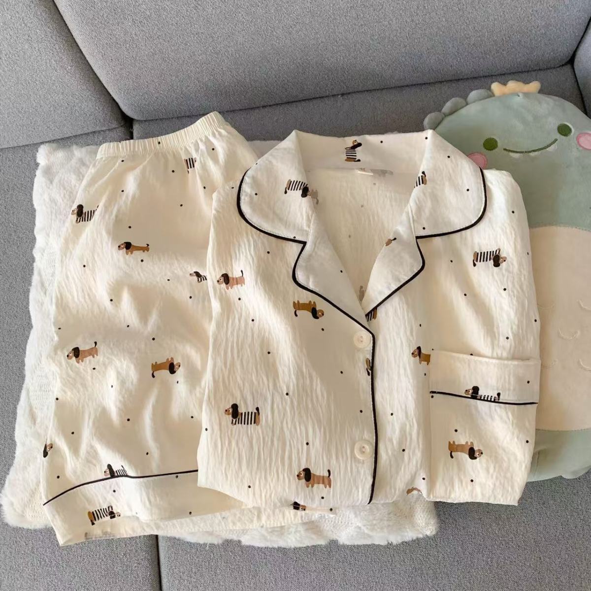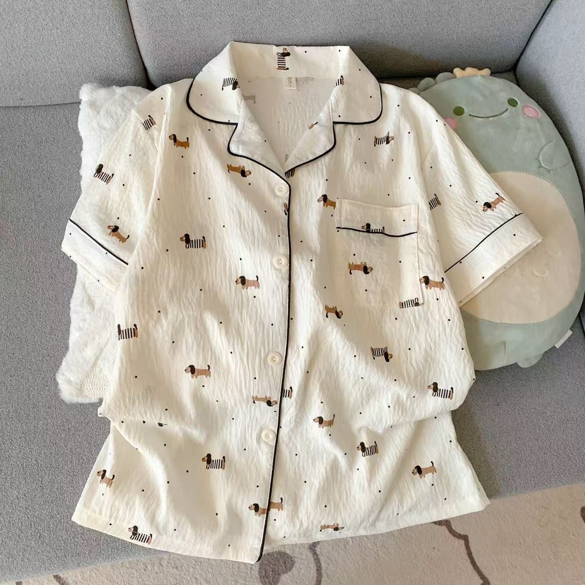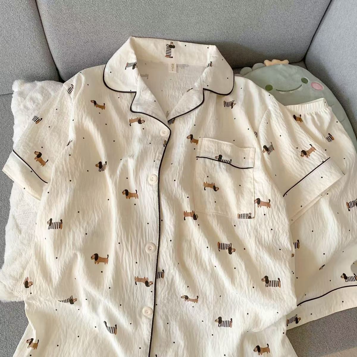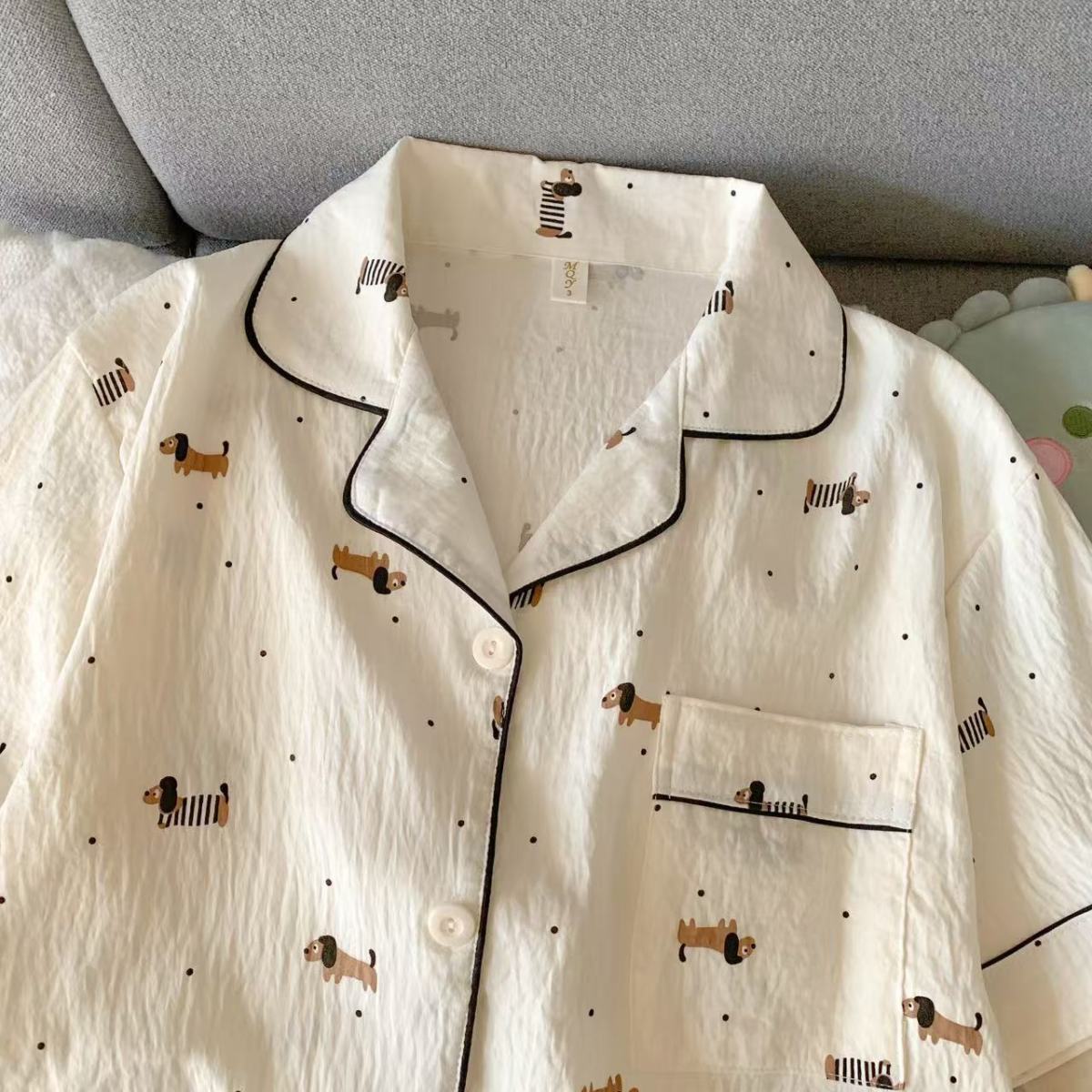 구름 면 파자마 여성 여름 얇은 반팔 달콤한 닥스 훈트 개 소녀의 간단한 일본식 겉옷 홈 세트스토어 가기