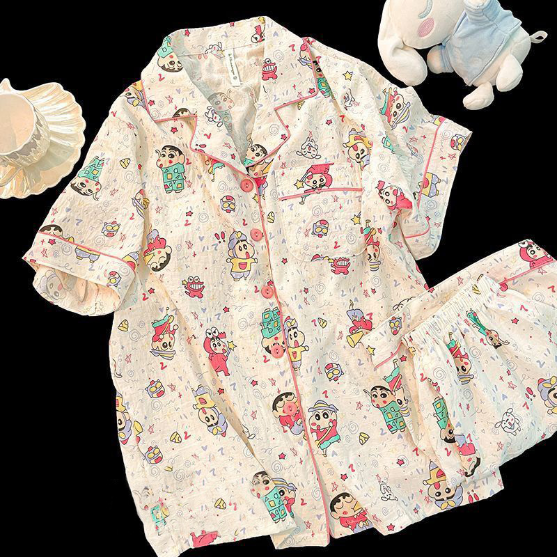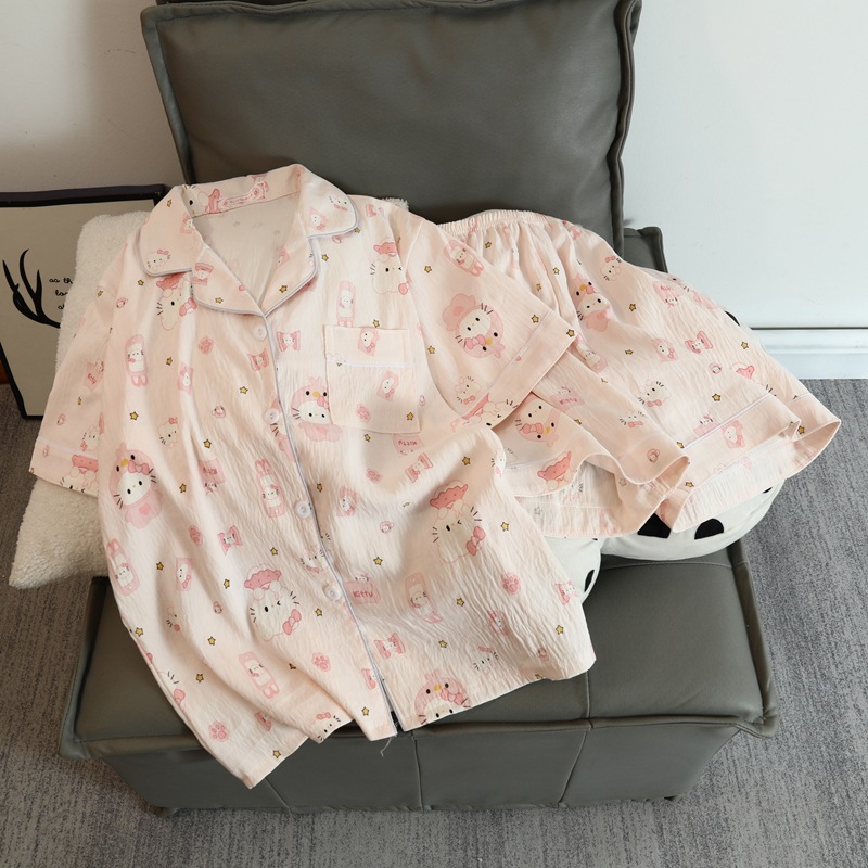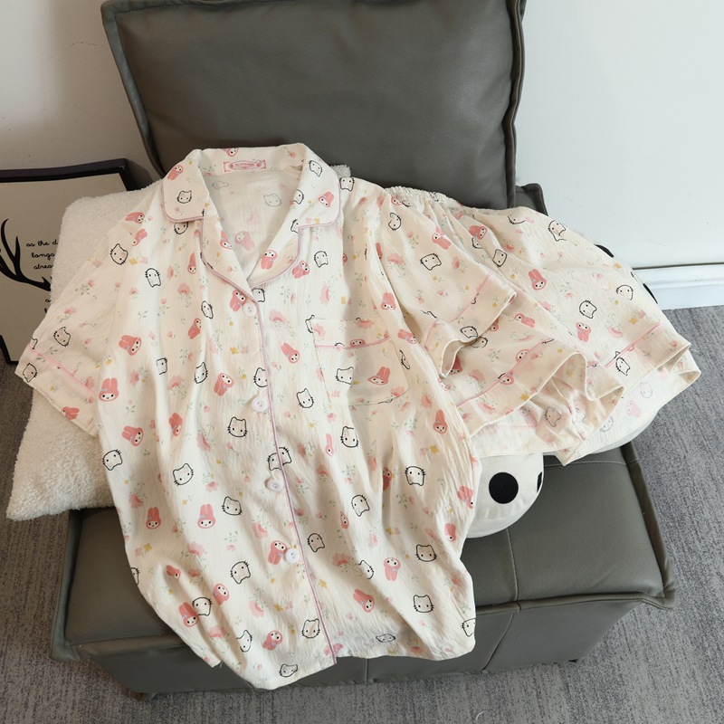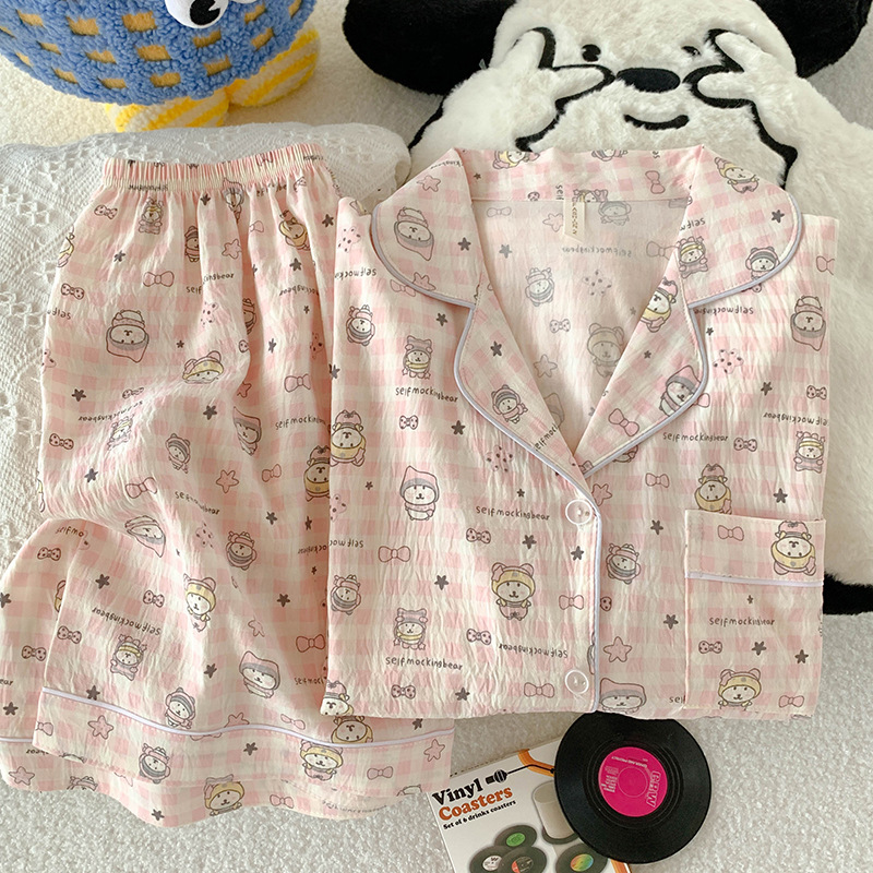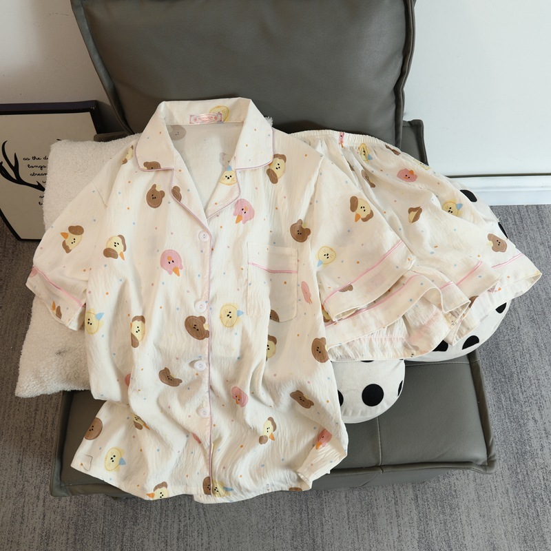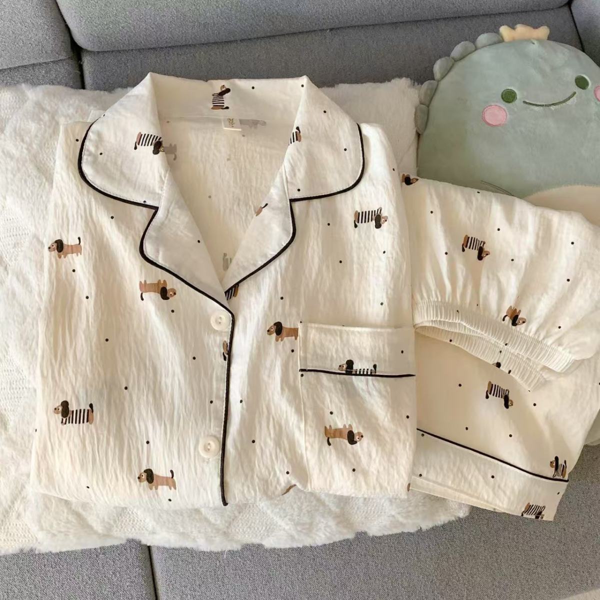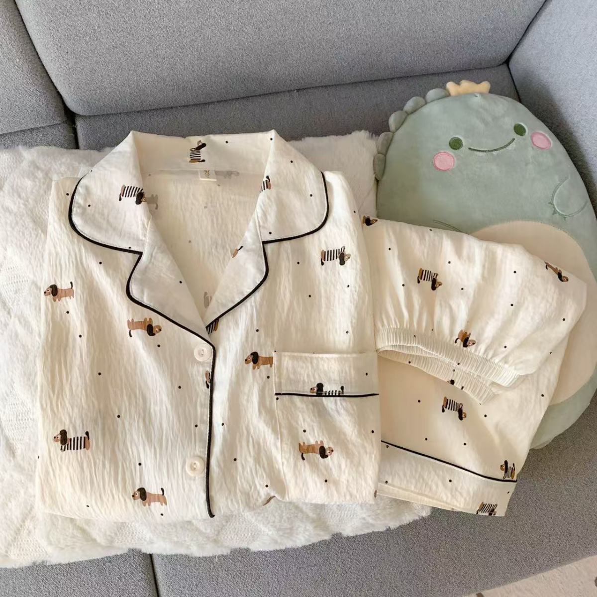 구름 면 파자마 여성 여름 얇은 반팔 달콤한 닥스 훈트 개 소녀의 간단한 일본식 겉옷 홈 세트스토어 가기