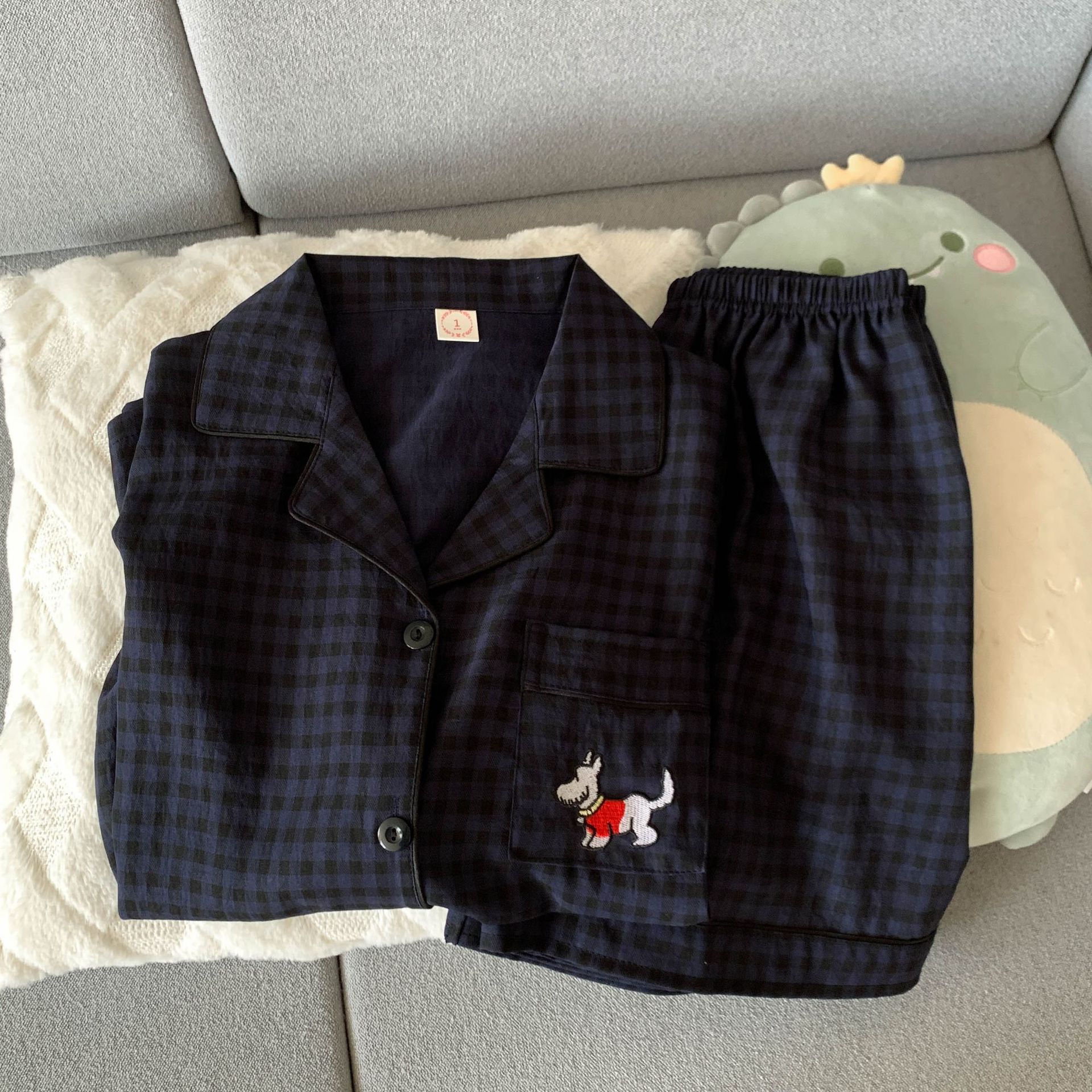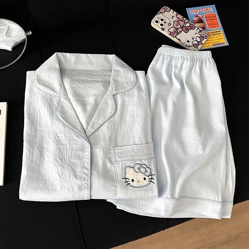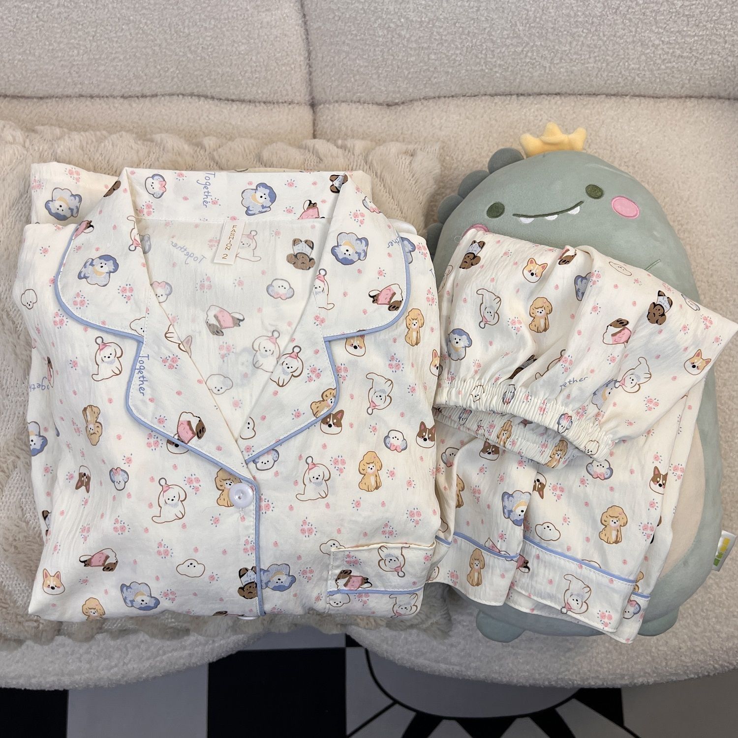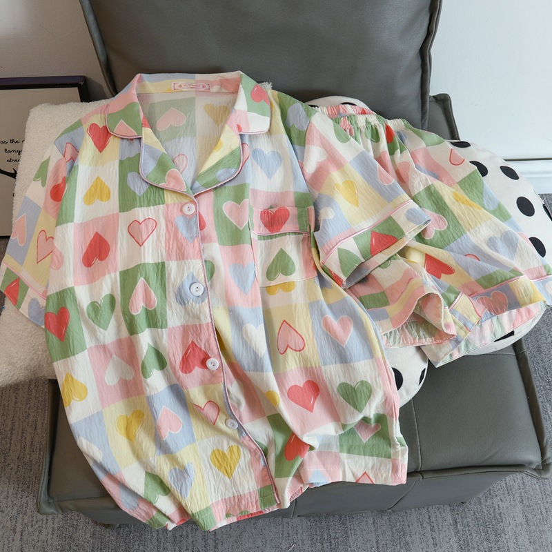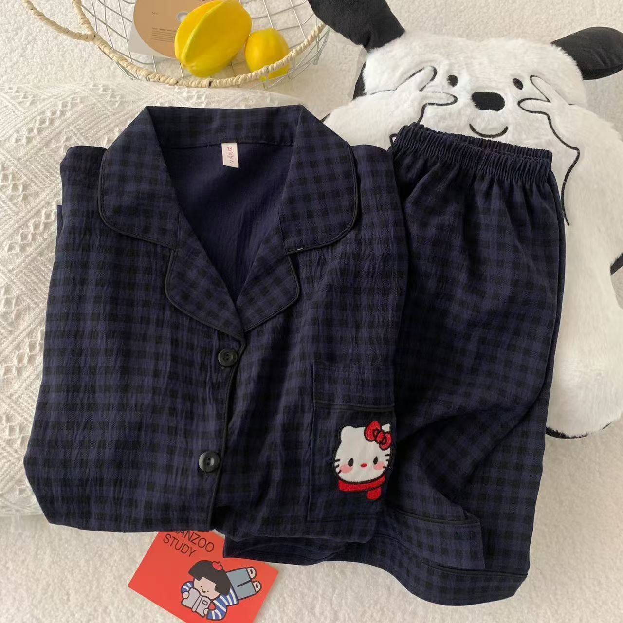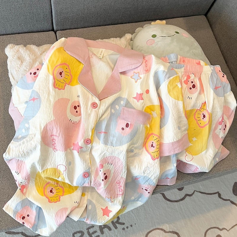 구름 면 파자마 여성 여름 얇은 반팔 달콤한 닥스 훈트 개 소녀의 간단한 일본식 겉옷 홈 세트스토어 가기
