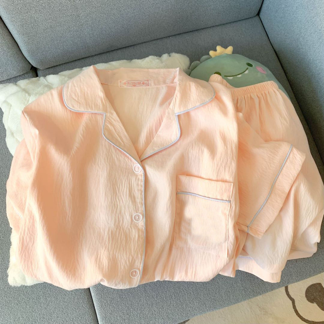 구름 면 파자마 여성 여름 얇은 반팔 달콤한 닥스 훈트 개 소녀의 간단한 일본식 겉옷 홈 세트