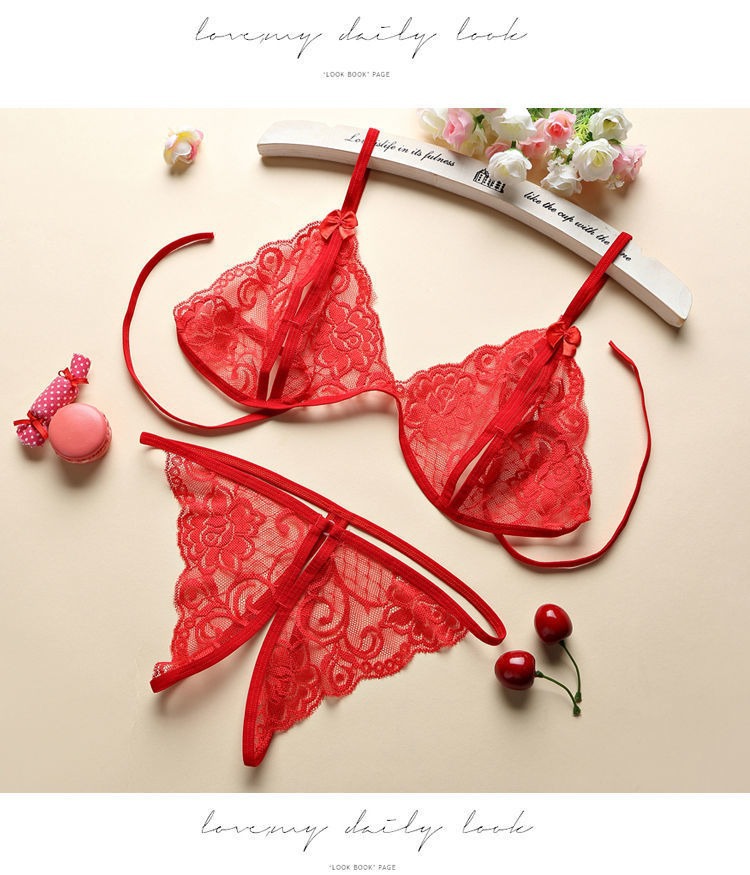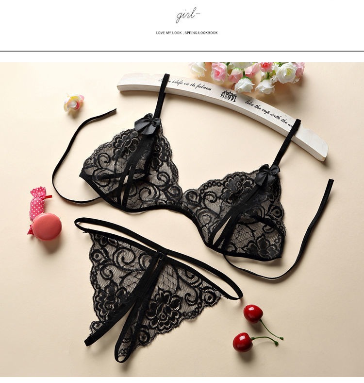 섹시 오픈형 투피스 세트, 탈착 불가, 3점 레이스 속옷, 여성스러운 열정적인 끈팬티, 드롭쉬핑스토어 가기