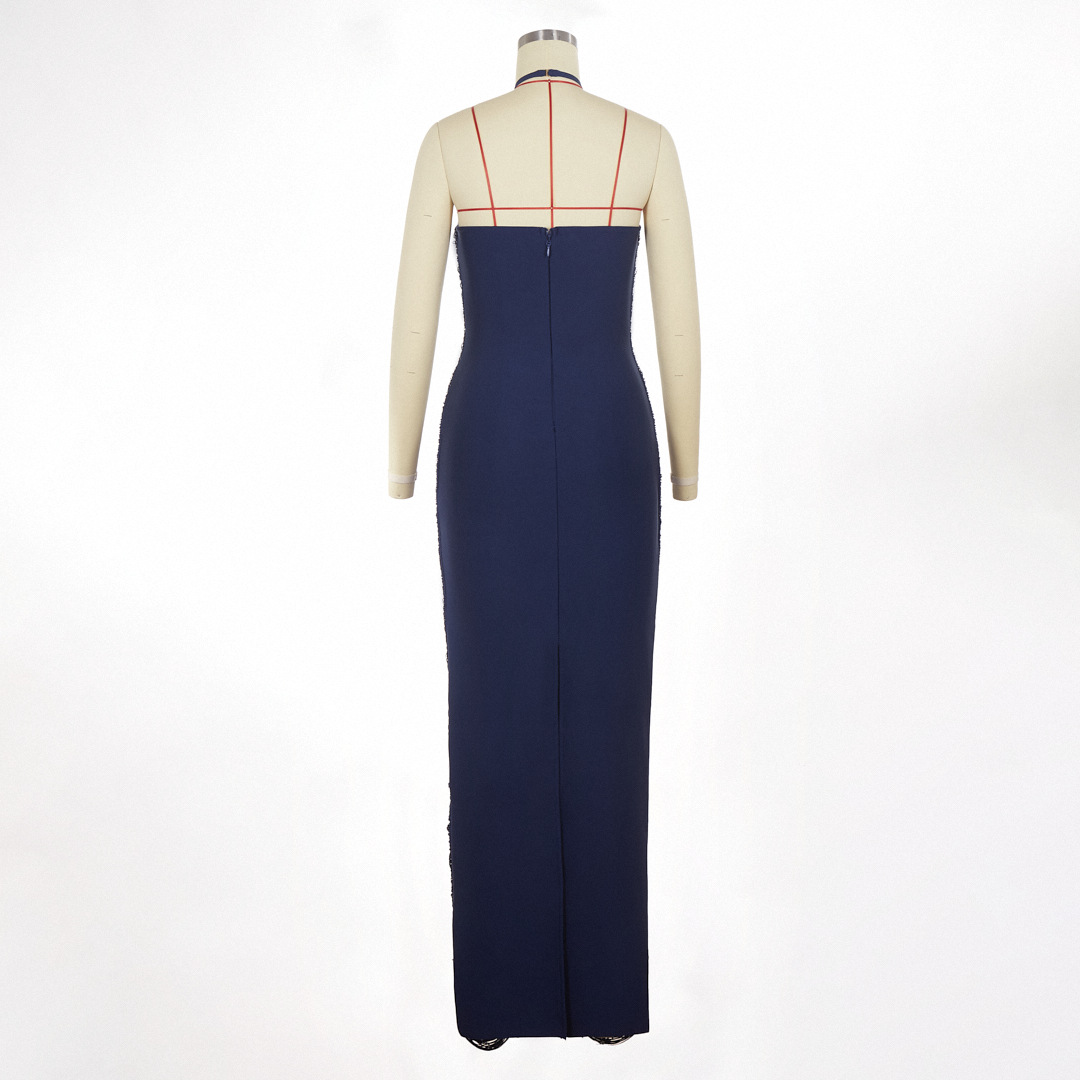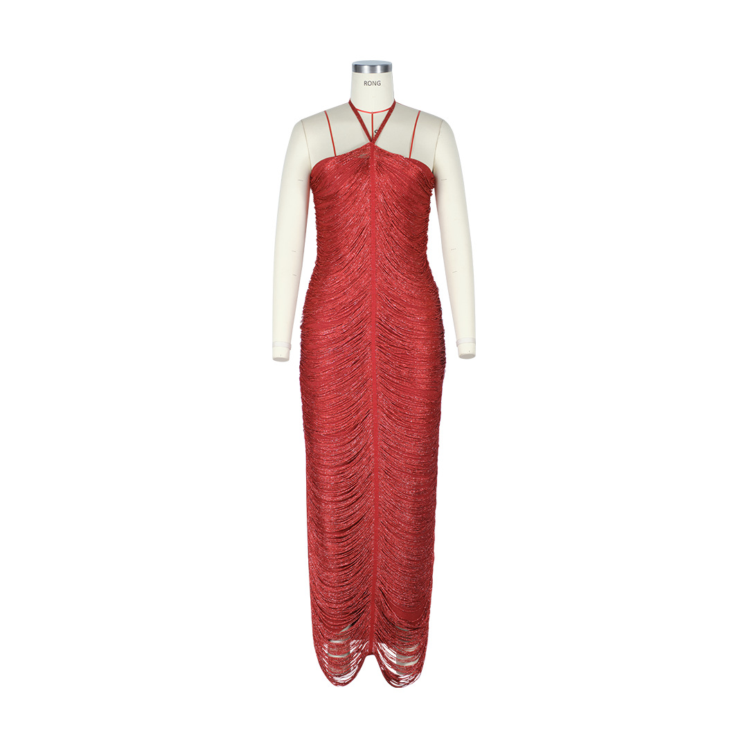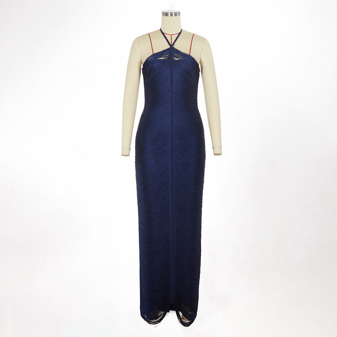 유럽과 미국의 민소매 목 술 긴 원피스 여성 여름 슬림 핏 저녁 원피스 웨딩 연회 키가 큰 슬림 핏 원피스 파티 국경스토어 가기