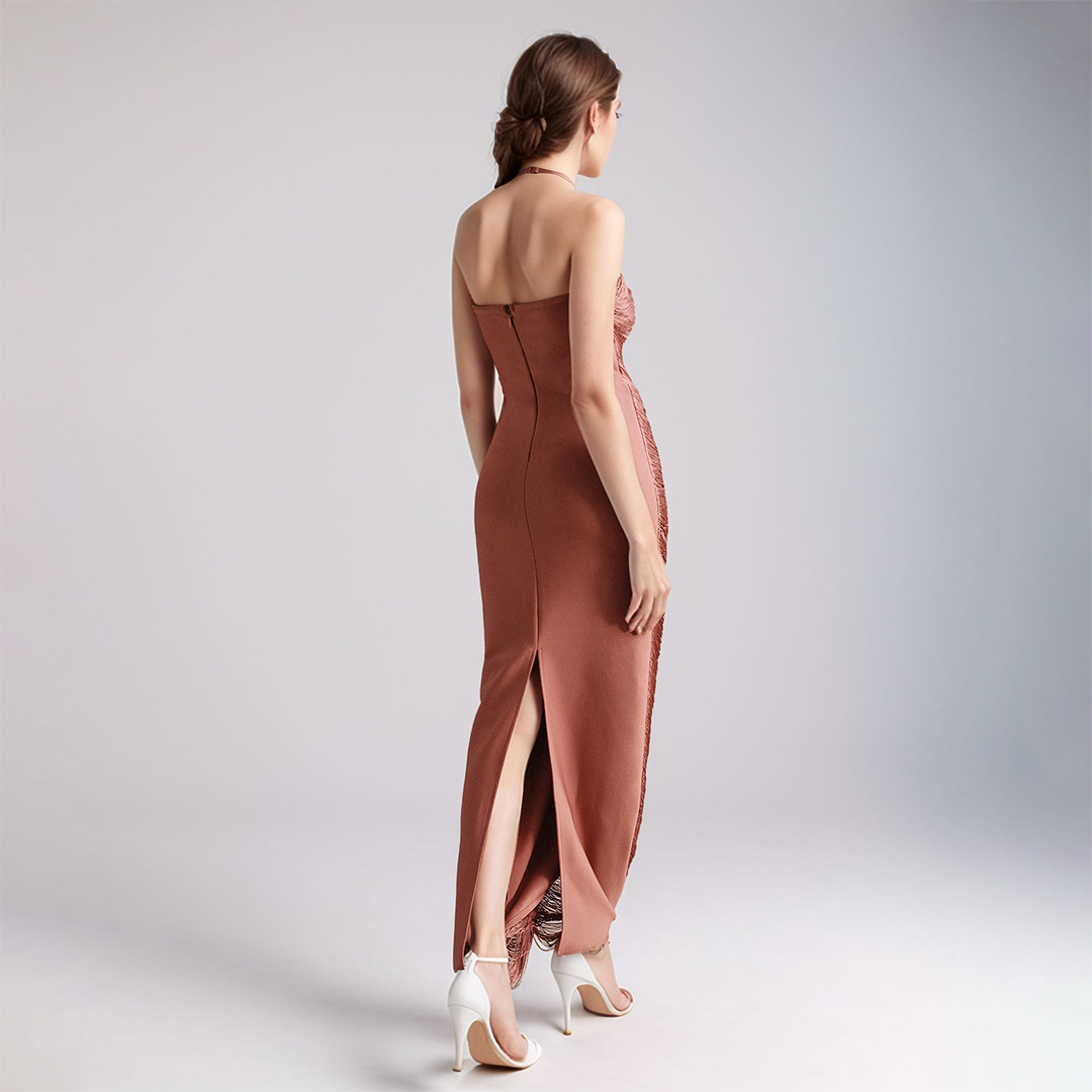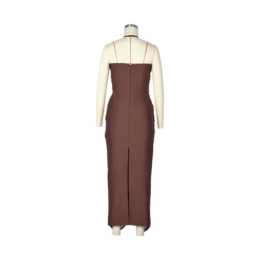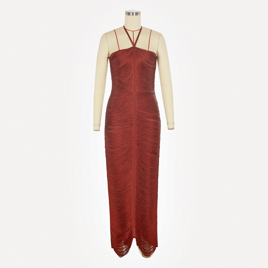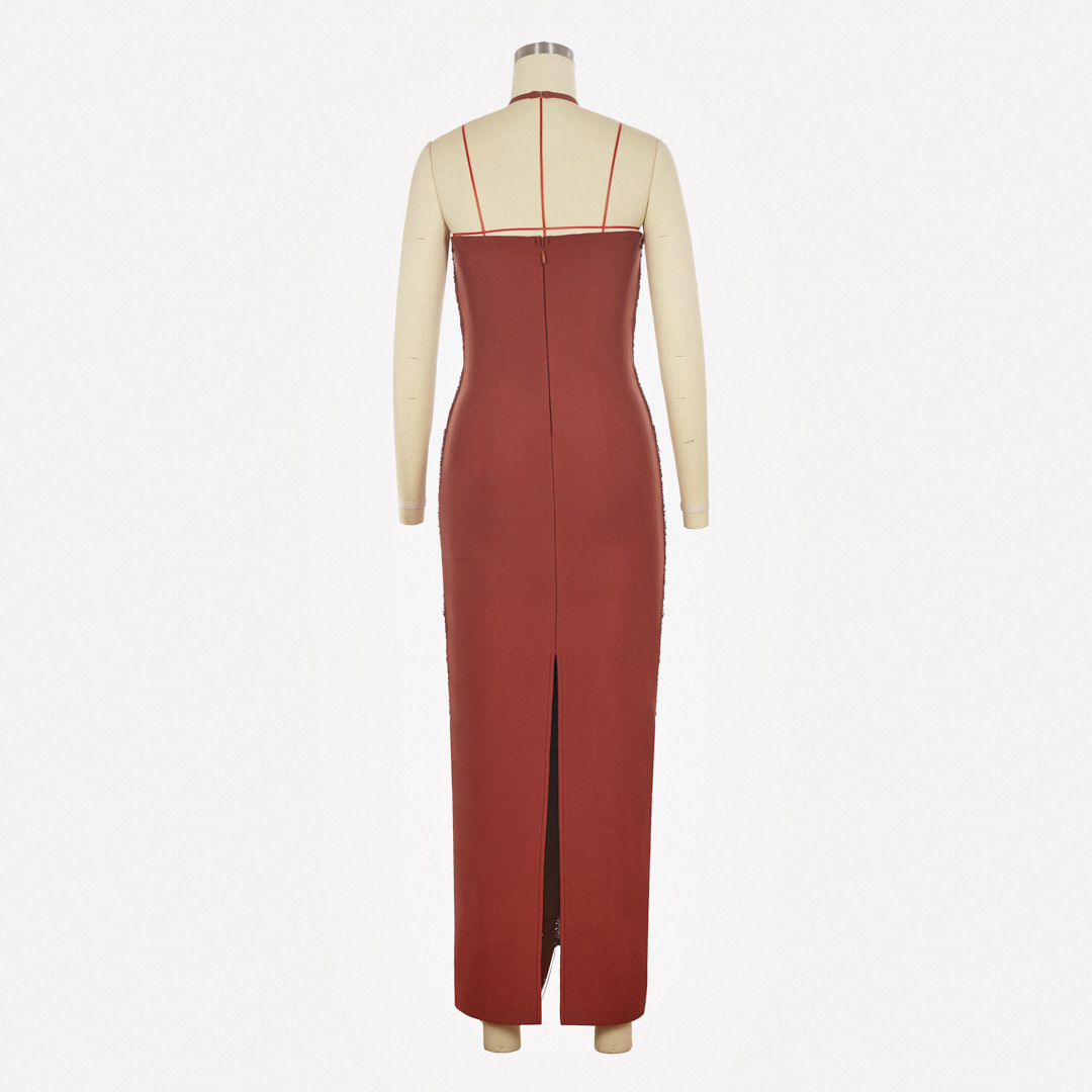 유럽과 미국의 민소매 목 술 긴 원피스 여성 여름 슬림 핏 저녁 원피스 웨딩 연회 키가 큰 슬림 핏 원피스 파티 국경스토어 가기
