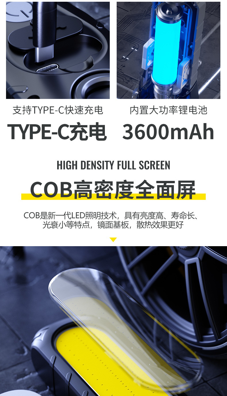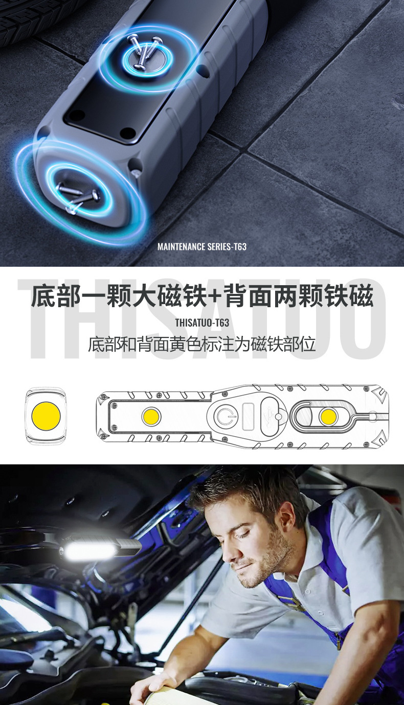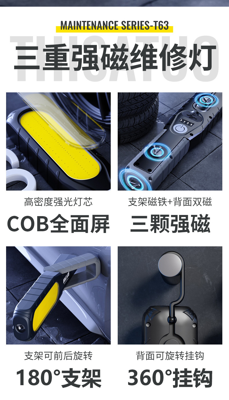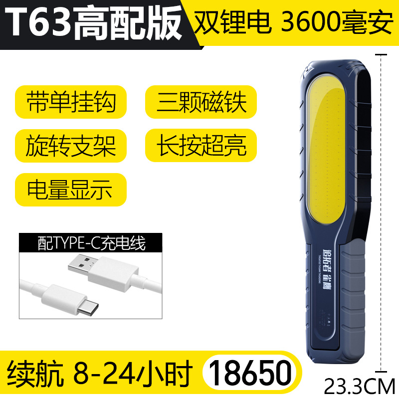 슈퍼 밝은 작업 빛 자동 수리 빛 LED 자기 강한 빛 수리 자동차 수리 가벼운 손전등 충전