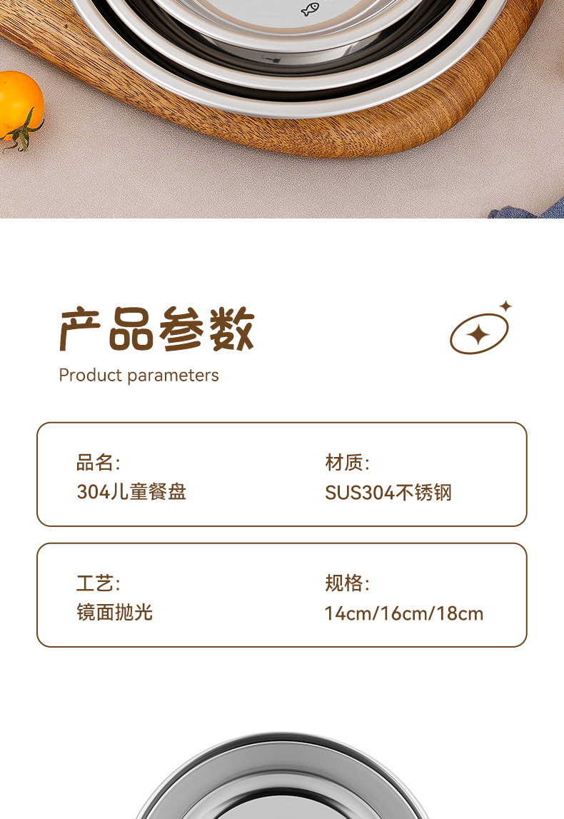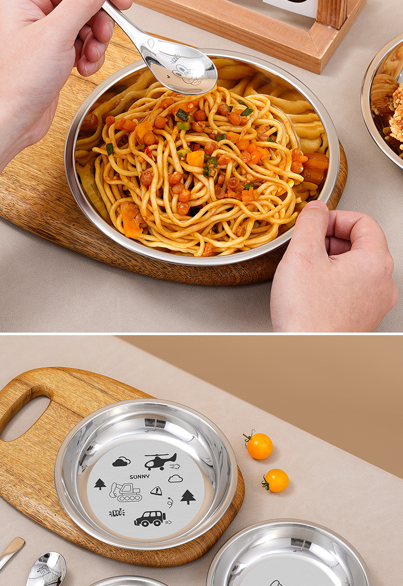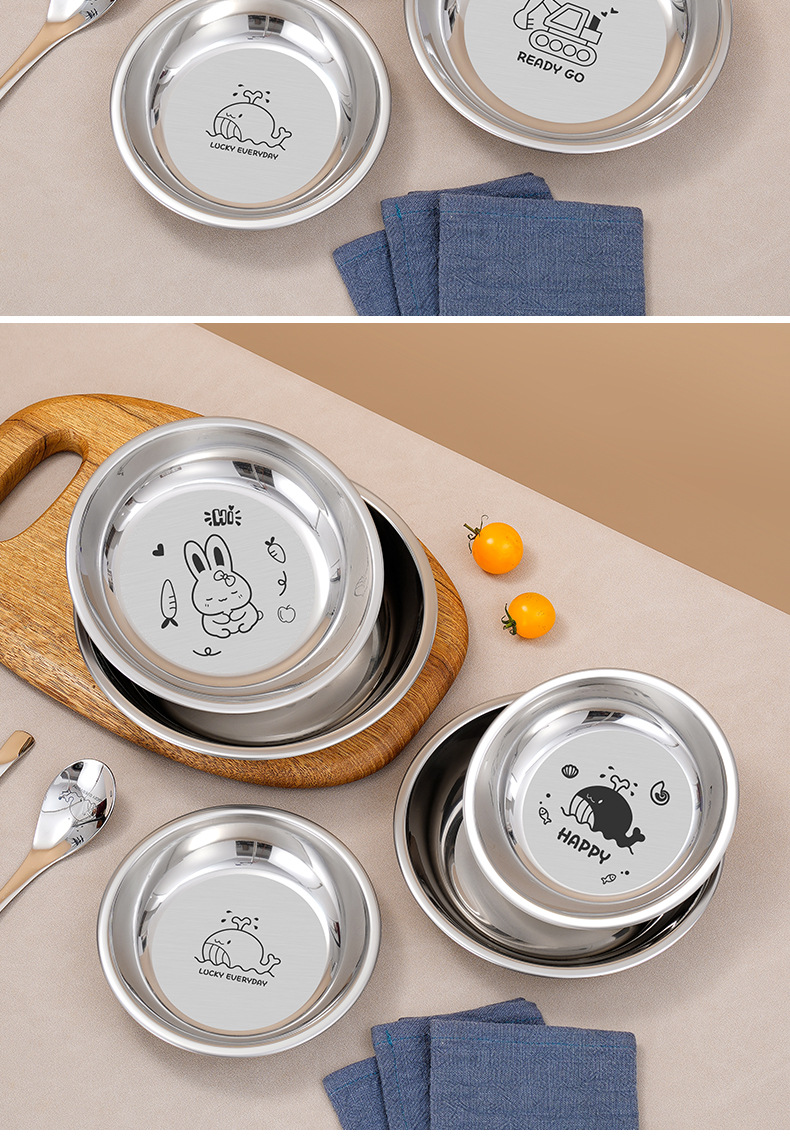 304 스테인레스 스틸 플레이트 어린이 베이비 디너 플레이트 식품 등급 식기 신탁 유치원 다이닝 플레이트 디스크 과일 플레이트