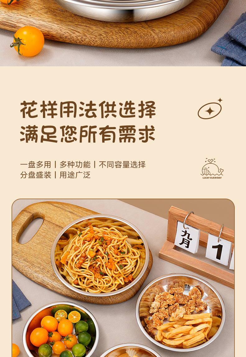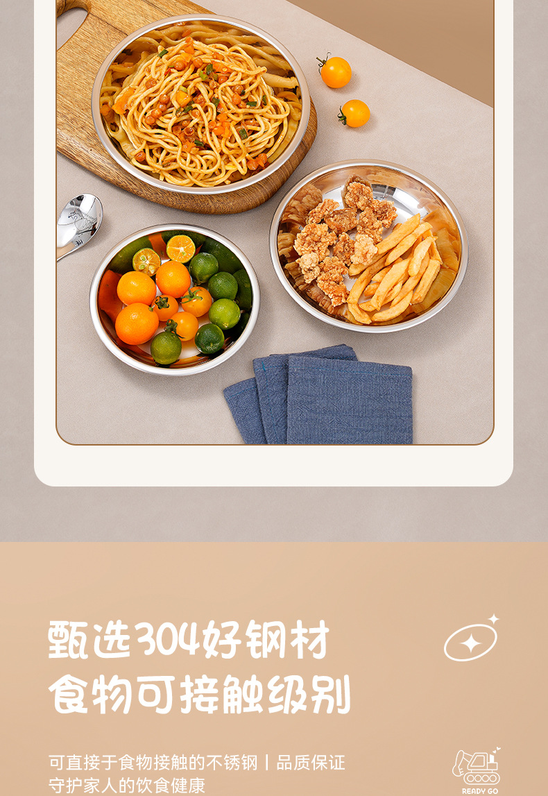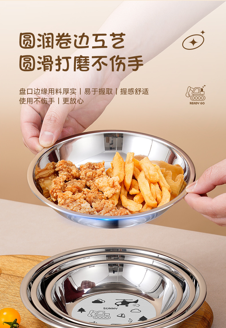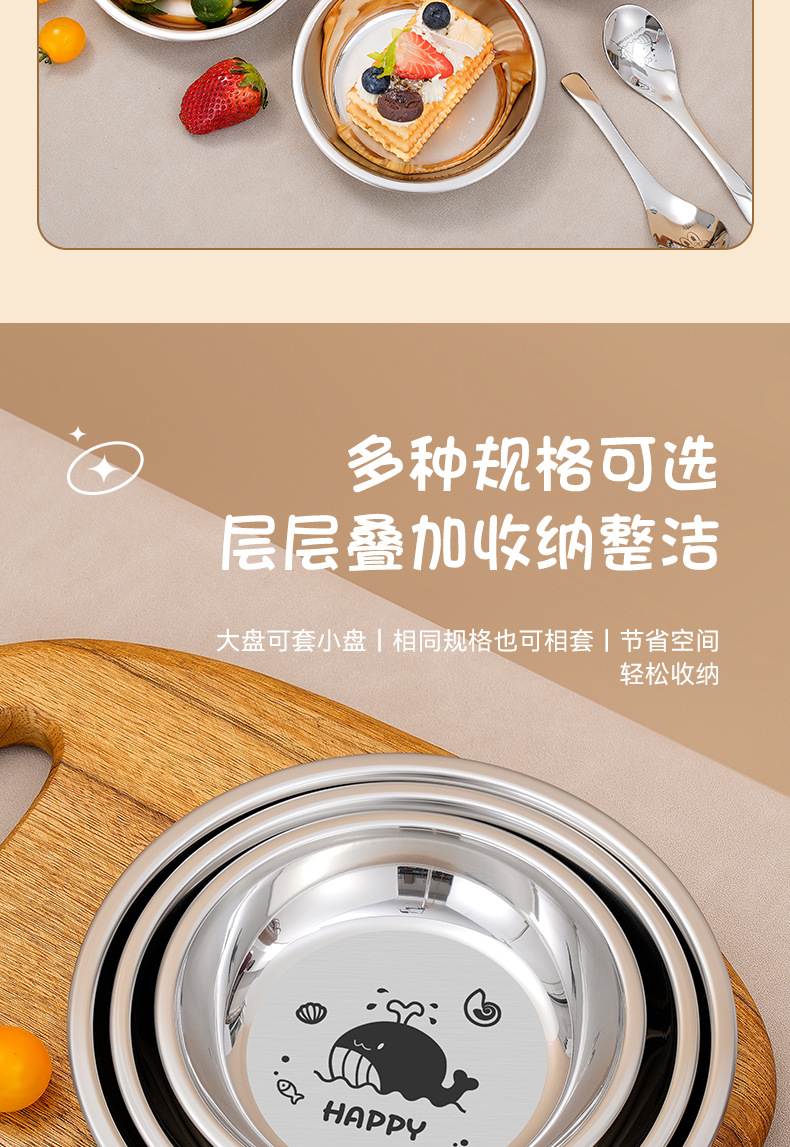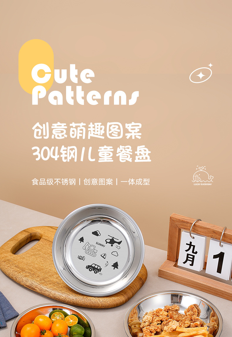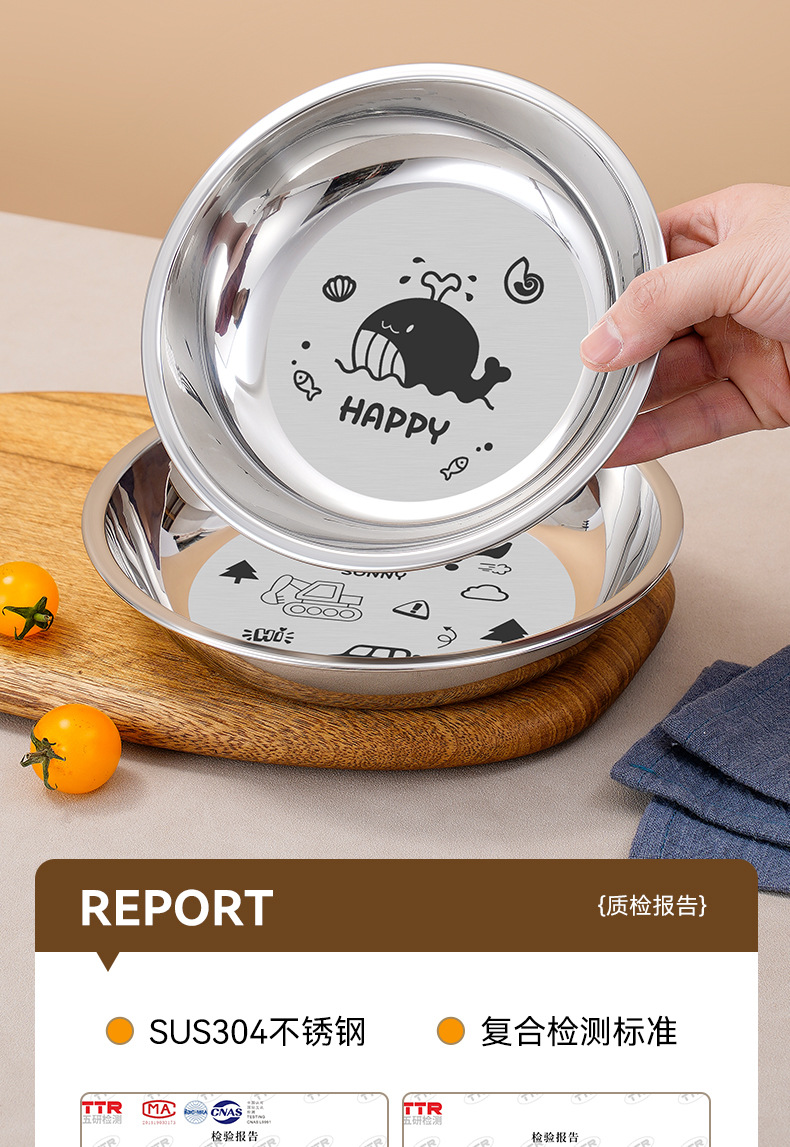 304 스테인레스 스틸 플레이트 어린이 베이비 디너 플레이트 식품 등급 식기 신탁 유치원 다이닝 플레이트 디스크 과일 플레이트스토어 가기