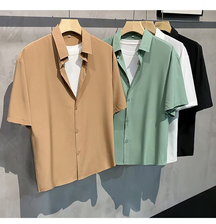 금욕 스타일 아이스 실크 INS 우아한 복고풍 비 다림질 그린 셔츠 남자의 반팔 더피 잘 생긴 한국어 버전 루즈 셔츠스토어 가기