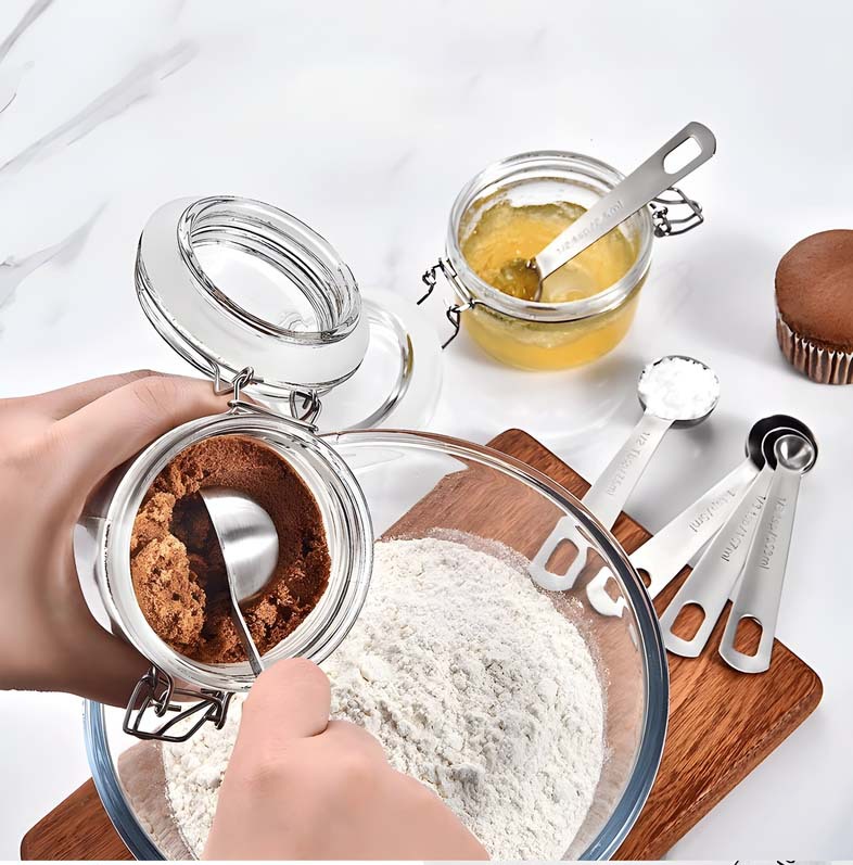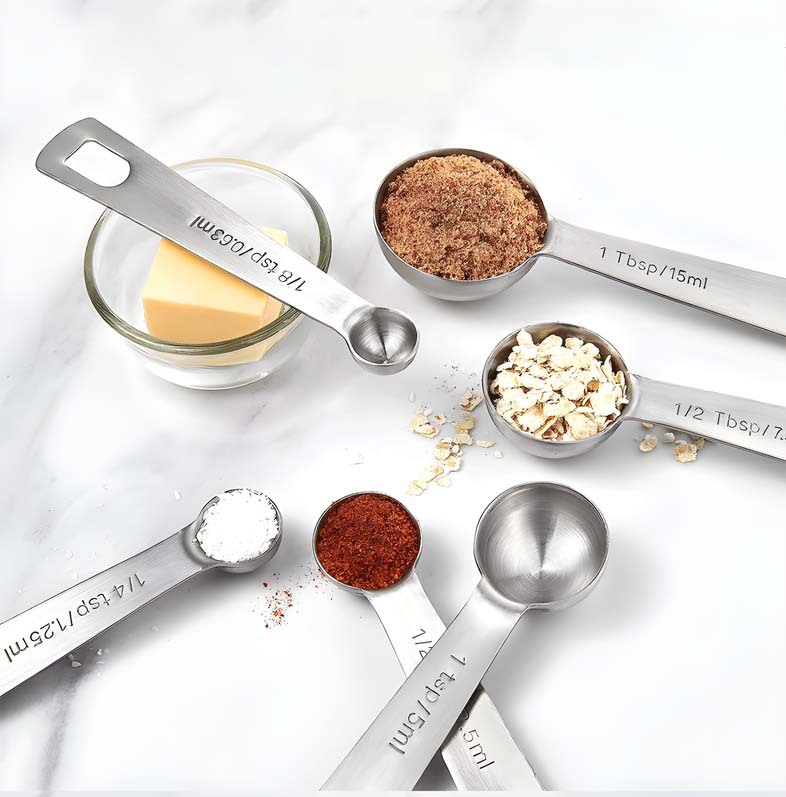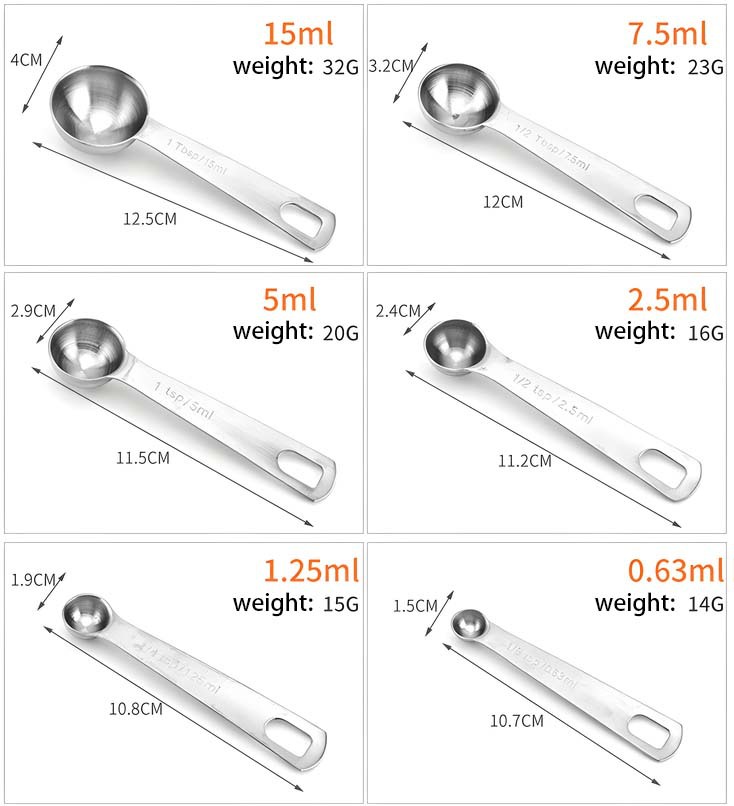 6피스 스테인레스 스틸 측정 숟가락 세트 일체형 스푼 미니 계란 비터 스푼