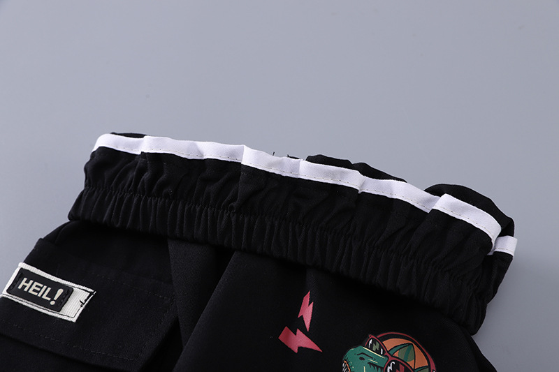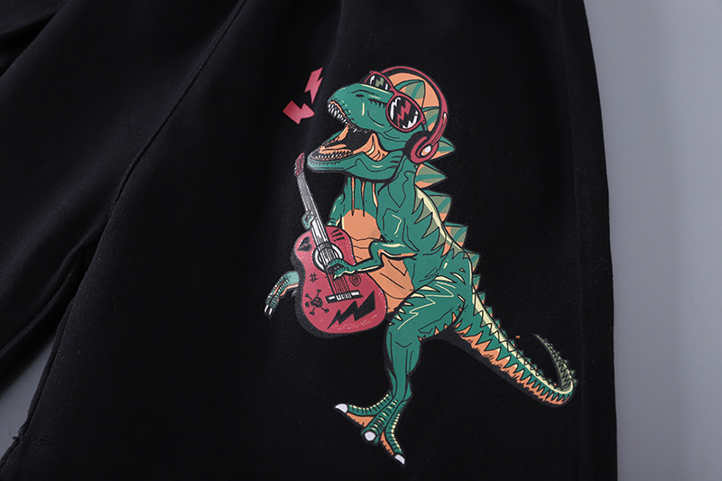 • 검은 공룡 크루 넥 셔츠와 워시 코튼 팬츠 반팔 슈트