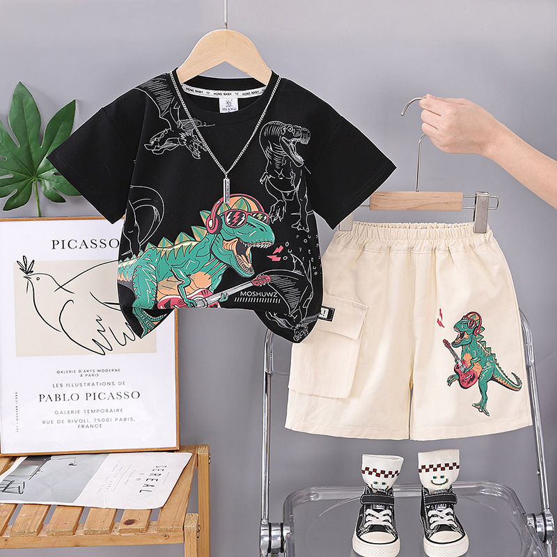 소년 여름 정장 2025 새로운 어린이 만화 반팔 투피스 세트 잘 생긴 아기 여름 옷 도매 배송스토어 가기