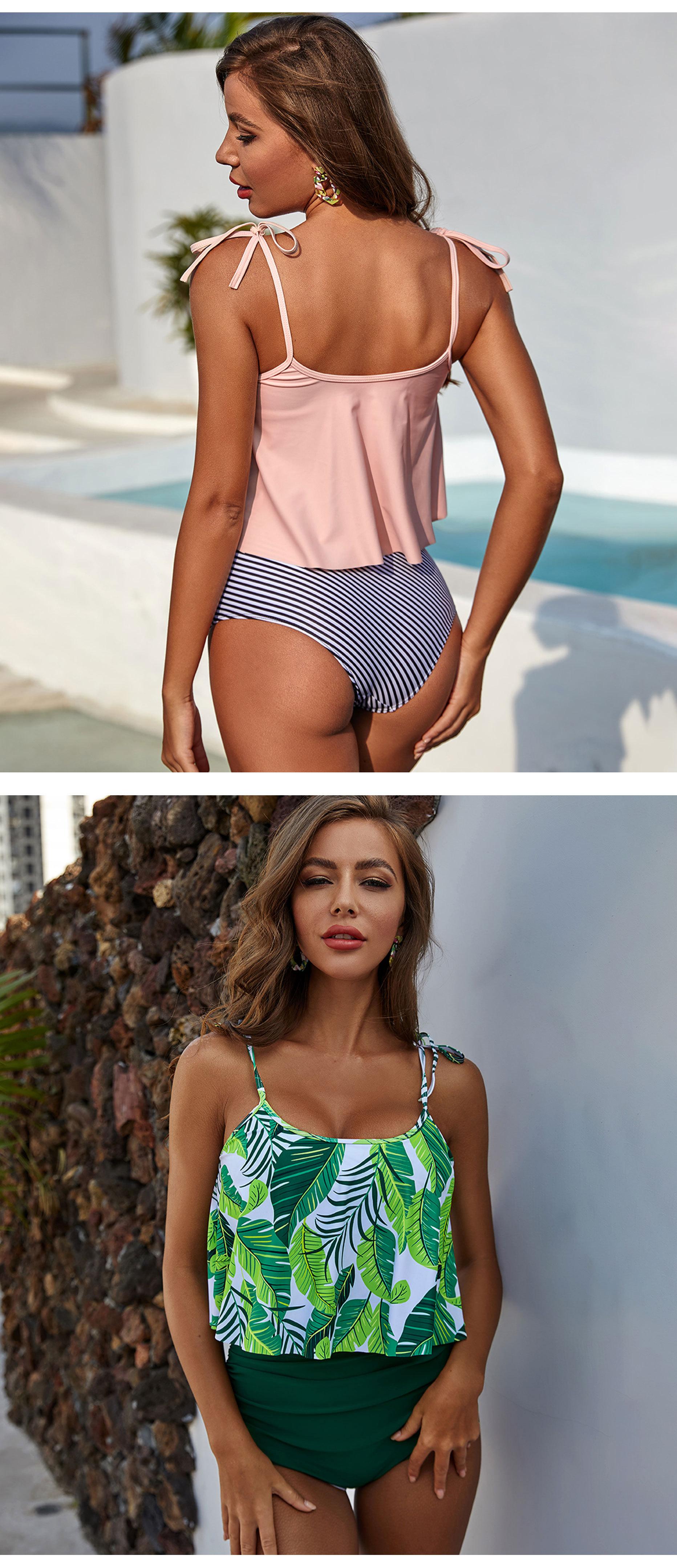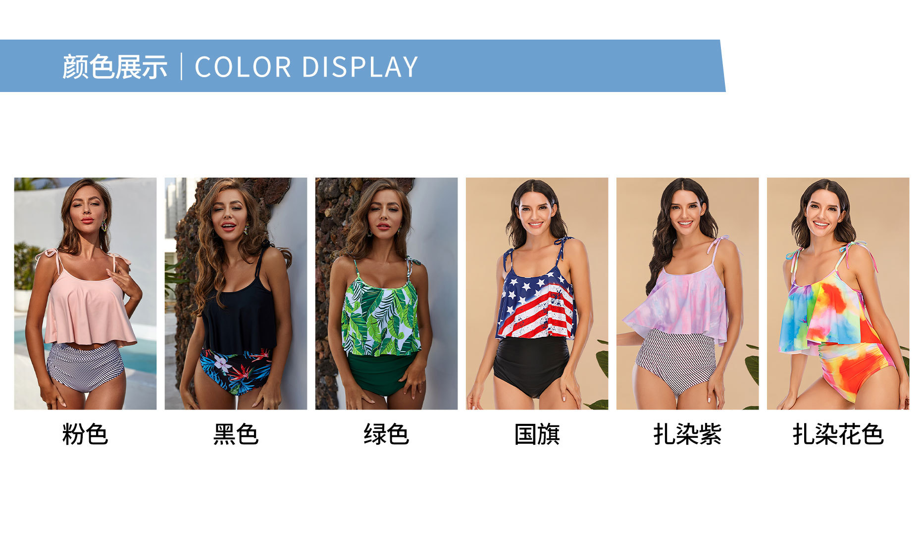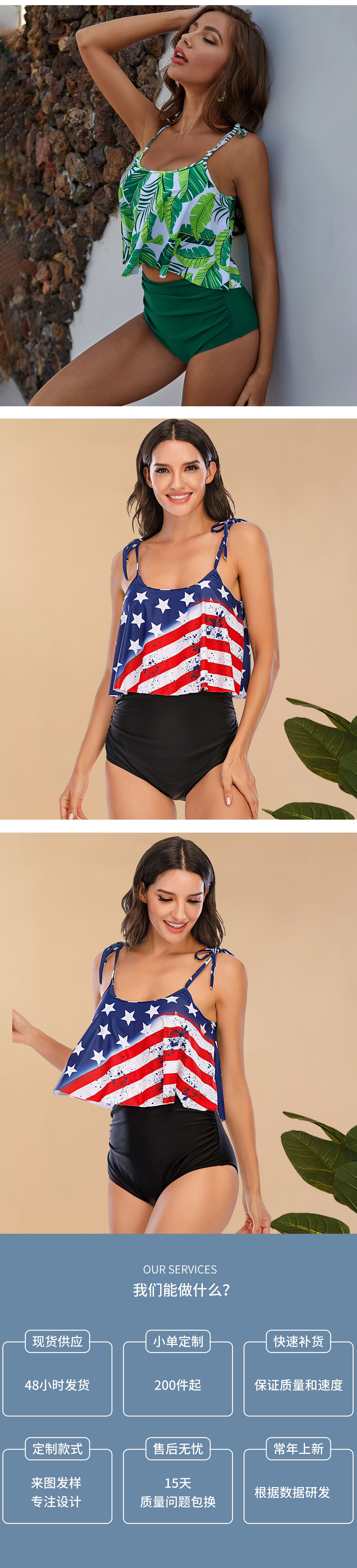 국경 간 대외 무역 2025 새로운 러플 수영복 유럽과 미국 여성의 배꼽 높은 허리 수영복 넥타이 염색 비키니 조끼스토어 가기