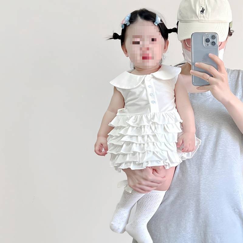 여자 아동복 여름 새 원피스 민소매 조끼 대학 스타일 옷깃 세련된 공주 주름 치마 패션스토어 가기