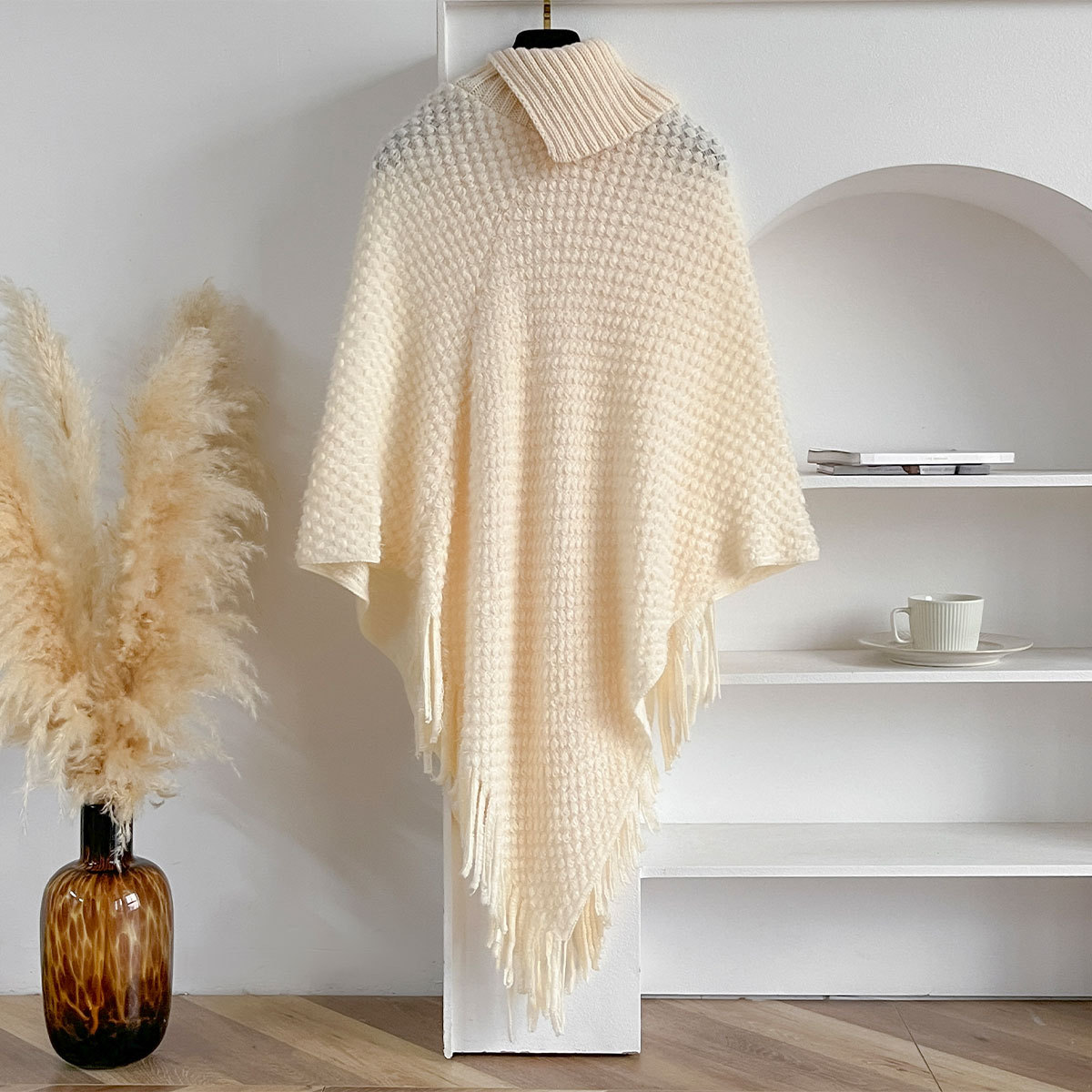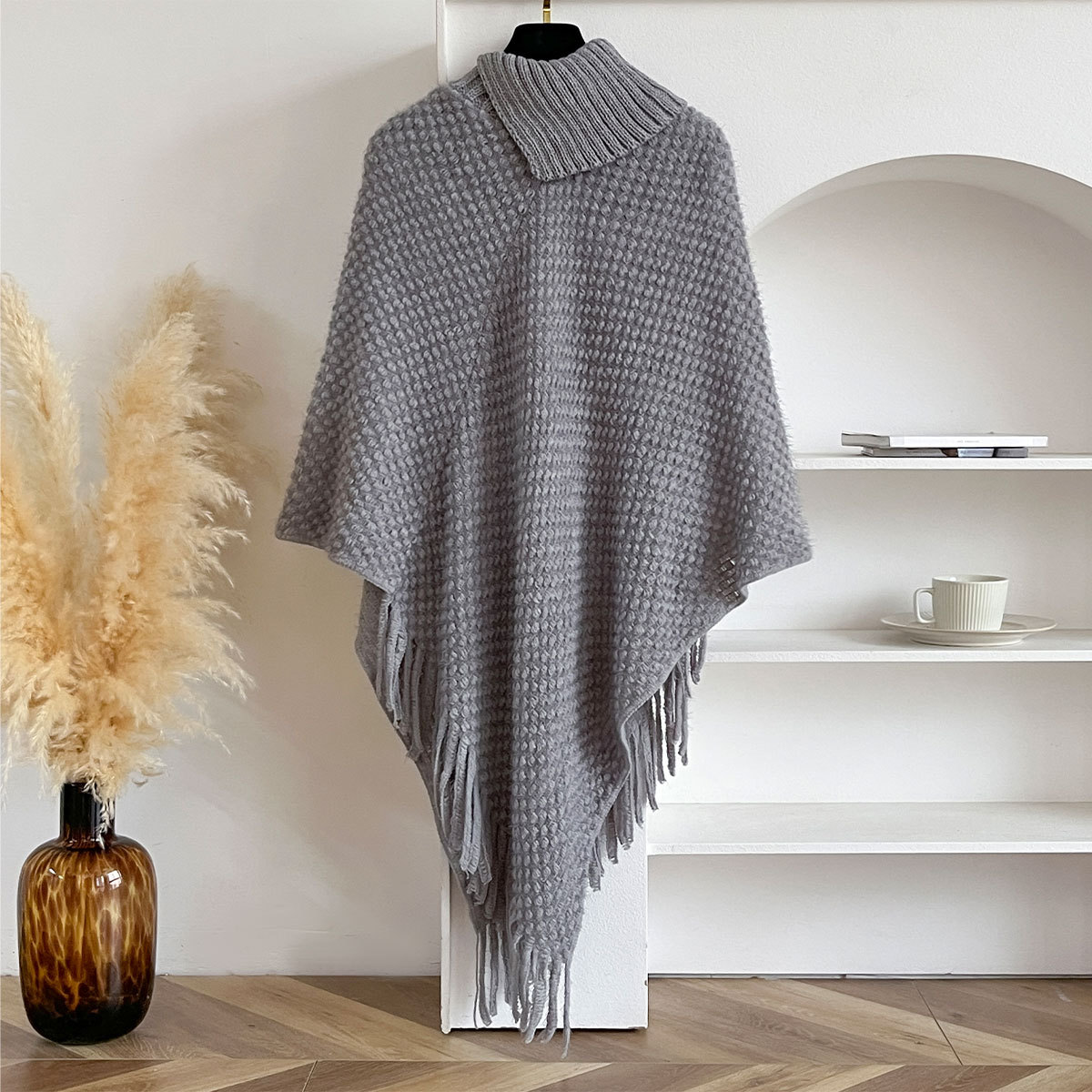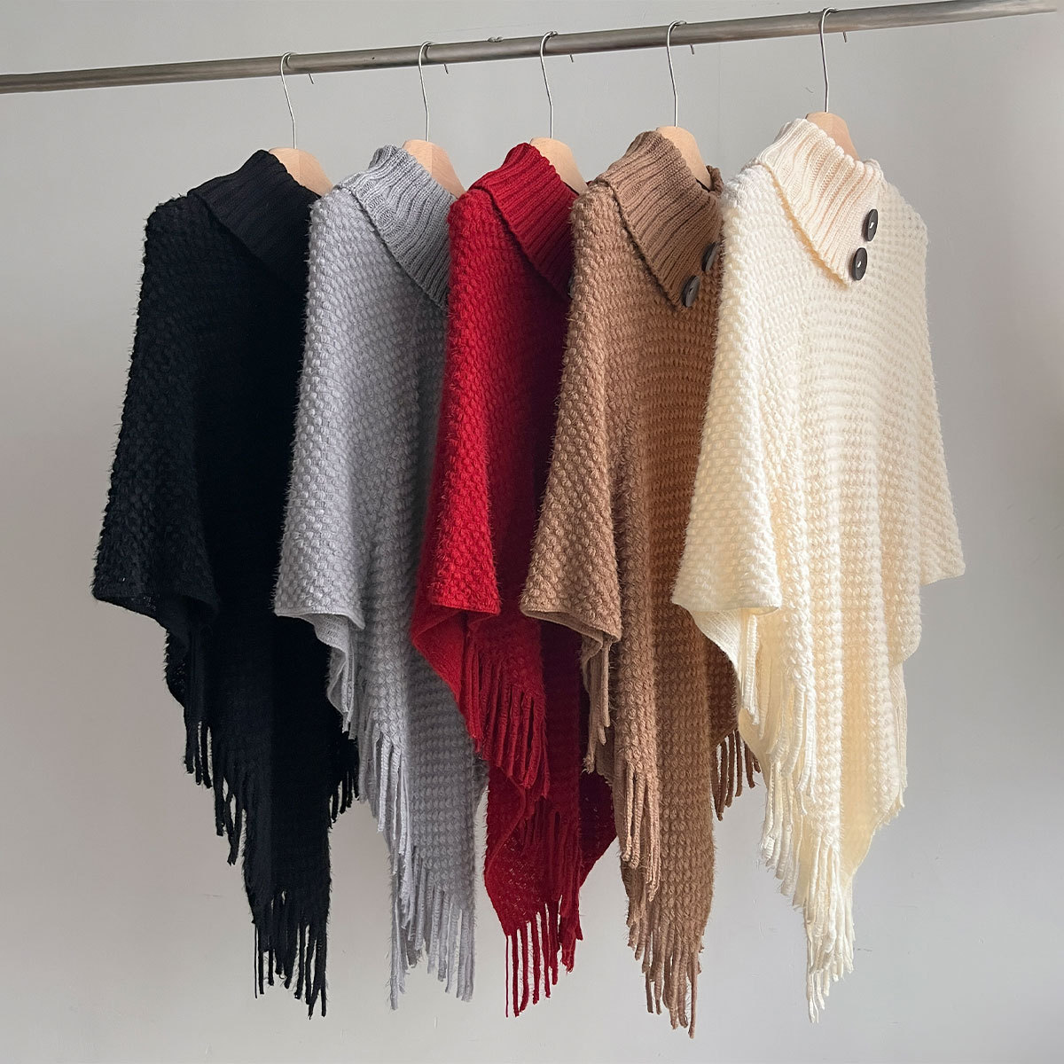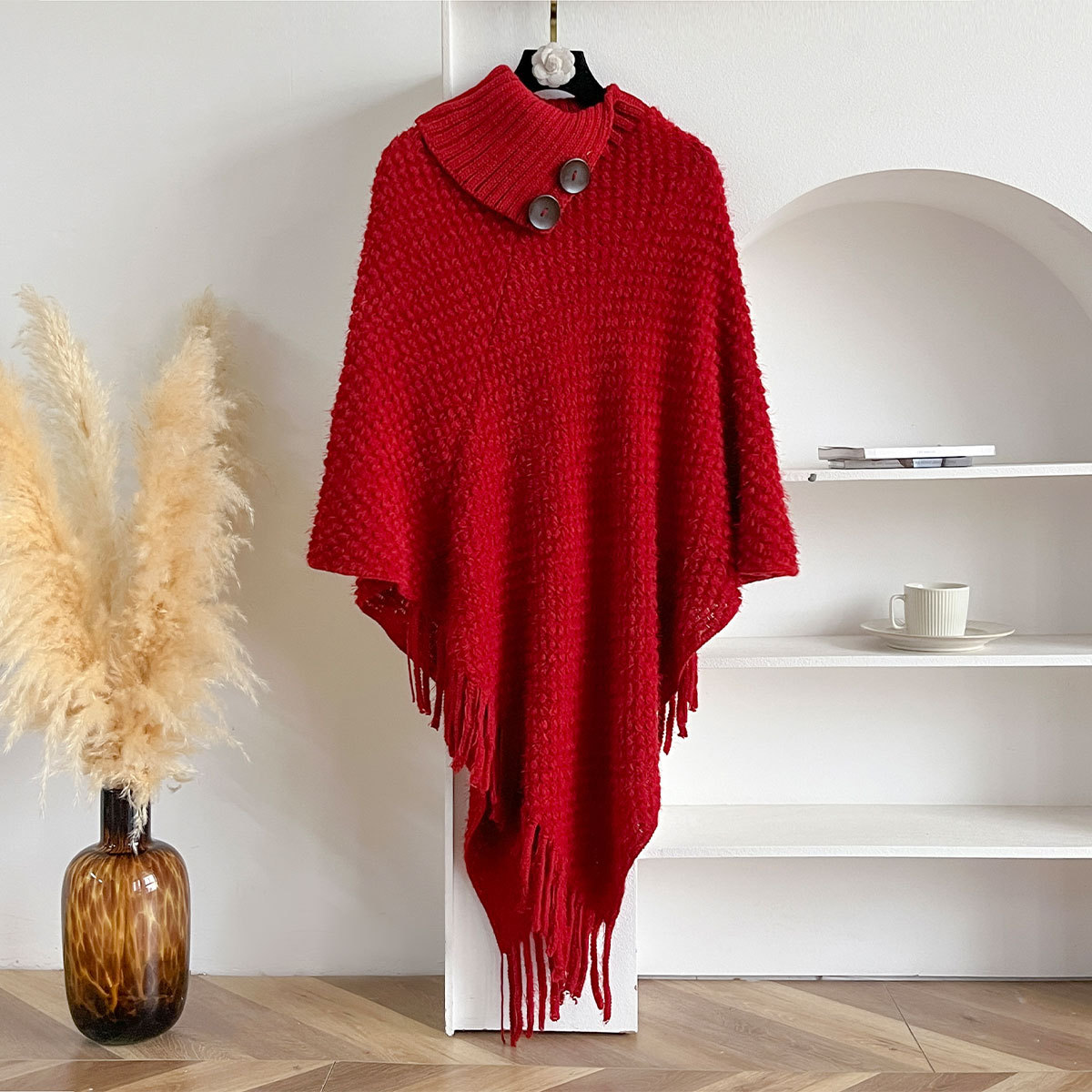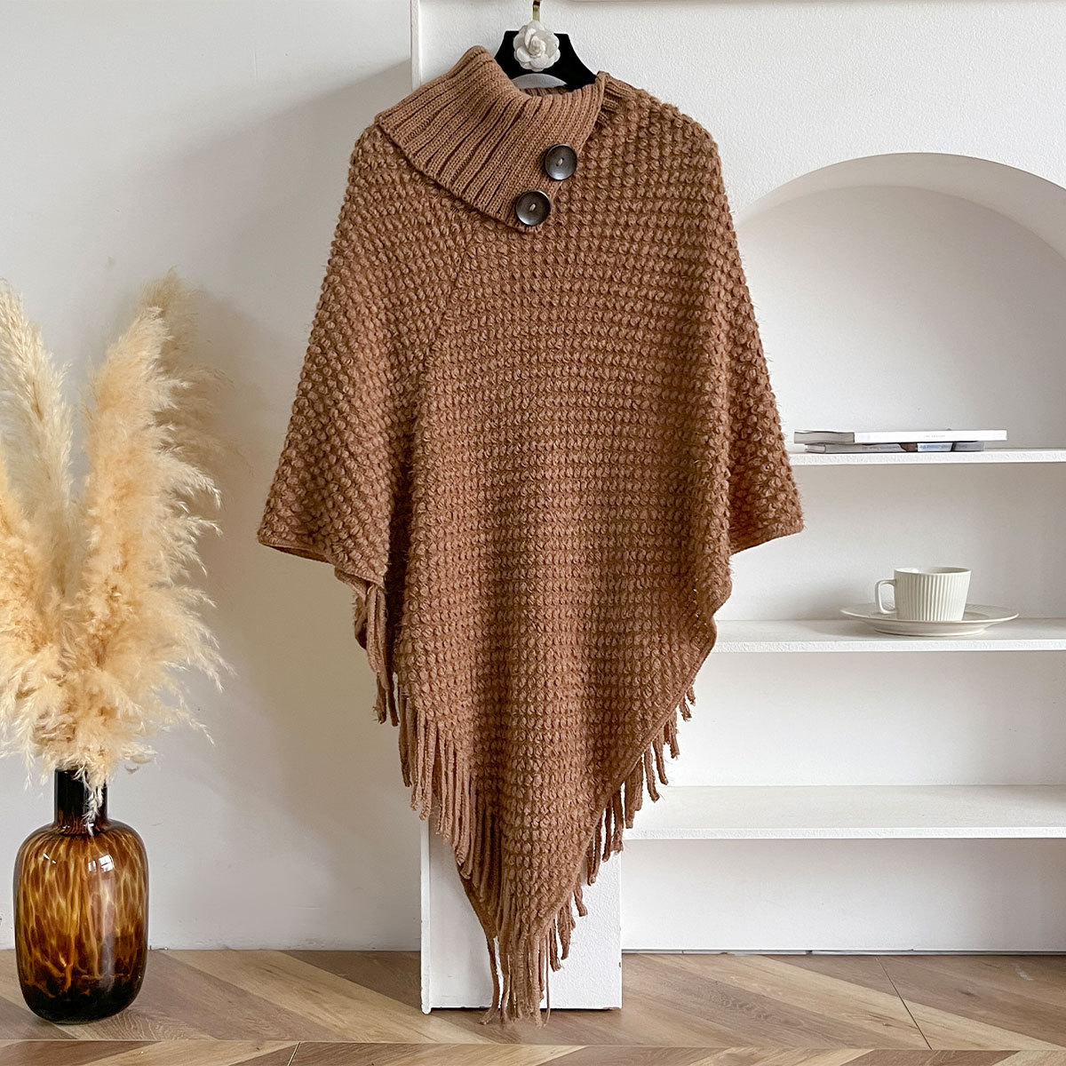 가을, 겨울 새로운 하이 넥 버튼 술 여성 망토 목도리 겨울 따뜻한 망토 유럽과 미국의 패션 스웨터스토어 가기