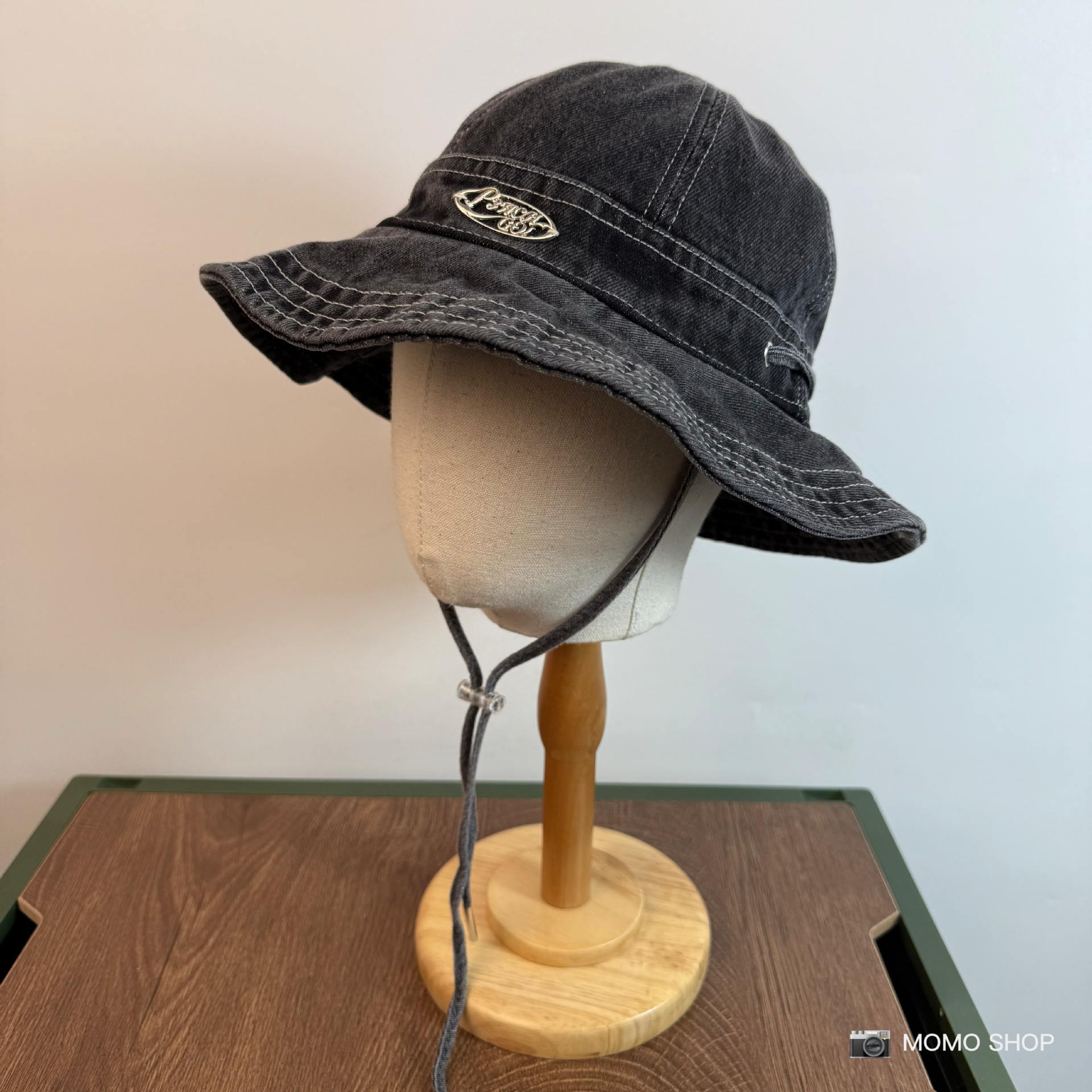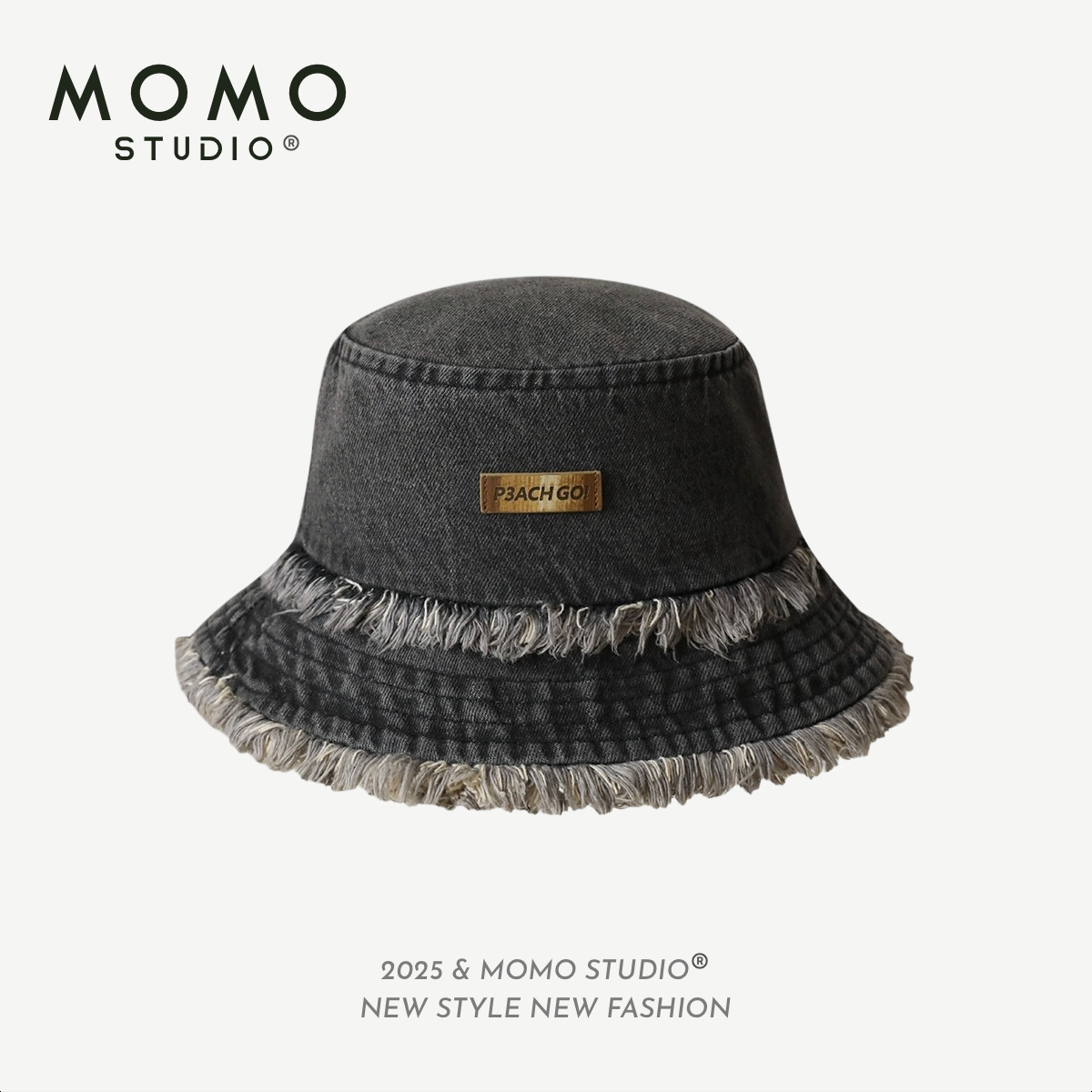 • 블랙 데님 (P3ACH GO! 가죽 라벨 로우 엣지 버킷햇)