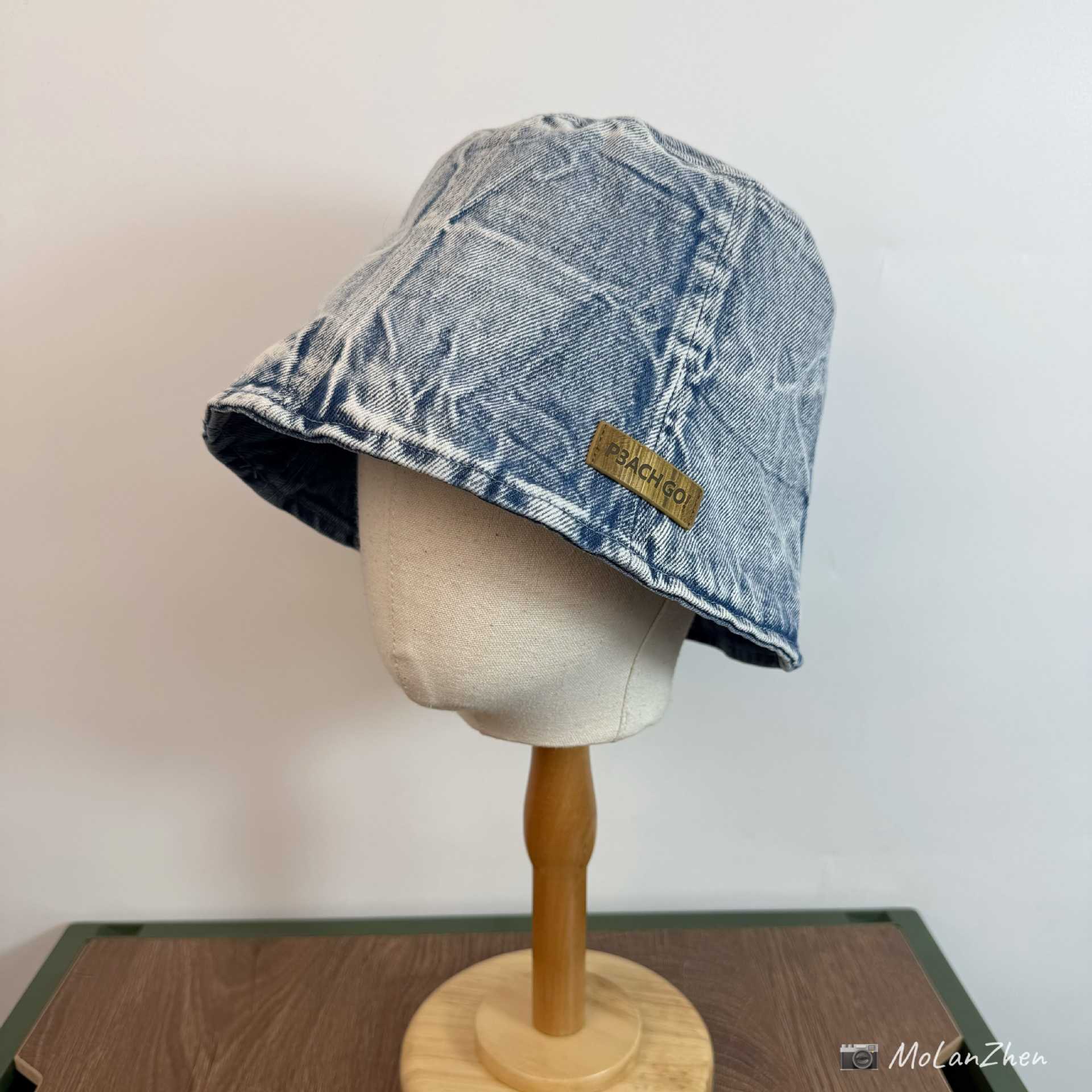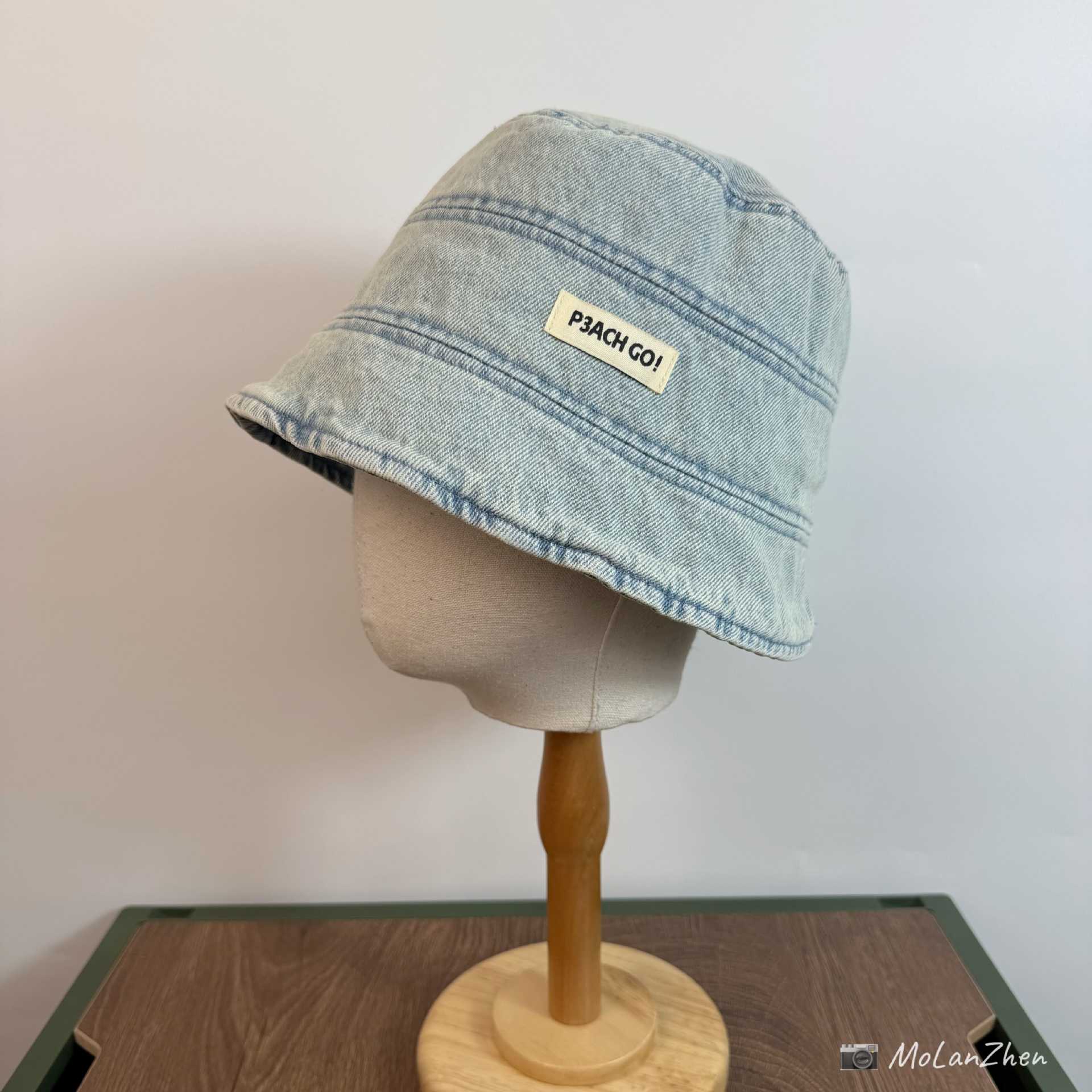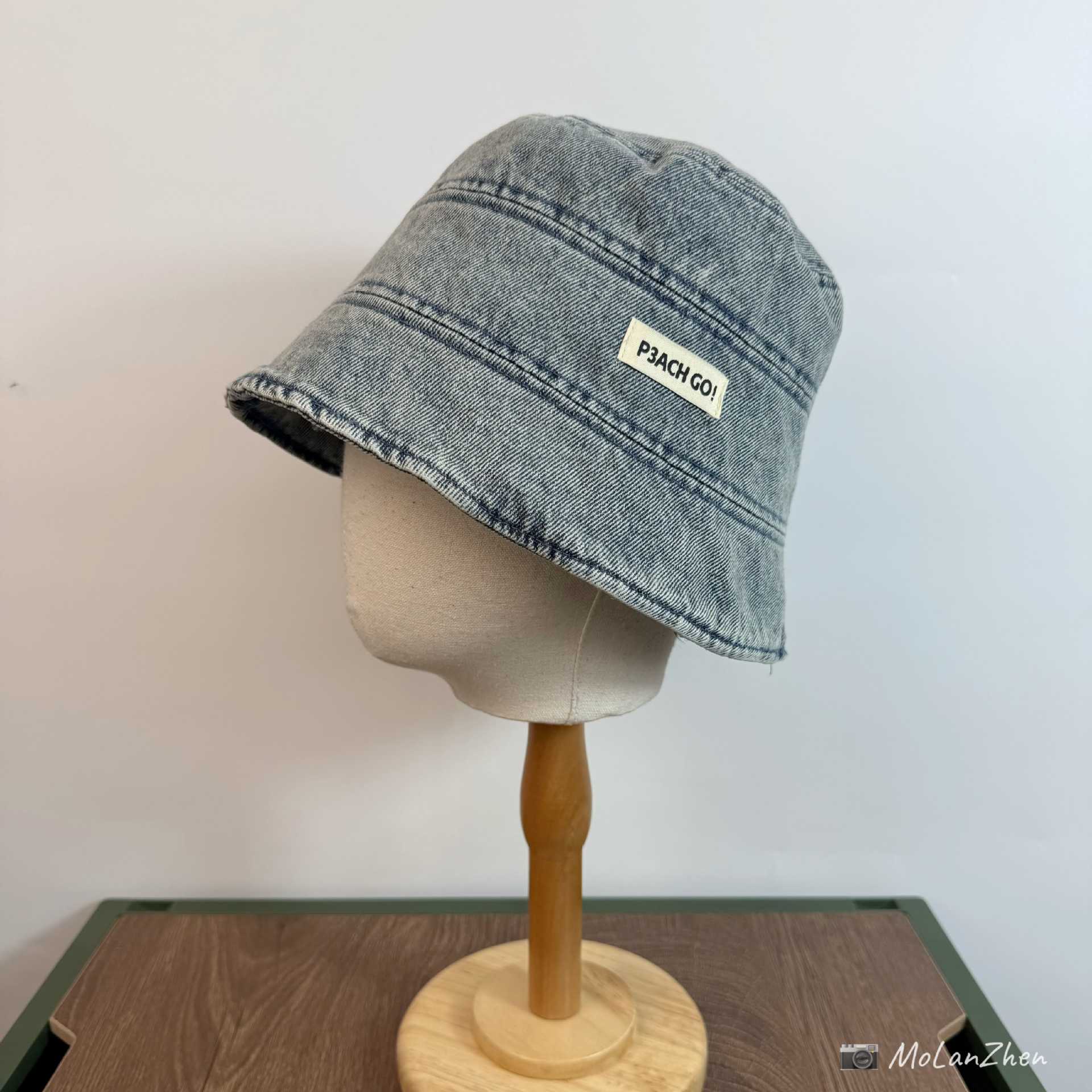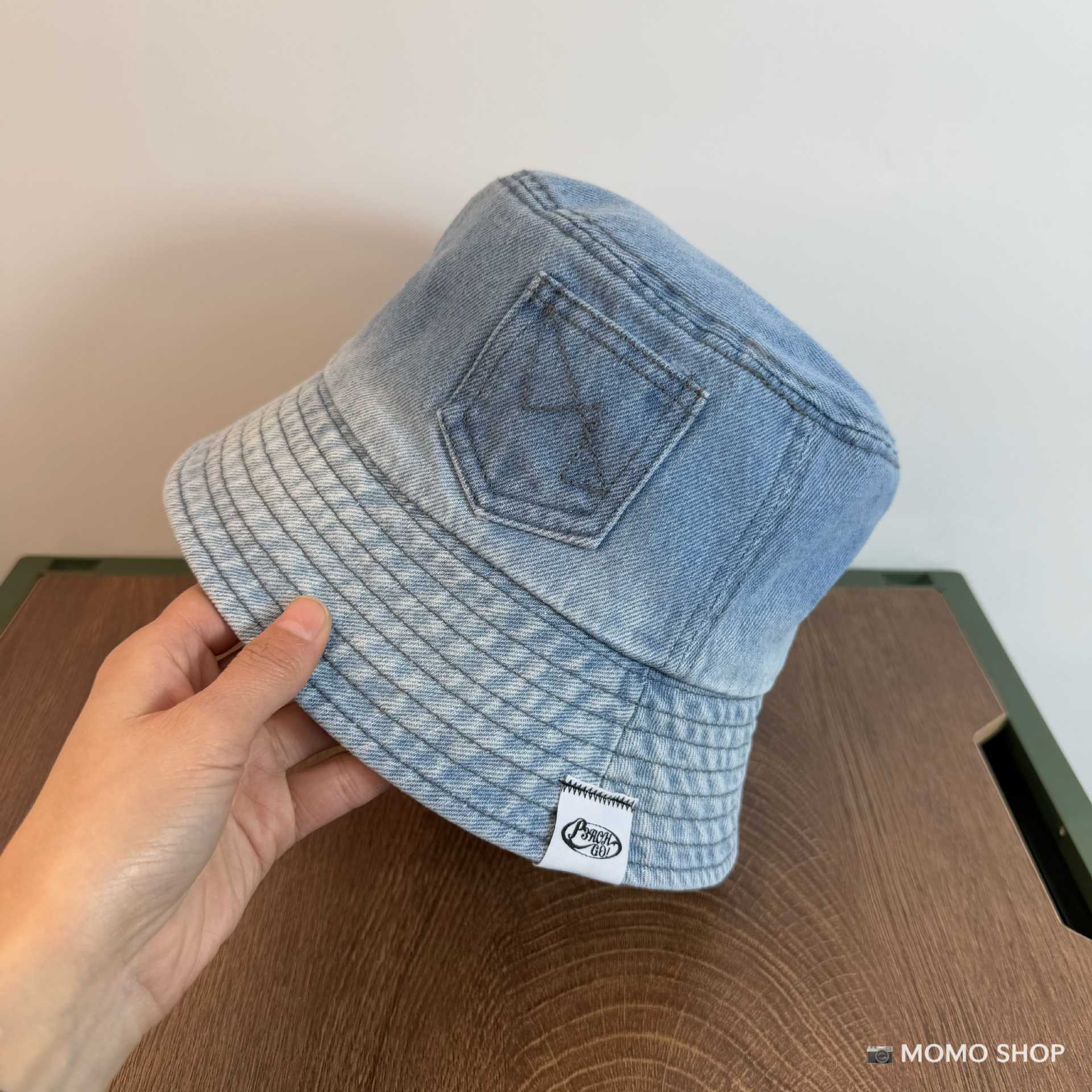 • 라이트 데님(P3ACH GO!앞면이 길고 뒷면이 짧은 천 라벨이 있는 어부 모자)