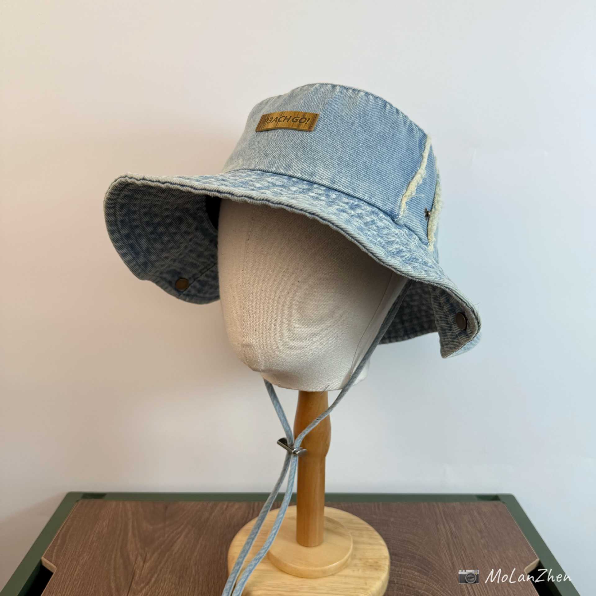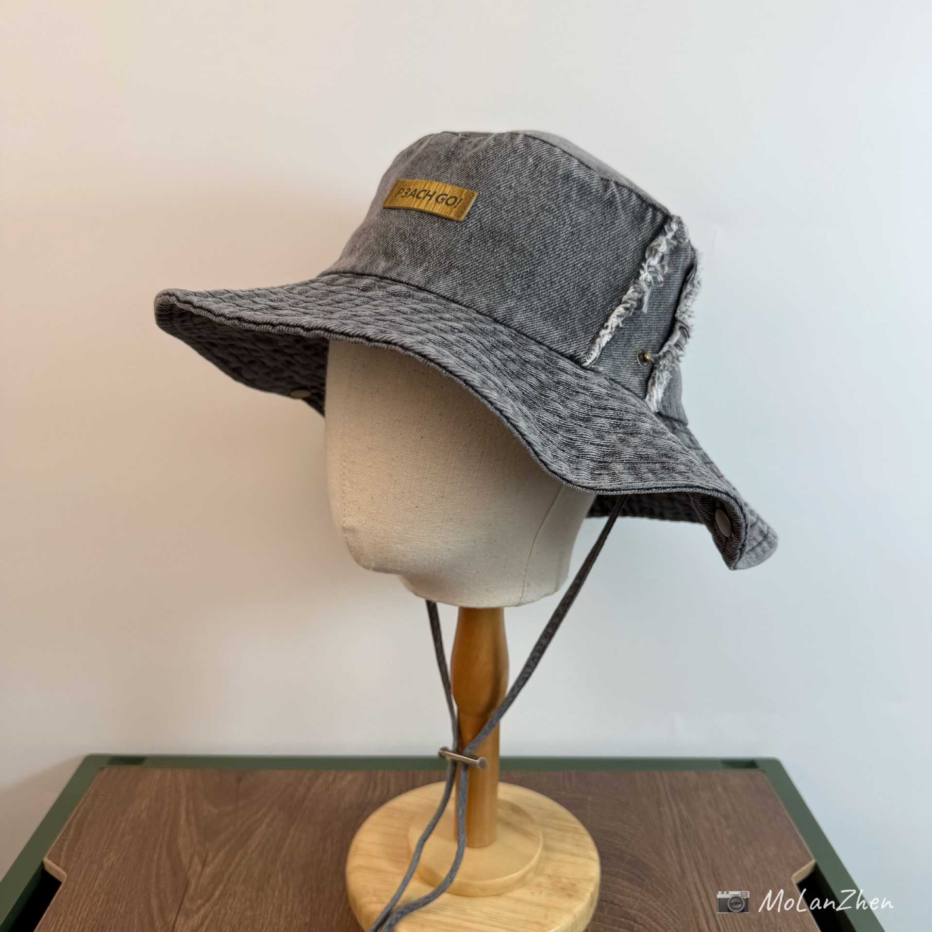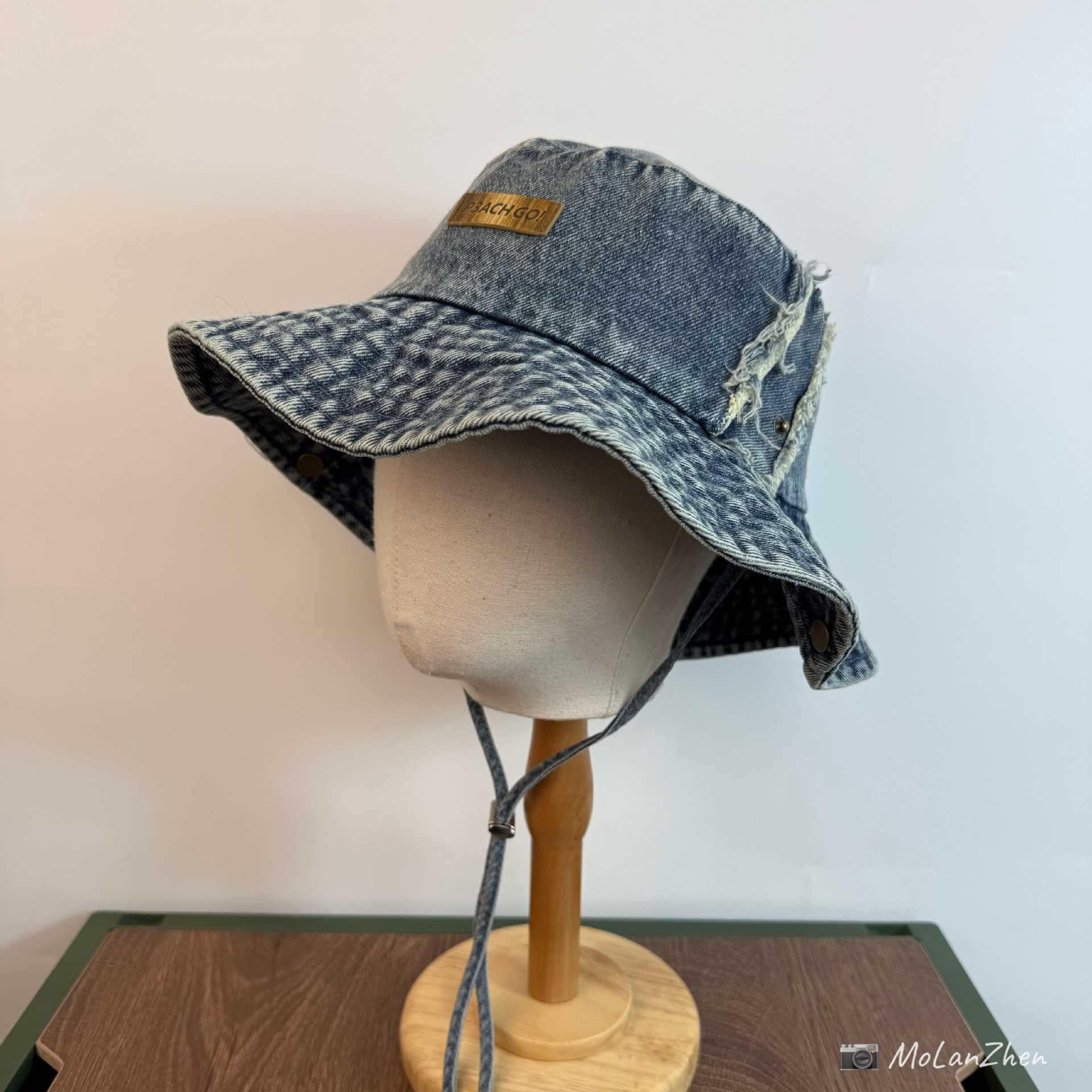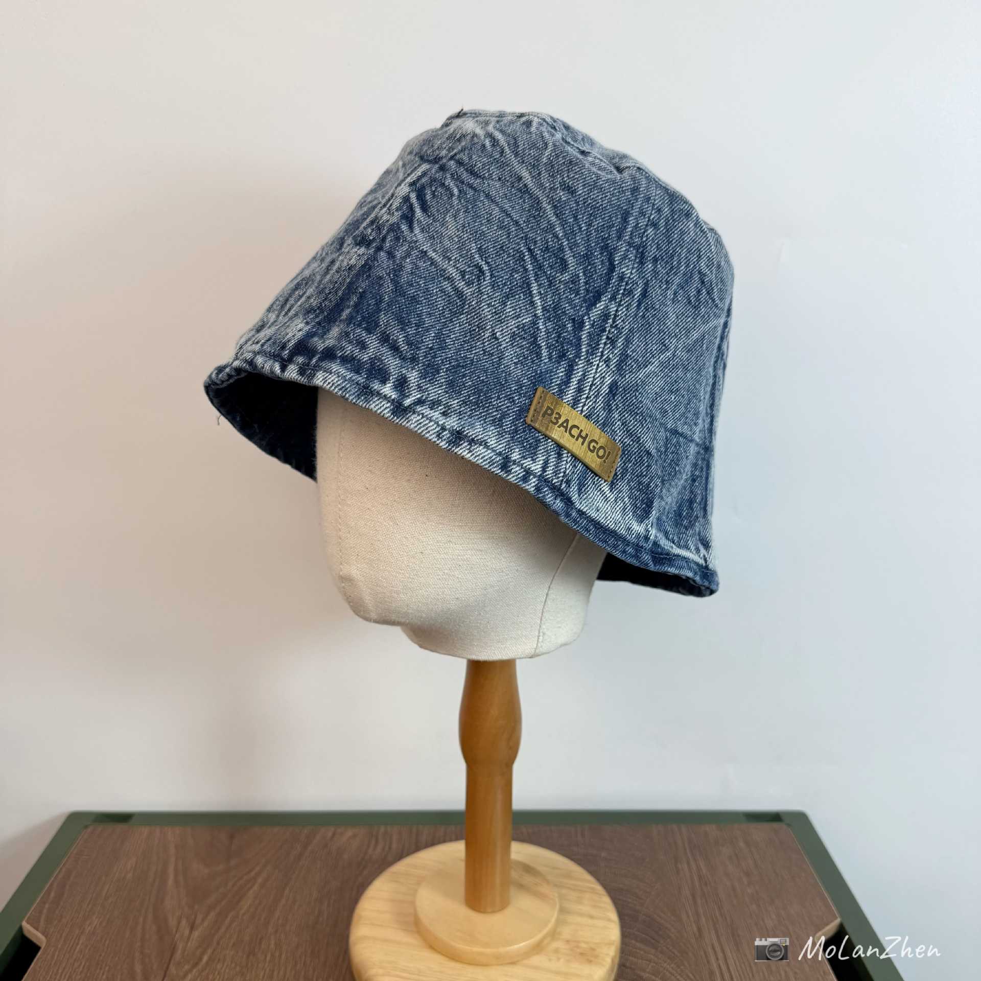 • 라이트 데님(P3ACH GO!앞면이 길고 뒷면이 짧은 천 라벨이 있는 어부 모자)