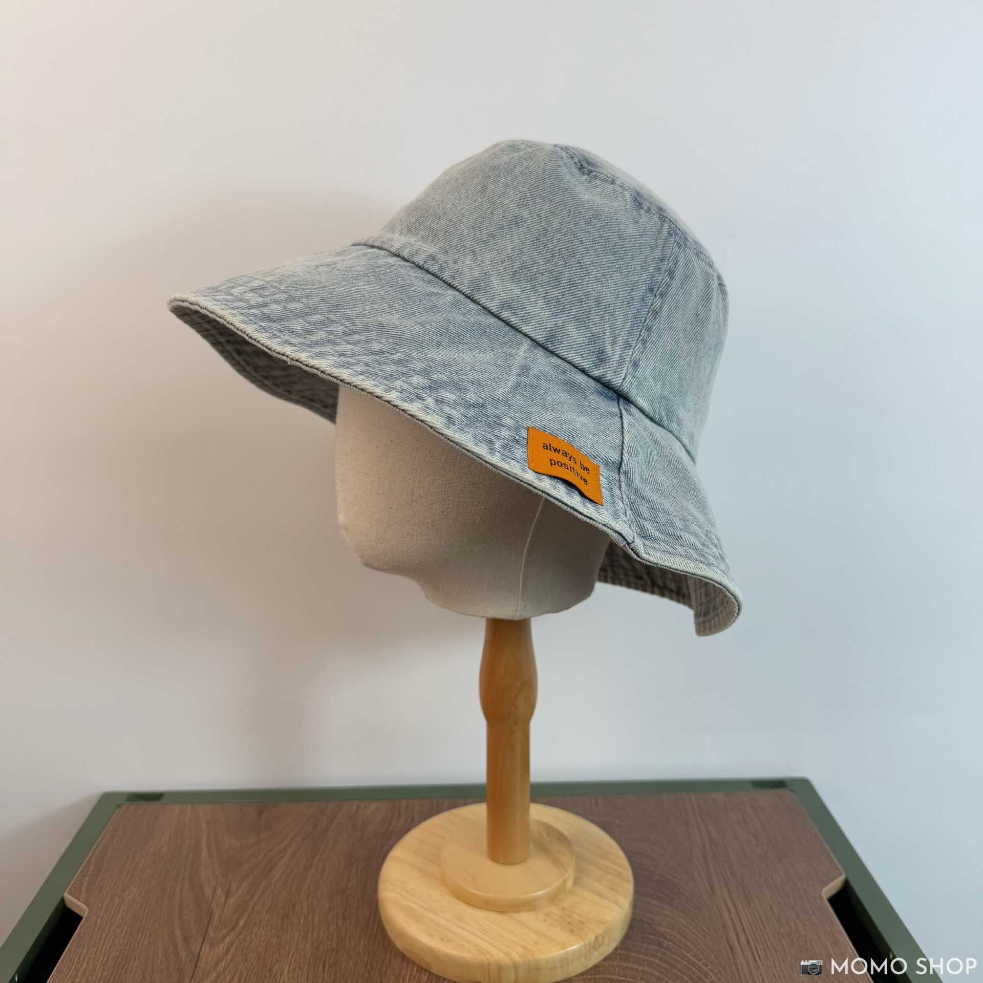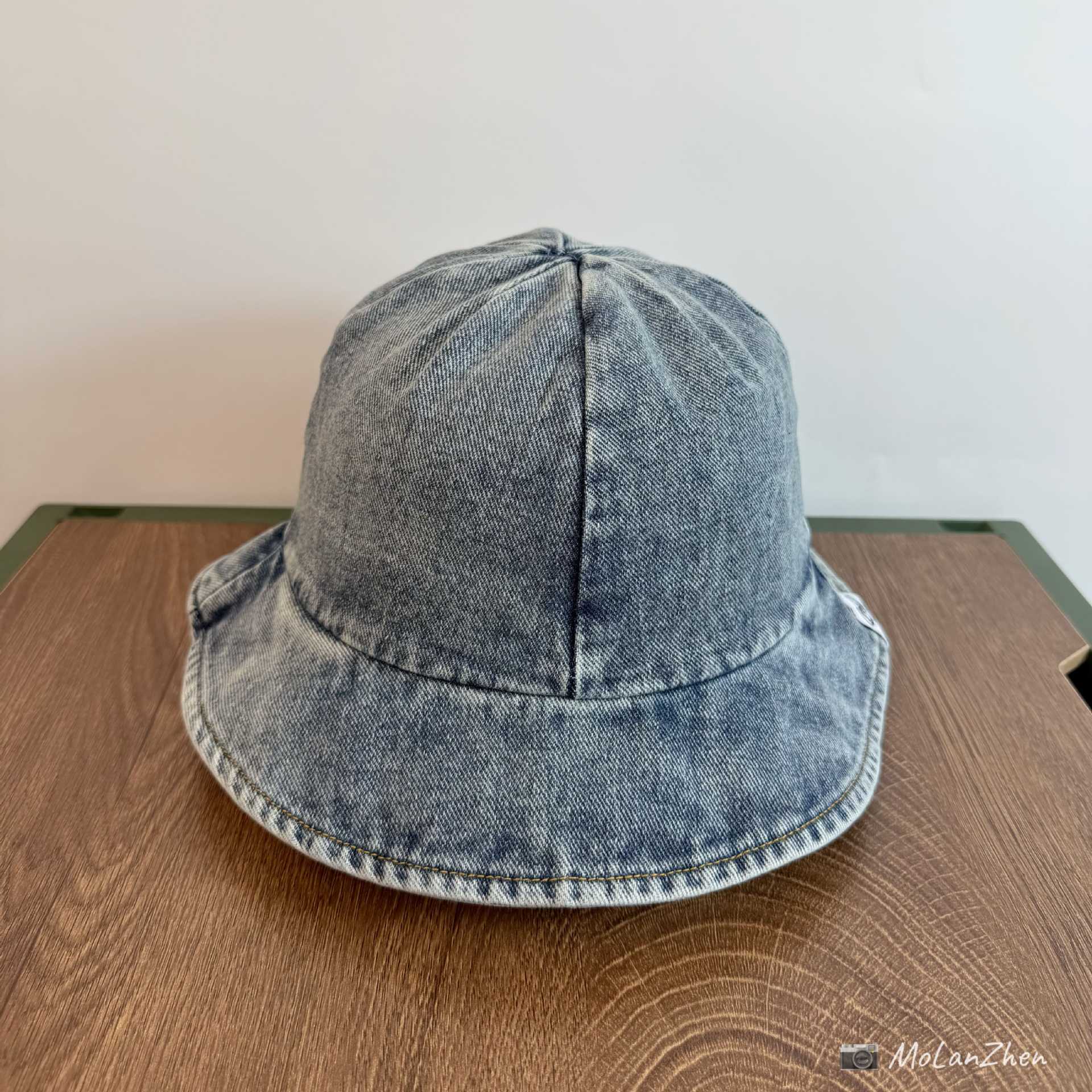 • 라이트 데님(오렌지색 천 라벨이 있는 챙이 큰 어부 모자)