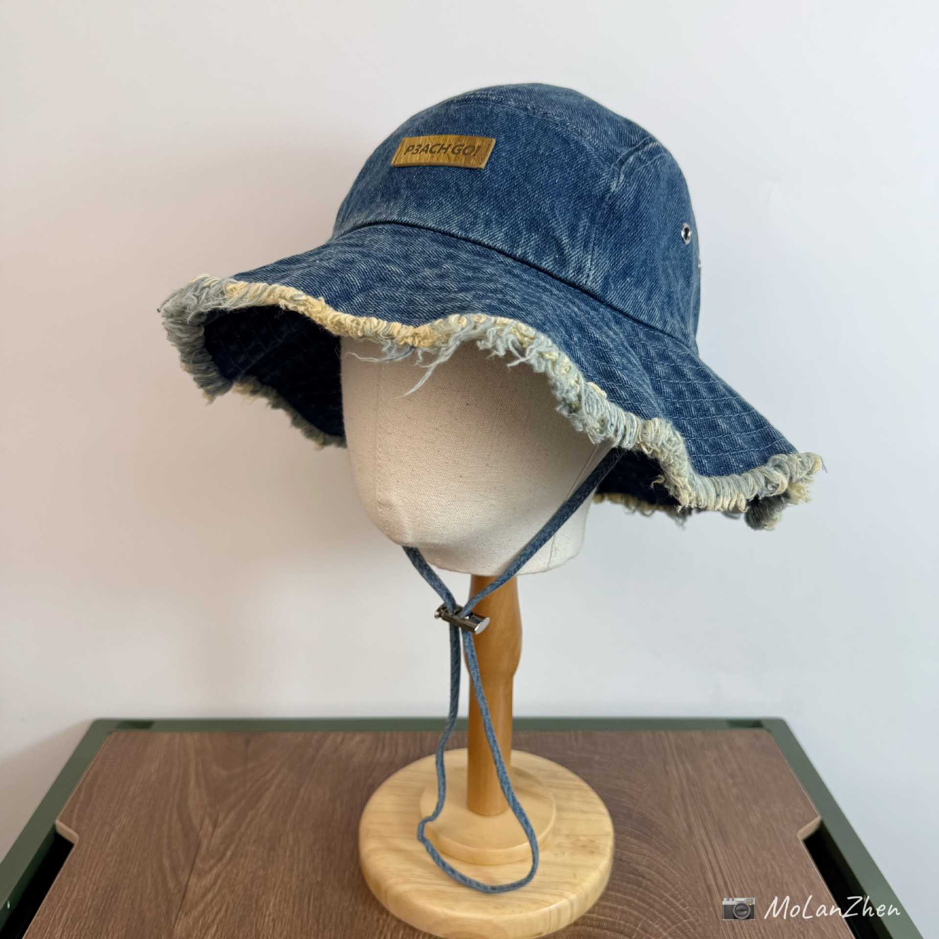 • 딥 데님(P3ACH GO!나뭇결 로고와 두 개의 거친 가장자리가 있는 어부 모자)