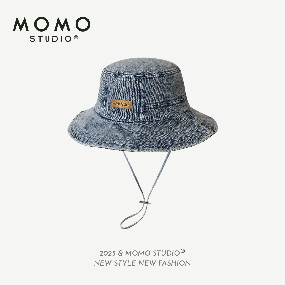 • 라이트 데님(P3ACH GO!가죽 라벨 로우 엣지 버킷햇)